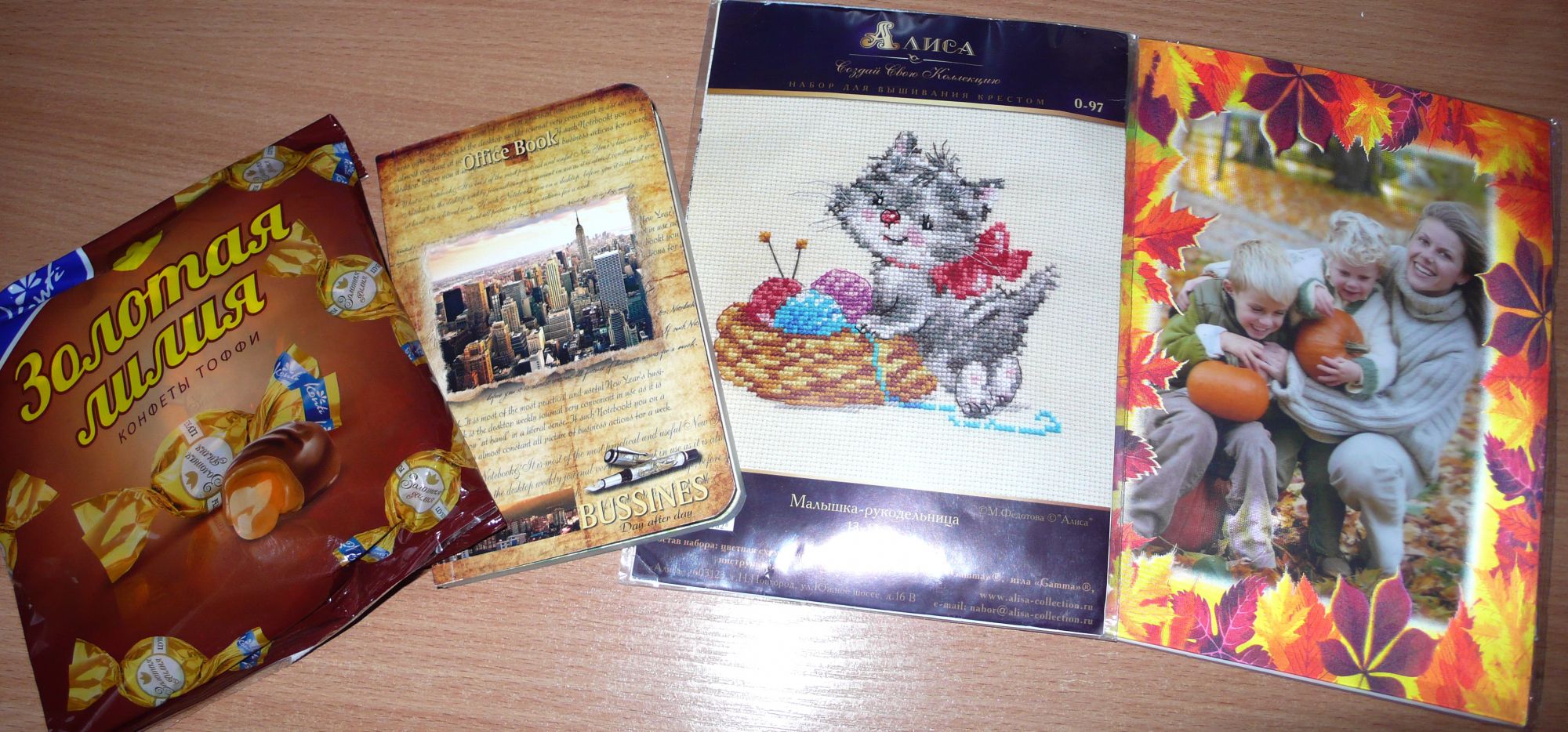 4 мая 2016 Закрома пополнились маленьким наборчиком, разыгранным в конфетке Татьяной Спасибо! За приятные подарочки и вкусные конфетки))) К сожалению, ответную конфетку выставить не смогла, т.к. тема была прикрыта, но пополнила ей сундучок сокровищ, которы уже ждет получателя на почте... Ponochka, Molly21, ЛАДОМИРА и 24 других сказали спасибо Поделиться сообщением Ссылка на сообщение