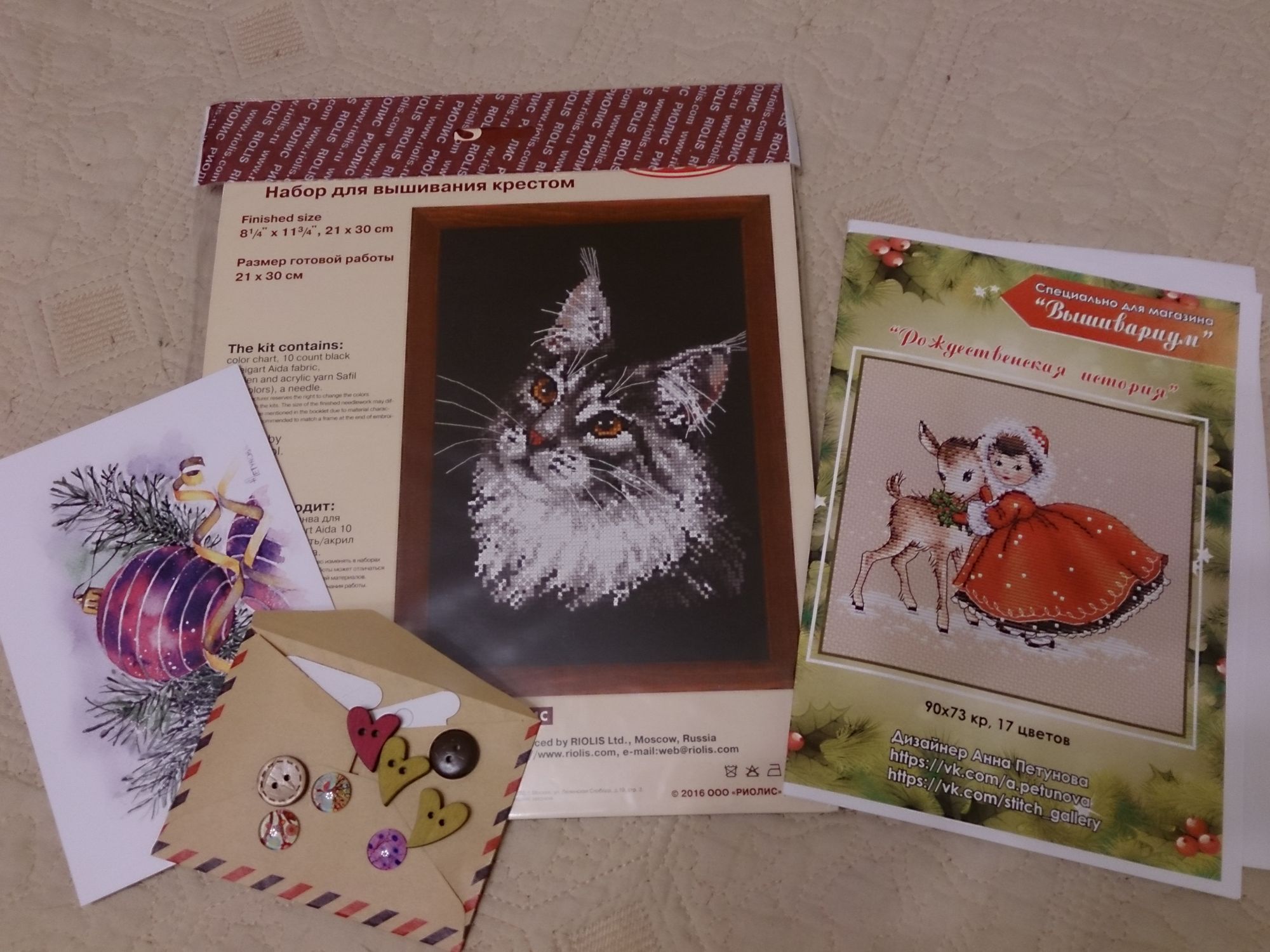 25 ноября 2016 Что-то закрутилась и забыла про подарки свои))) конечно, это не все еще) что-то лежит и ждет отправки, что-то еще едет, что-то надо забрать из пункта самовывоза, но это все оправдано тем, что у меня был день рождения, и как выяснилось, лучшие подарки - это любимые куски канвы и пучки ниток)))) это подарок от моей любимой подруги, со-игольницы, провокатора и поддерживающего меня во всем замечательного человека, Олеси (lesik). спасибо, моя дорогая!!! этот кот - довесок к подаркам от коллег по работе, они теперь не заморачиваются, лезут сюда на стич ко мне в раздел "желанные наборы" и выбирают из списка то, что могут мне подарить))) таким образом я обзавелась ведром от чудесной иглы и кучей котиков! Остальная куча котов - это мои шалости. - что-то на жанлин и дизайн Воркс потянуло в последнее время Ну и на десерт - это те самые, которых Галя чуть второй раз не купила))) Пара к ним тоже будет, но позже VitaVivien, ЛАДОМИРА, белая-мягкая-пушистая и 53 других сказали спасибо Поделиться сообщением Ссылка на сообщение