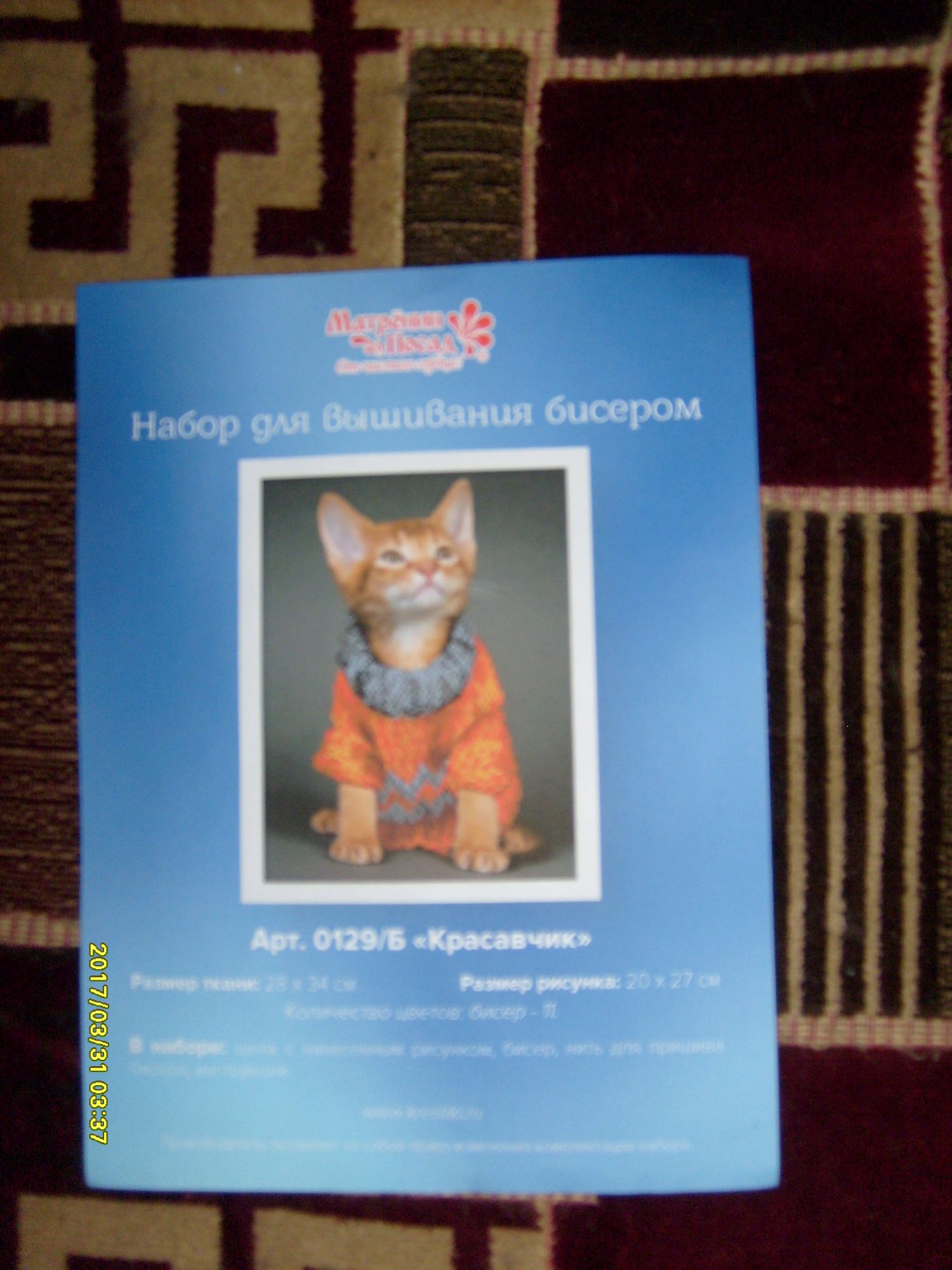 18 апреля 2017 12 часа назад, Moshika сказал: Красавчик давно в моем сердце! Чудесный! Красавчик то он, конечно, красавчик, но вот и фирма то Матренин посад. Перед ее схемой блекнет все, и глянцевая схема ЧМ, и цветная Овна, и огромная простынка от Лукаса, в общем все. Бисер красивый: и матовый, и прозрачный, и сверху прозрачный, а внутри окрашенный. Бумажной схемы нет. А саму тряпочку я не поленилась сфотографировала и показываю. Вот. Ну да ничего шить буду творчески, на стенку рядом с картиной я все равно картинку от набора не вешаю. А так хорош! sunny981, eutamias, apanjul и 12 других сказали спасибо Поделиться сообщением Ссылка на сообщение