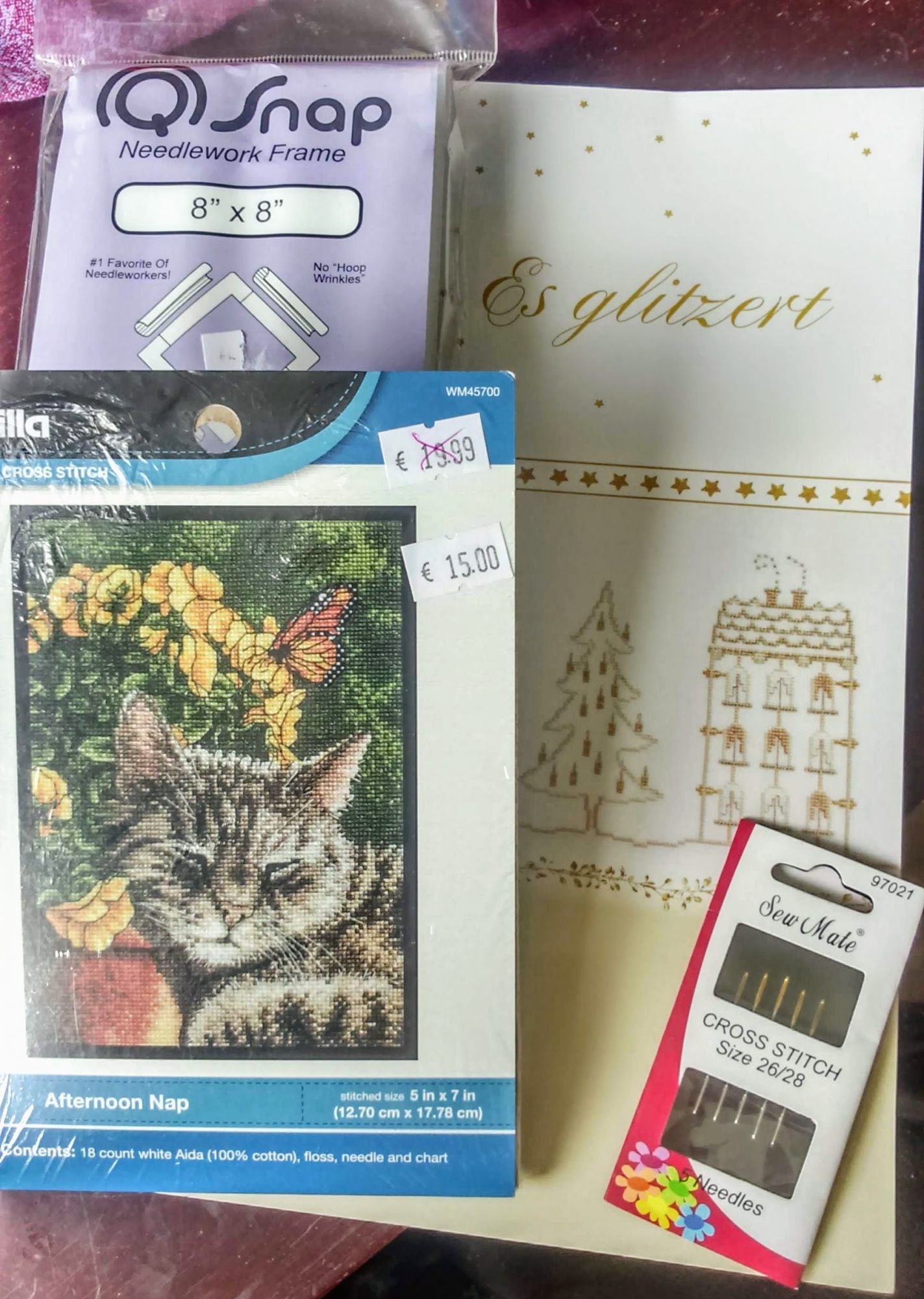 3 октября 2019 Сегодня мы всей семьёй были на ярмарке, посвящённой разным видам хобби, там и рукоделие, и моделирование, и настольные игры. Вышивальный стенд был всего один, но мне и этого хватило, потому что в городе хороших магазинов с вышивкой нет, я всё заказываю онлайн. Муж посмотрел на размеры стенда, посмотрел на меня, взял коляску и со словами "вон там Лего последние модели, я пойду посмотрю" исчез минут так на сорок В итоге я купила по хорошим ценам ткани фирмы Пермин: , купила снапы, журнал с рождественскими дизайнами и выцепила из горы уценённых наборов замечательного котика: Его в планах не было и в бюджет не входил, но он мне показался так похож на нашего кота Фипса, что рука не поднялась (а точнее не опустилась) положить его обратно. Кот Фипс со своим братом Юриком: С журналом вышла небольшая закавыка. Все дизайны в нём выполнены в бело-золотой гамме, я покупала специально, чтобы шить одну конкретную работу, и рассчитывала обойтись джентельменским набором вышивальщицы в виде дмс и крейника. Но не тут-то было: оказалось, что все эти дизайны вышиваются шёлком и кучей других специальных нитей. Так что наверное он пока полежит до следующего Рождества, а в это я вышью что-нибудь попроще и менее затратное Ветер, Egelia, almmatea и 57 других сказали спасибо Поделиться сообщением Ссылка на сообщение