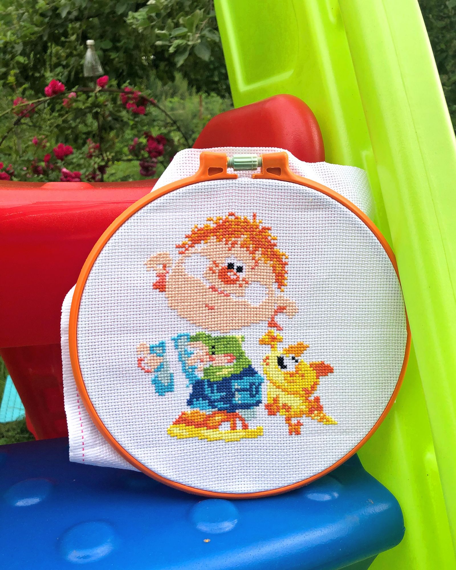 8 августа 2020 07.08.2020 в 15:27, letka сказал(а): Зимний пейзаж проглядывается! Не совсем так))) пейзаж да, но не зимний. Новый значок 3 дня вышивала в обед, но производительность низкая что-то , крестиков 200-300 только. А там так много этого чёрного цвета!!! Ох, наверное надо будет следом, какие-нибудь яркие цвета взять в вышивку. Ещё дело в раме, пока достану, пока настроюсь и пристроюсь, да ещё в это время учимся читать со старшей дочкой, и когда маленькие пяльцы в руках - это намного удобнее. Зато на улице , наконец нашлось время для вышивки. И я продвинула свою дорожно- огородную вышивку. А то уже месяц её не брала в руки, даже соскучилась. Ещё 3 цвета готово, осталось ещё 3 и бэк. Ivi, Гало4ка, Marusya1978 и 3 других сказали спасибо Поделиться сообщением Ссылка на сообщение
