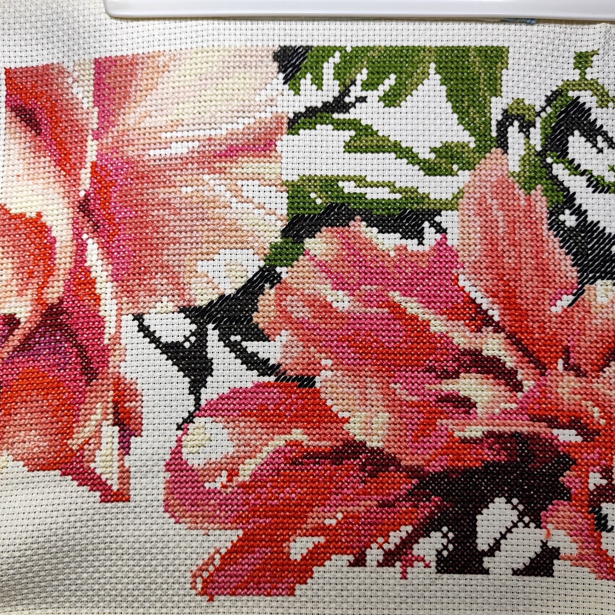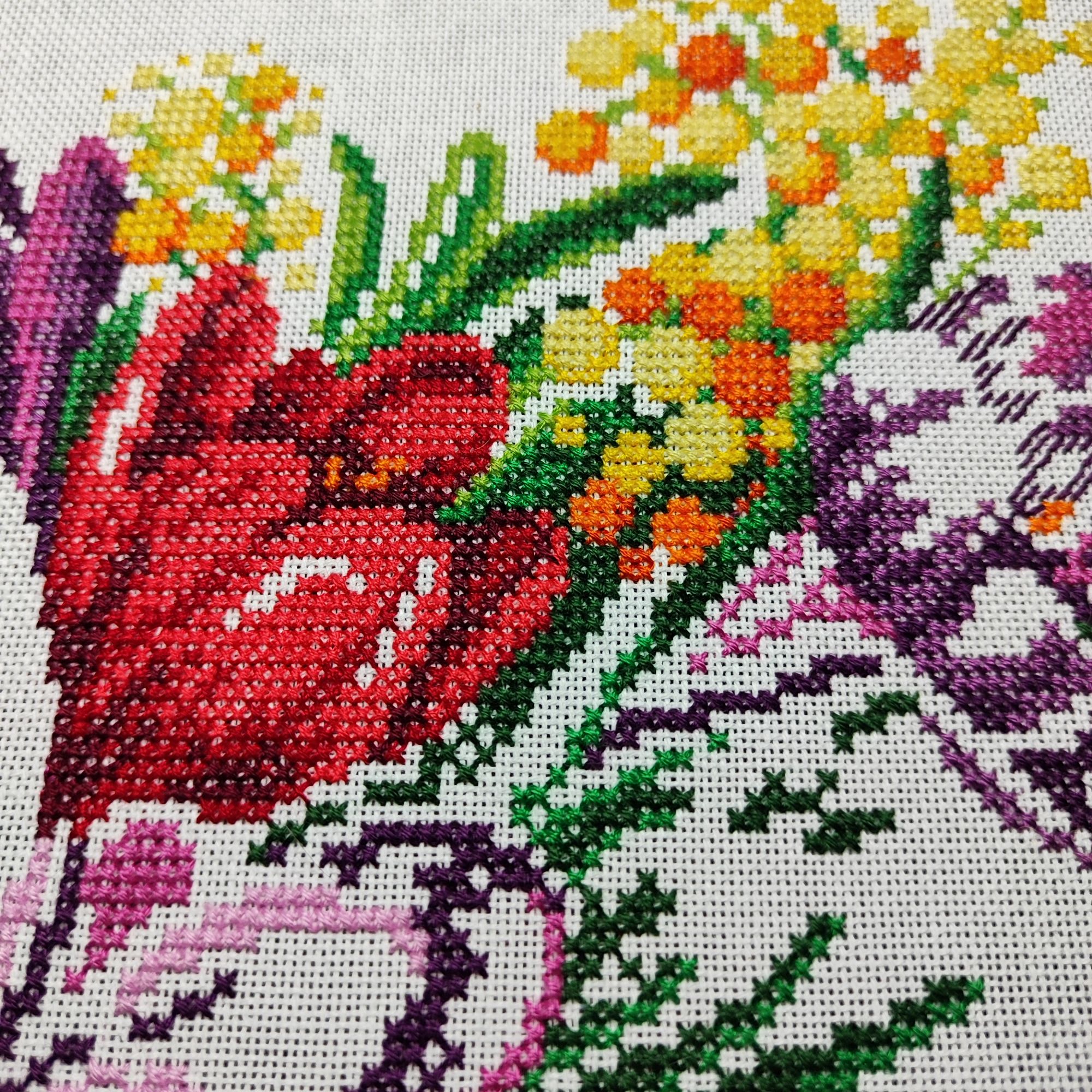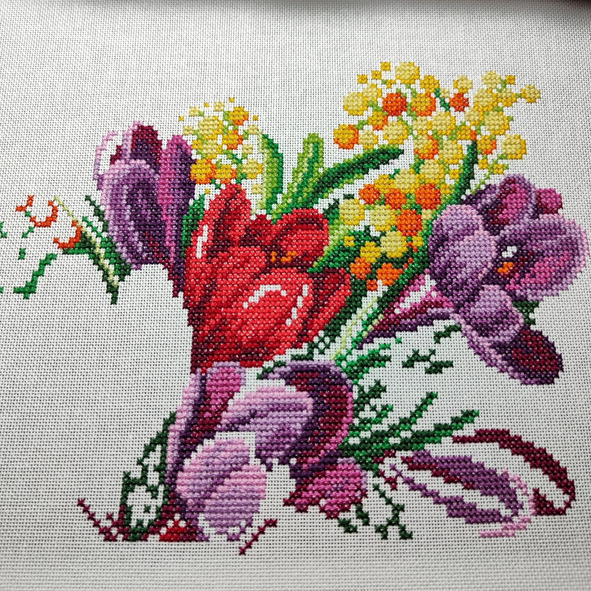 27 марта 2023 Немного цветочного процесса от Сделано с любовью. Это не первый набор от этой фирмы , уже вышивала нарциссы и в полном восторге. Видела яркие, сочные отшивы на формулах, привлекают внимание. Очень много работ вышиваются на равномерке или льне (в родных наборах канва, но на формулу привозят работы, вышитые на тканях,что гораздо элегантнее смотрится). В своих нарциссах я тоже поменяла канаву на Линду, в этом букетике тоже Линда. Хорошая схема, очень ярки нитки, причем нитки тоже весьма неплохие, хотя на мой взгляд,тонковаты. Но они наощупь гладенькие, хорошо ложатся, практически не путаются (иногда, бывает, завязываются в узелок, не без этого,но некритично совсем). Удобная нарезка. Схема цветная полуглянцевая, я такие не люблю, поэтому нашла схему в Саге и шью по ней. Бэка нет совсем, но все получается довольно реалистично. Возможно, кому-то букет покажется чересчур ярким и кислотным,но мне очень нравится, вот то, что нужно сейчас, когда не хватает ярких красок и солнышка))) Если хочется какого-то позитива, цвета, простой схемы, я очень рекомендую наборы этого производителя! Аленка-2, Bogdan, 19199707770 и 11 других сказали спасибо Поделиться сообщением Ссылка на сообщение