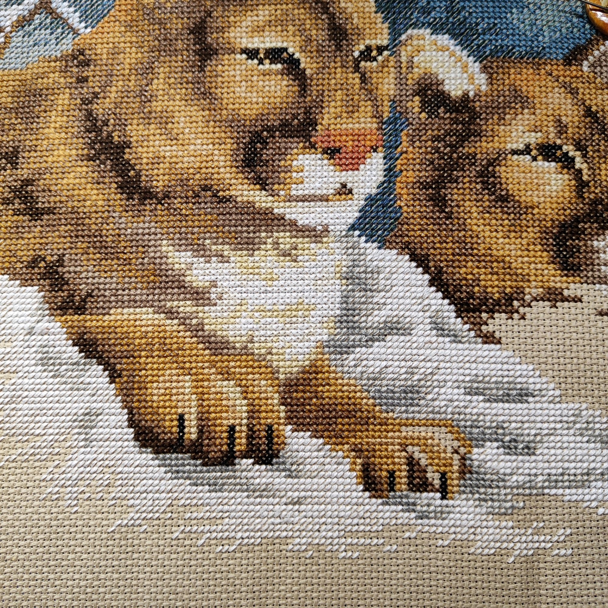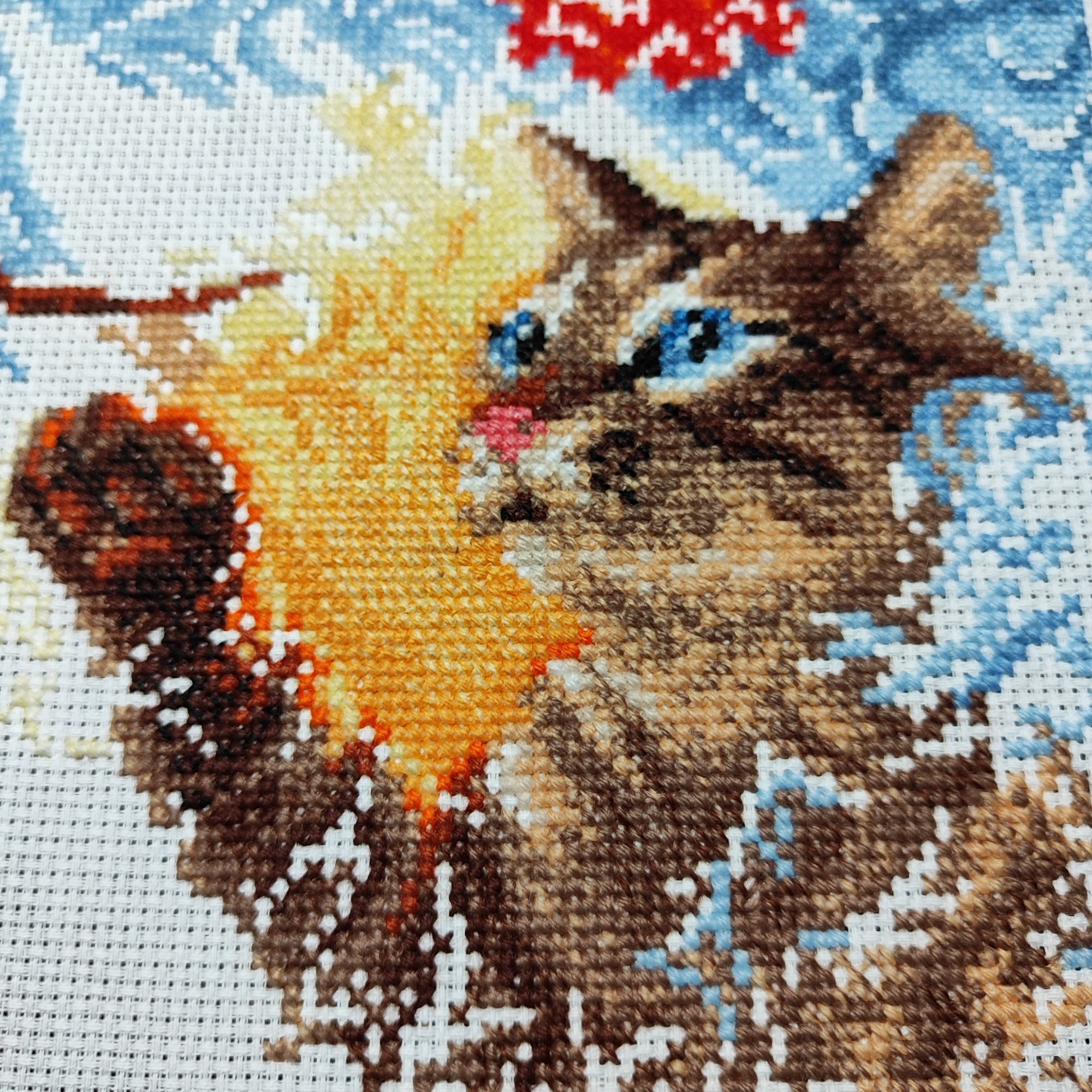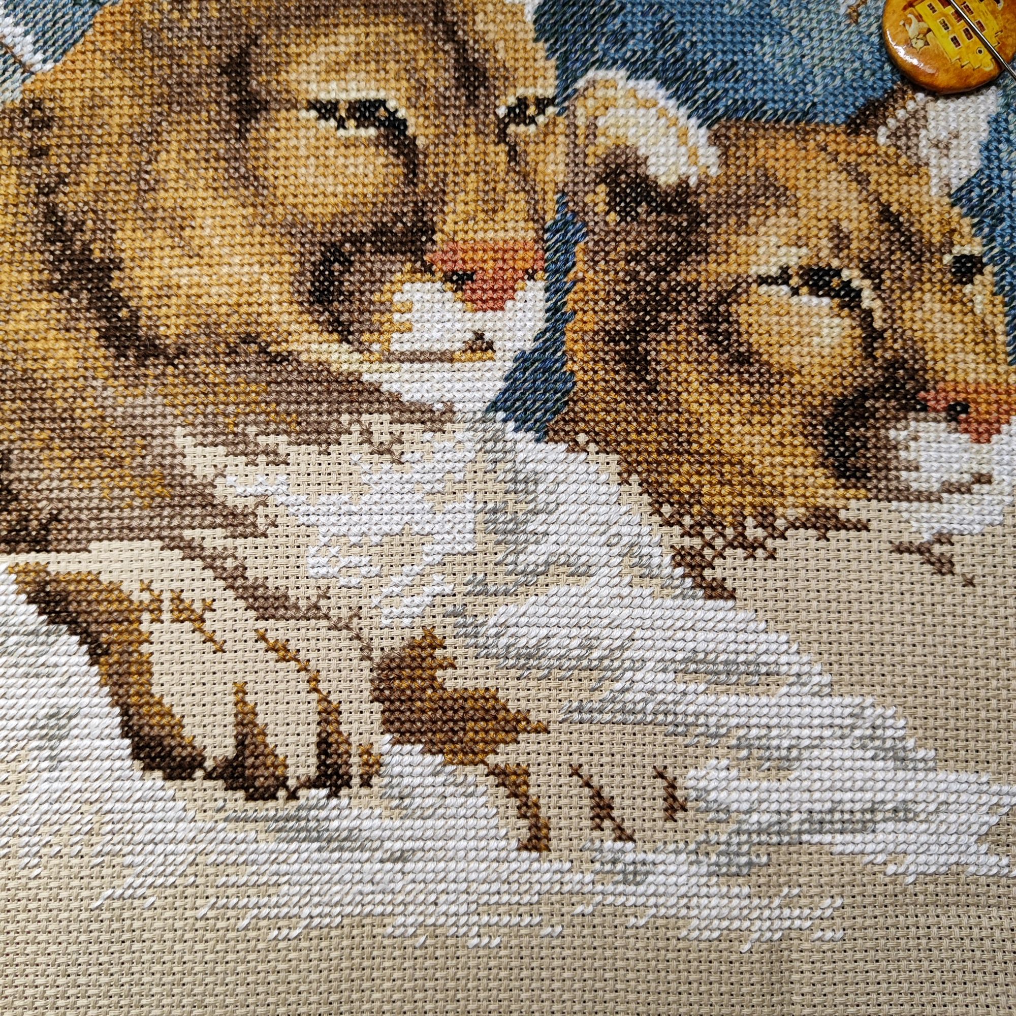 24 марта 2023 Внезапно новый процесс. Я давно хотела начать кота или кошку, оба звёздные) но что-то не доходили руки. А тут прям захотелось, тем более что тут бисер (наверное, надо очередную девчонку от Лавендер начинать, судя по всему))). В наборе нитки гамма в мотках, катушка хлопчатобумажных ниток для пришивания бисера, канва (хреновая, мягкая и друшлагоподобная)) и две иголки - для ниток и бисера и обе мне не понравились, для бисера чересчур хлипкая, а для ниток (учитывая, что крестики тут кое-какие вышивать надо в 3 и 4 нитки) почему-то с маленьким ушком. Короче, не нравится. Канву, естественно, поменяла на Лугану (размер вышивки 22х15,поэтому моего отреза хватит как раз на кота и кошку). Цвет как в Диме))) что-то такое грязно -голубое. Гало4ка, Tanelia, Lysinda и 12 других сказали спасибо Поделиться сообщением Ссылка на сообщение