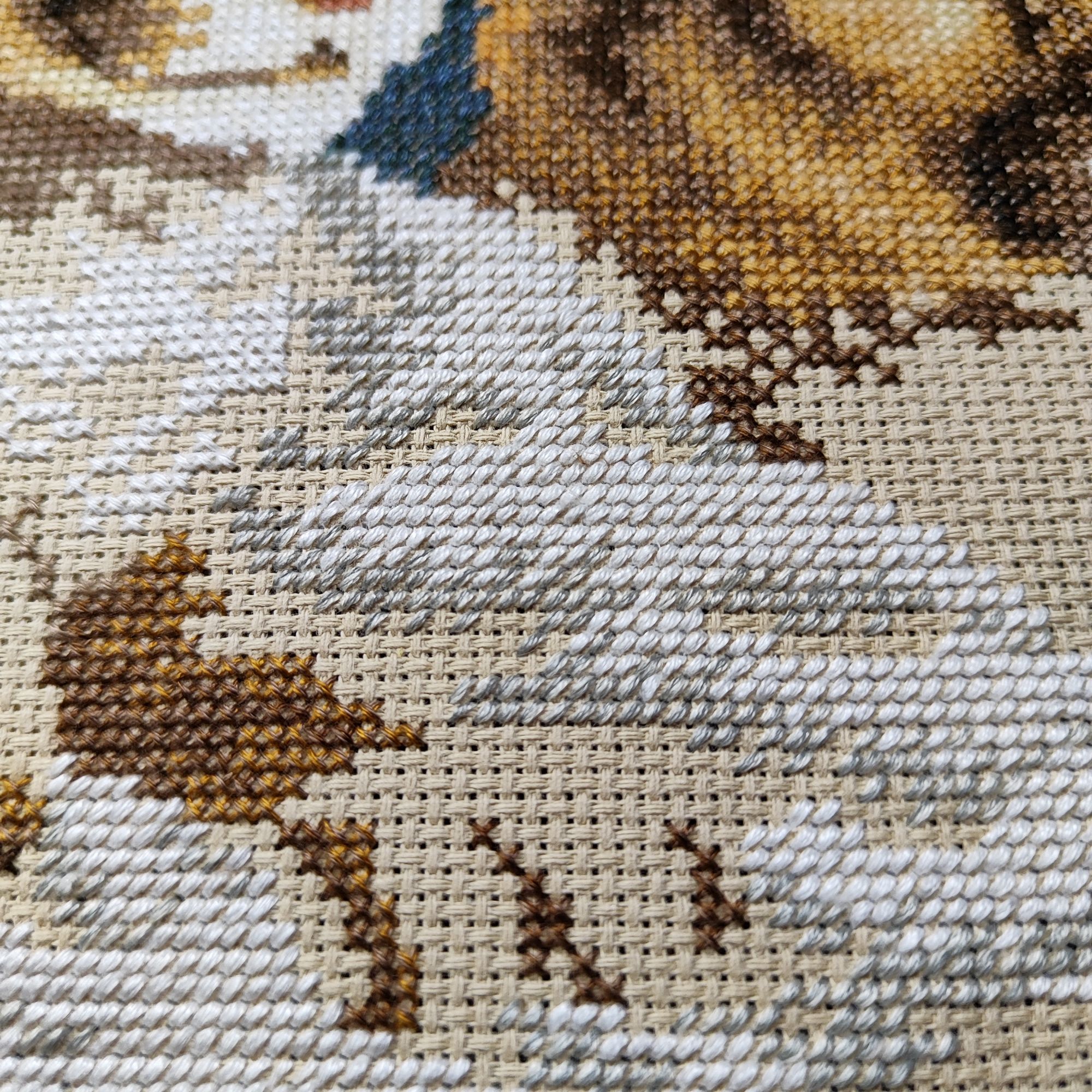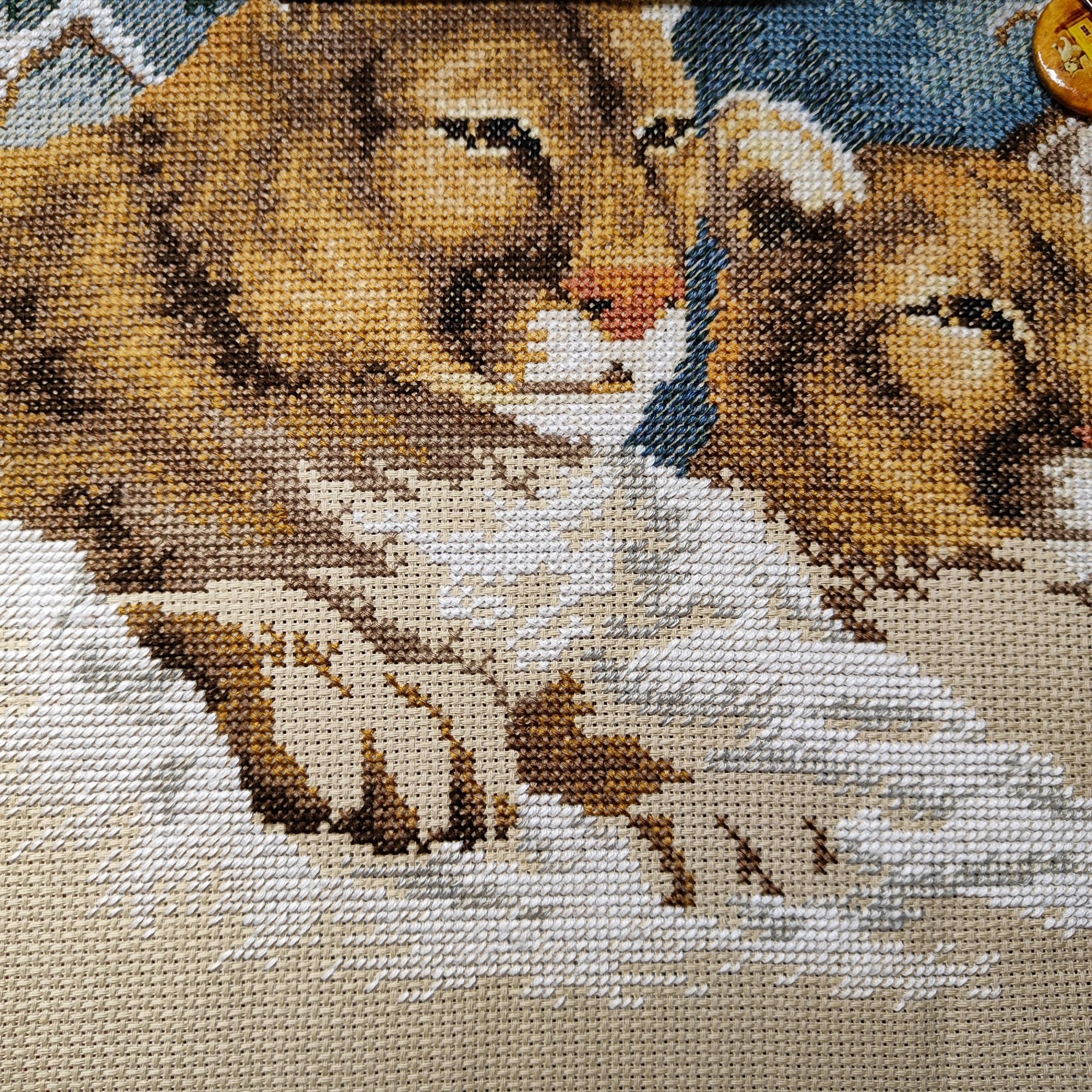 23 марта 2023 Продолжаю своих кугуаров-пум и сегодня обнаружился неприятный сюрприз,причем с таким я столкнулась впервые) набор у меня был закрыт, внутри два листа схемы, но схема бэка отсутствует! Я эти листы разве что не обнюхала, подумала, может, америкосы внезапно напечатали именно эту часть ключа где-то на обороте, но нет. Прикиньте, как весело! И бумажек никаких не было в наборе. В общем, хорошо, что вышиваю я по Саге, там этот бэк есть, но весь в одну нить, а на обложке у пум очень выразительные глаза, поэтому логично,что глаза надо обводить толще. Отсутствует в Саге ещё и небольшие стежочки бэка в глазах. В общем, пришлось таращиться в обложку. Ещё и фрузеоки непонятно, во сколько ниток делать. Короче, Дим меня просто нокаутировал, а я когда нитки разбирала и в ключе номера им ставила, даже внимания не обратила на то, что бэка с фрузелками нет Путешественница, Marusya1978, vikkovesh и 13 других сказали спасибо Поделиться сообщением Ссылка на сообщение