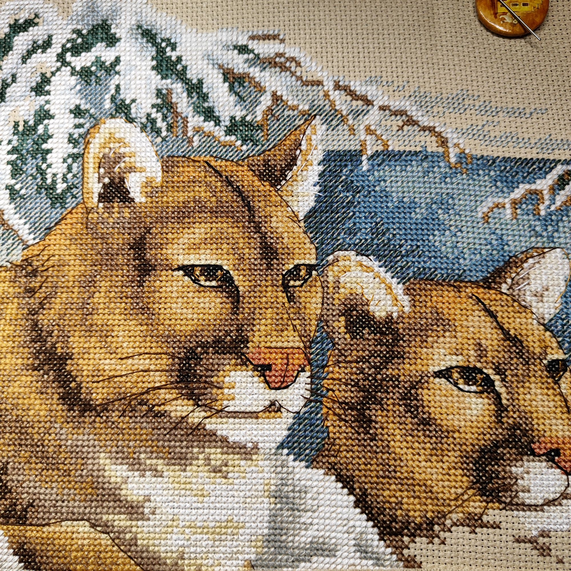 28 февраля 2023 Продолжаю вышивать пум и подарочный Риолис). Пумы, тьфу-тьфу, хорошо идут, там микс из крестиков и полукреста в разное сложение нитей, бленды,и цвета весёленькие. Бэк сделаю потом, наверное, его тут вроде не очень много Риолис хорош, немного нудноват зелёный фон полукрестом в 1-2-3 нитки, но за счёт огромного количества полукреста работа движется довольно шустро. Забава_, Tanelia, Shoryok и 16 других сказали спасибо Поделиться сообщением Ссылка на сообщение