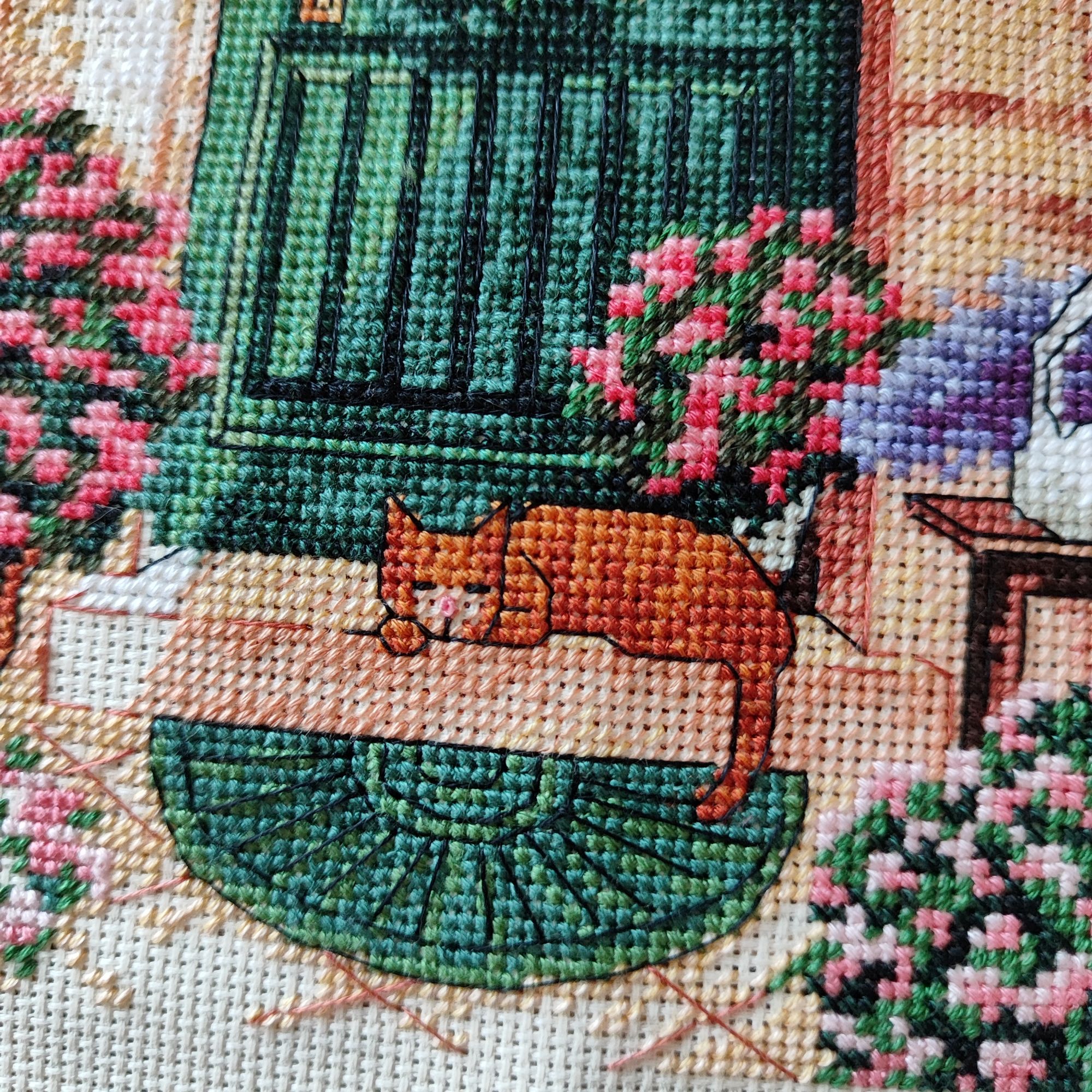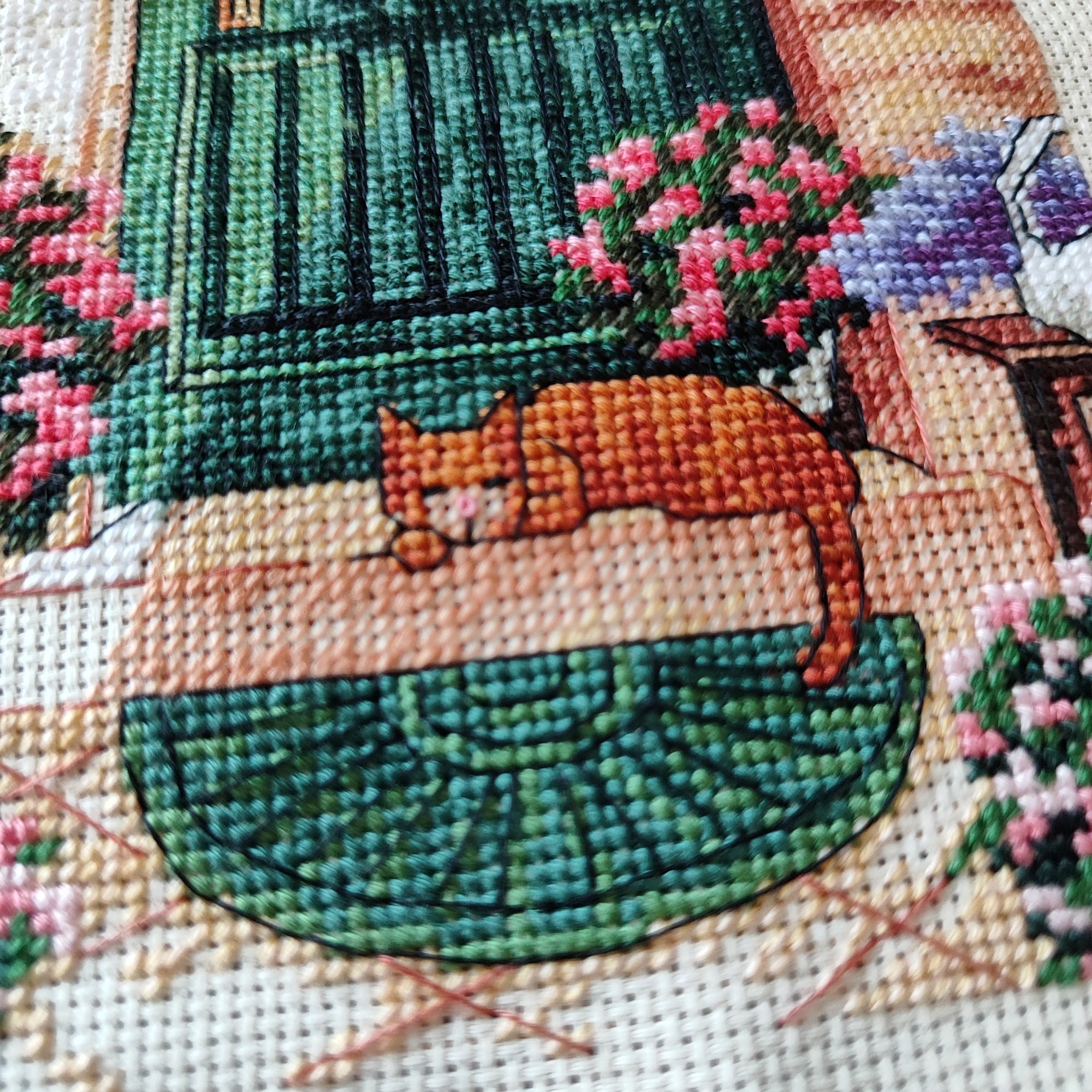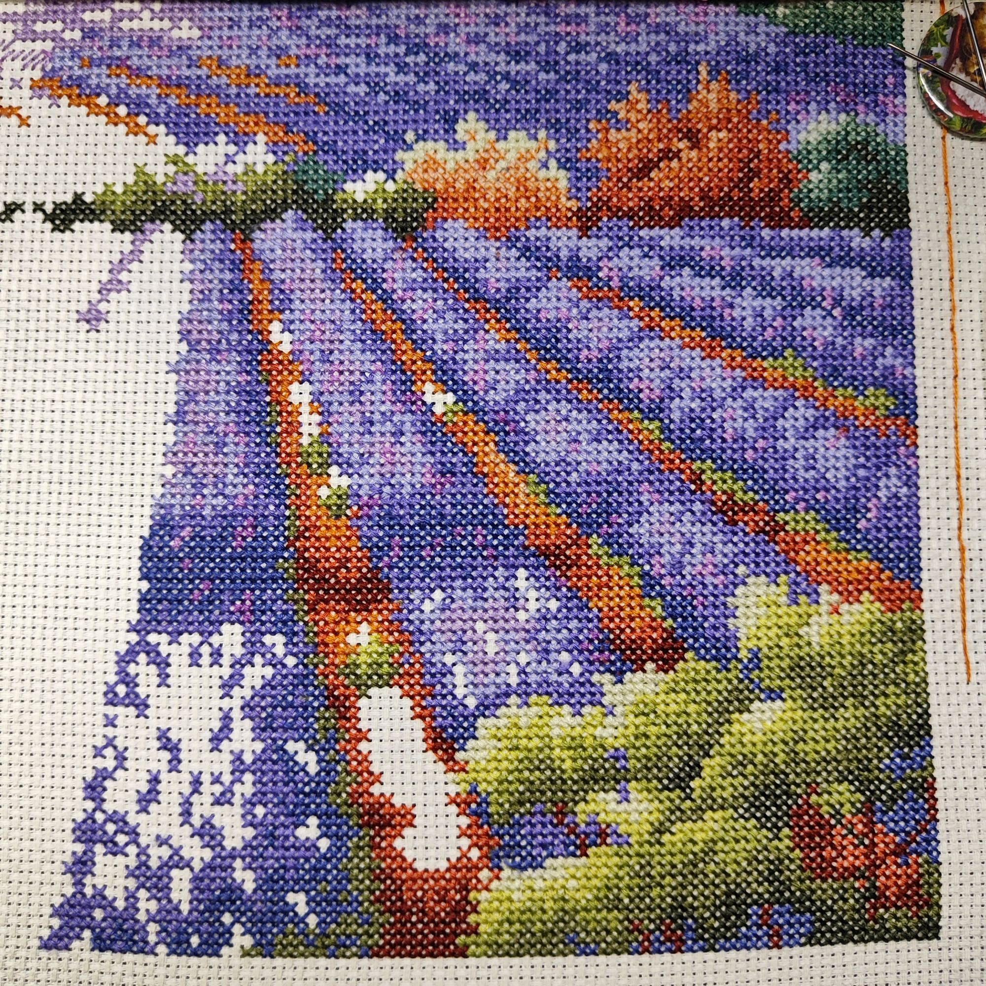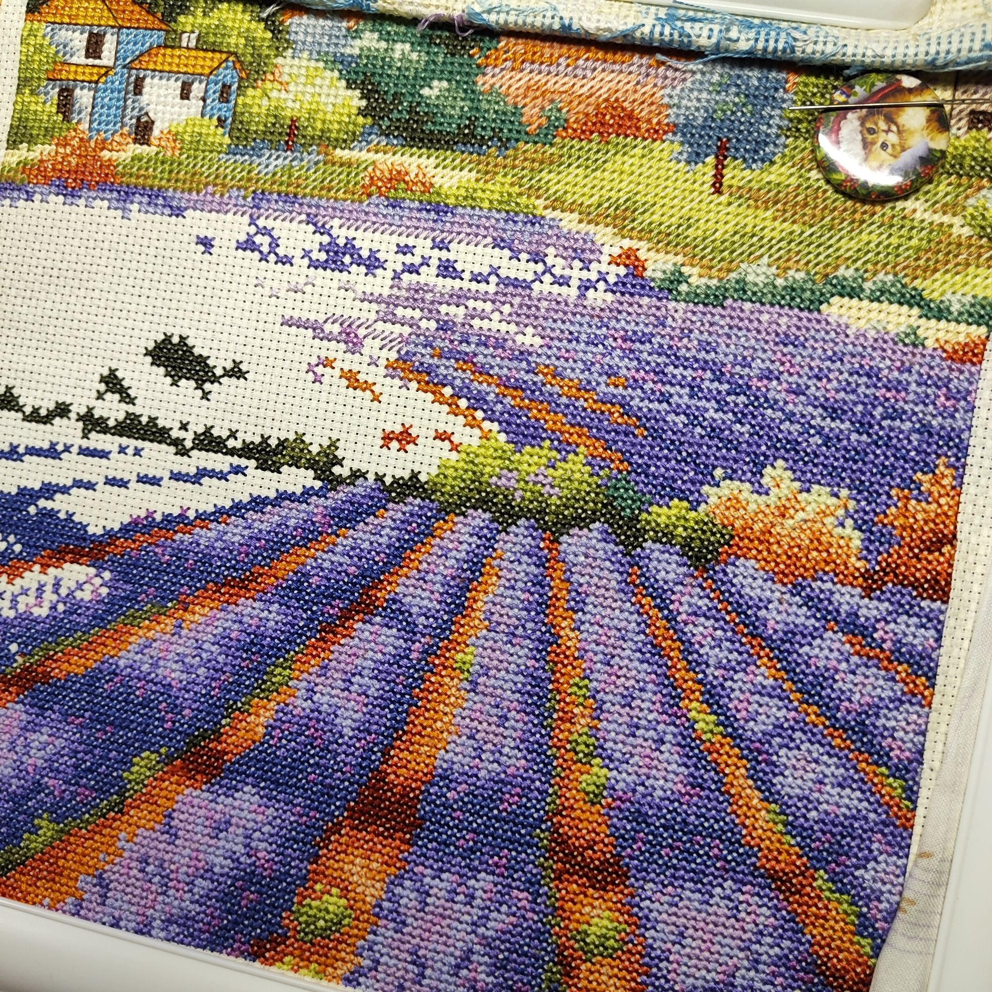 27 июля 2023 Очень обленилась) даже лениво очередной процесс выбирать. Для начала хочется всё-таки закончить котовий долгоиграющий процесс от КК и лавандовое поле от Дим, поэтому продолжаю пока эти два процесса. Вроде и хочется что-то ещё взять, и вроде лень) лето, нужно гулять по мере возможности, буду скользкой зимой торчать за вышивкой. В Кастом преодолела больше половины работы, причем самой прогонистый, осталась нижняя часть с более-менее большими цветовыми кусками,плюс там буду вышивать одеяло,а в нем яркие цвета, бордо, например. Очень доканывают цветочки, в которых 100500 оттенков серого и левый котан, который испытывает мое терпение россыпью одиночек. Но пока неделю я от них отдыхаю, ковыряя лаванду. А лавандовое поле вышивать интересно и быстро, очень приятная цветовая гамма и минимальное количество бэка, который я пока даже не делала. И в этой работе осталась четвертинка всего. Sneganna, Охотница, Leutnant Ripley и 20 других сказали спасибо Поделиться сообщением Ссылка на сообщение