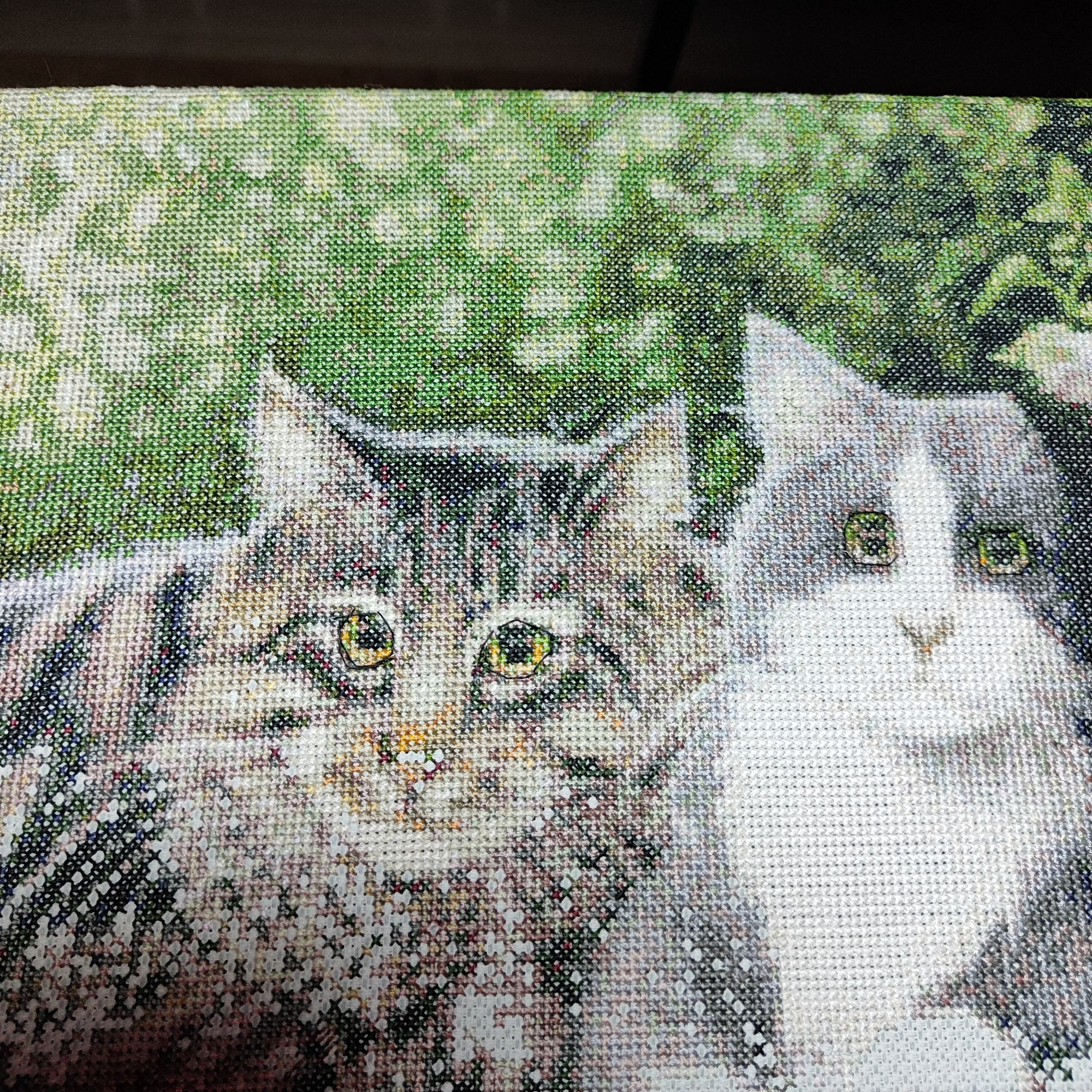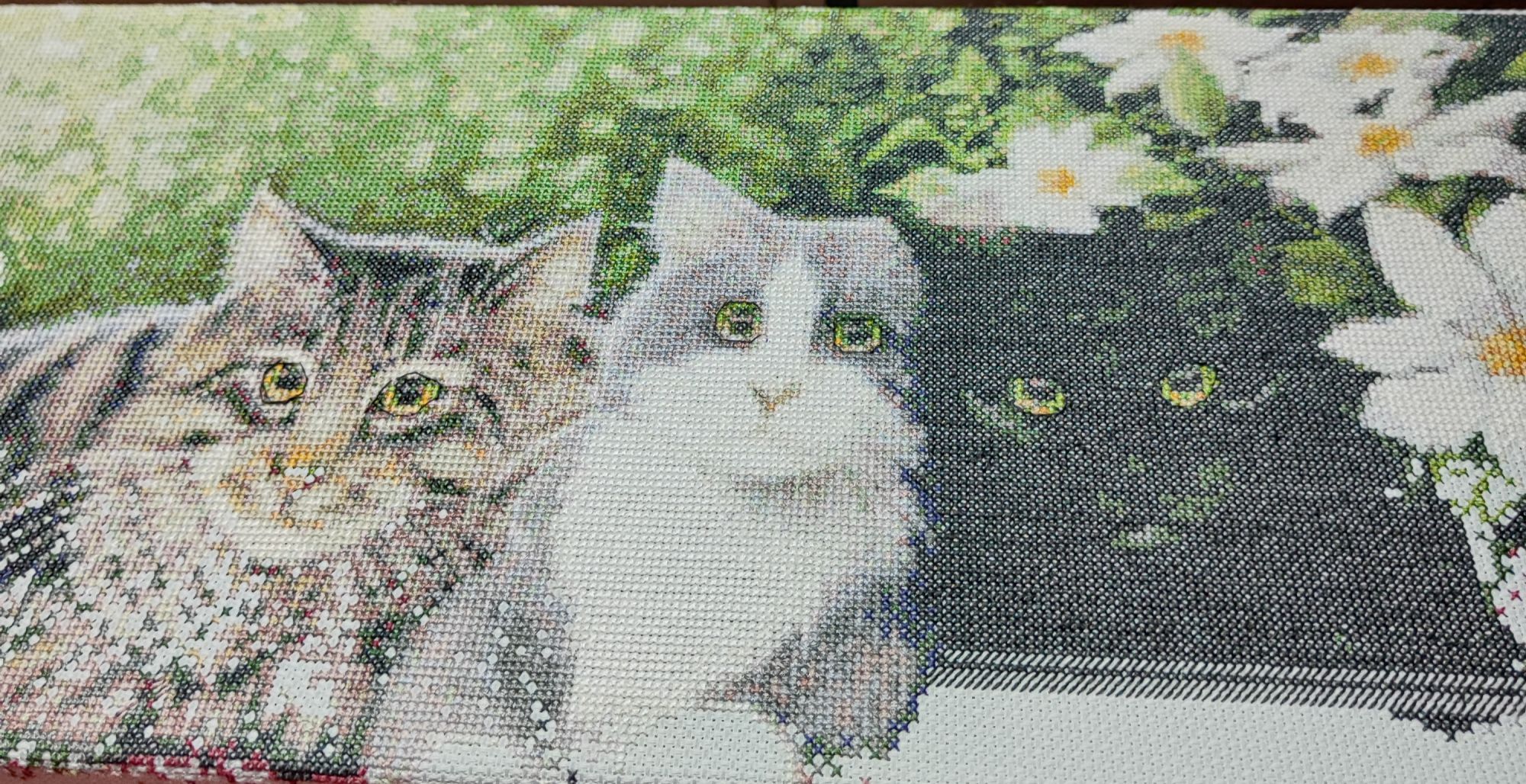 16 августа 2023 Ух ты, как надолго я пропала из своей темы! Дело в том, что третью неделю подряд работаю без перерыва, подменяю подругу, ещё жарища... В общем, вышивка летом немножко отодвинулась на второй план, хочется побольше времени проводить на улице, гулять, а к вечеру сил остаётся не на тысячу крестиков Но тем не менее, поле лавандовое уже готово, скоро покажу! Вышла на финишную прямую с котами от КК, осталось совсем немного. Они очень плохо фотографируются, почему-то всегда искажаются цвета. Постараюсь сфотографировать финишную прямую, только мне кажется, что это будет нескоро, потому что внизу картины снова "веселые" цветочки,в которых 100500 крестиков разного оттенка. Ну а пока у меня новый процесс, давно хотела его начать))) Фро-J, вишенка аллая, Leutnant Ripley и 19 других сказали спасибо Поделиться сообщением Ссылка на сообщение