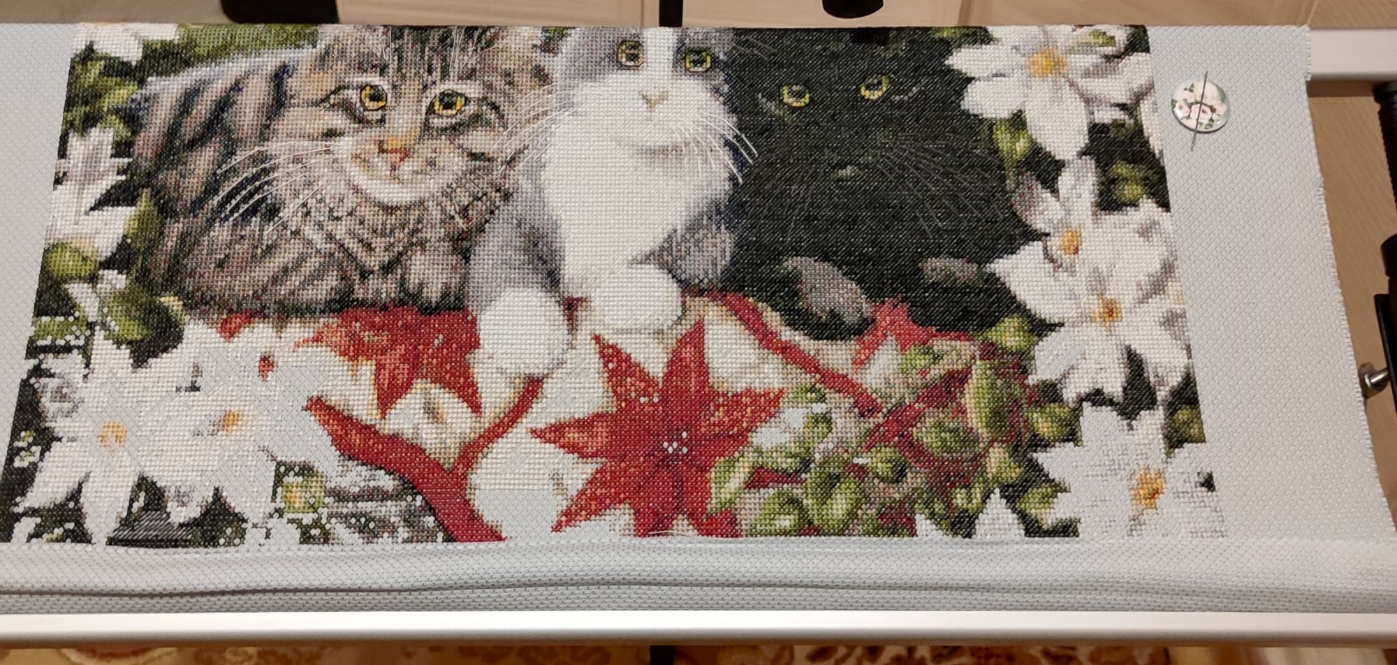 27 августа 2023 Не стала писать в тему магазинов, это был, видимо, самый последний раз, когда я связалась с Рукоделовым безобразие то ещё, я взяла даже паузу, чтобы узнать, чем дело закончится, но и мое терпение лопнуло. Повелась на очень хорошие цены на те наборы, которые хотела купить, к тому же все они были в наличии на сайте. Ну, типа в наличии... Оформила заказ 28 июля (!). Позвонили через день, уже не помню и сообщили, что заказ прибудет в ПВЗ как положено, через пару-тройку дней. Ну ок. Мне не к спеху. Подошла заветная дата, а воз и ныне там. Я написала в тему Рукоделове с риторическим вопросом, где заказ. В тот же вечер позвонили и выясняется, что одного набора нет (это через неделю выяснилось) и у них предложение - либо они пока замораживают мой заказ и мы ждём этот набор, либо заказ отменяем. Ожидать нужно было тоже немного, около трёх дней, мне сказали, что ждут поставку. Ну хорошо, ждём ещё. После этого я ждала до пятницы (прошедшей только что) и сама отменила заказ. Вопрос в космос: как можно так работать? Я разочарована. Больше с ними связываться не буду, мне надоело. Пока суть да дело, очень активно продвинула котанов от Кастом,на сегодня мне нужно довышивать белым цветом цветы, и все. Финиш уже виден невооружённым глазом. Работа несложная, но нудная в плане того, что дохренища (по-другому не могу сказать) одиночек, просто мешанина,это внизу ещё терпимо в принципе. Но выглядит вся эта каша в принципе достойно, особенно если смотреть на нее издалека. Прекрасный зимний леопард, покайфовала на полукреста, который в фоне есть даже в 6 ниток))) несложно, идёт быстро достаточно, но пока не хочется брать что-то ещё, на кучку процессов почему-то сейчас нет желания. Вообще все лето в какой-то небольшой апатии прошло, есть некие проблемы со здоровьем и все внимание сейчас переключила туда. ну и котиков вам немного, особенно толстого серого гимнаста и всю компанию, которая попрошайничает на кухне. Как только я туда иду, все идут за мной и отчаянно мне мешают))) Inna_D, Забава_, Selinta и 19 других сказали спасибо Поделиться сообщением Ссылка на сообщение