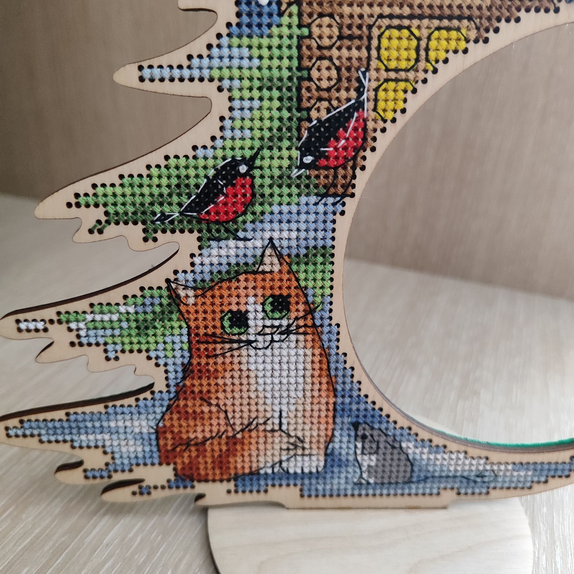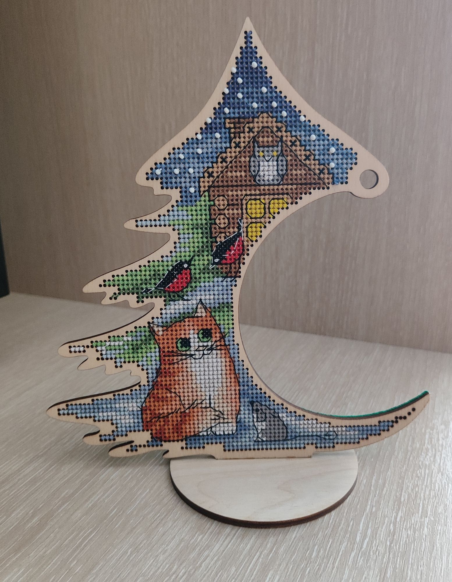 24 декабря 2023 Конец года ознаменовался поломкой организма, причем не всего сразу, а частями))) то голова, то ж...,как говорится. Началось все с того, что я внезапно перестала слышать одним ухом. Решила, что застудила ухо, занялась самолечением)) неделю ходила глухая на одно ухо, потом решилась на поход к врачу. Я из тех, кто врачей боится и идёт к ним только в том случае, когда фсе)))) ухи прополоскали и я снова слышу как Чебурашка! Буквально через несколько дней (ничего не предвещало) у мужа прихватило живот, а на следующий день уже чуть не сдохла я сама. Выяснилось, что мы оба серьезно отравились котлетами из вкус вилла! Со всеми вытекающими последствиями,не слишком приятными.... Ну и (где два раза, там и третий, видимо) напоследок я простыла)))). В общем, бОльшее время я тупо провалялась в кровати. Какое там вышивать... Потихоньку, конечно, все движется,но не так скоренько, как хотелось. Поэтому взяла вот эту ёлку,с ней прям все сложилось. С котами наряжать большую красивую ёлку это не вариант. Уже пробовала, на пару дней меня хватает, потом все разбирается и убирается. Шерстяные паразиты постоянно ее жуют, скачут возле и надо тупо сидеть рядом с ёлкой и караулить, чтобы ни с кошками, ни с елкой ничего не случилось))) Процесс фотографировать не стала, он быстрый и очень лёгкий. АлёNка, Охотница, svenlanos и 19 других сказали спасибо Поделиться сообщением Ссылка на сообщение