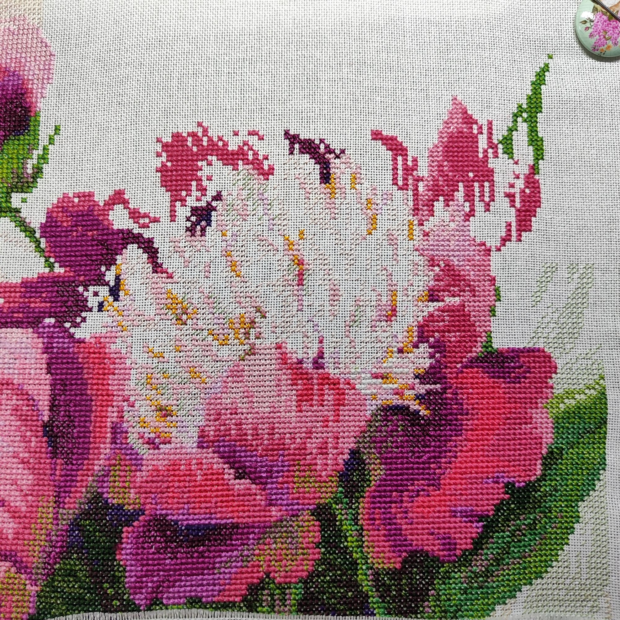 30 ноября 2023 Поблагодарю ещё раз всех за поздравления и теплые слова! Особенно про тему Закрома сама я там теперь не очень часто появляюсь, надо всё-таки вышивать то, что есть и стараться не покупать новое, но.... То один выпустит что-то новое, то другой,а мне это надо)))) потом на меня развратно влияют видео от Я вышиваю, я тут пропустила новое, теперь смотрю частями) надеюсь на свою память,что она забудет то, что внезапно понравилось хотя под эти видео очень хорошо вышивается. Итак, что мы имеем в мой ленивый вышивальный год,а конкретнее,подбираясь к концу года? Раньше, когда я вышивала одну работу и набралась сразу за несколько,у меня был "пунктик" - к концу года не оставлять по возможности незаконченную вышивку. Короче, с недавнего времени этот пунктик ушел в небытие) Пока продвинула Риолис, готова почти половина. Надоело и я взялась за грустного барса от Дим.. Посмотрим, на сколько меня хватит. бэк на пионах буду делать позже, мне кажется, что работа потом надо переставить на раму и шарашить уже по всей площади. Ну и парочка фото феи. Надоело ковырять полукрестик (я, видимо, старею и начинаю гундеть и капризничать) Дикая белочка, Selinta, Охотница и 18 других сказали спасибо Поделиться сообщением Ссылка на сообщение