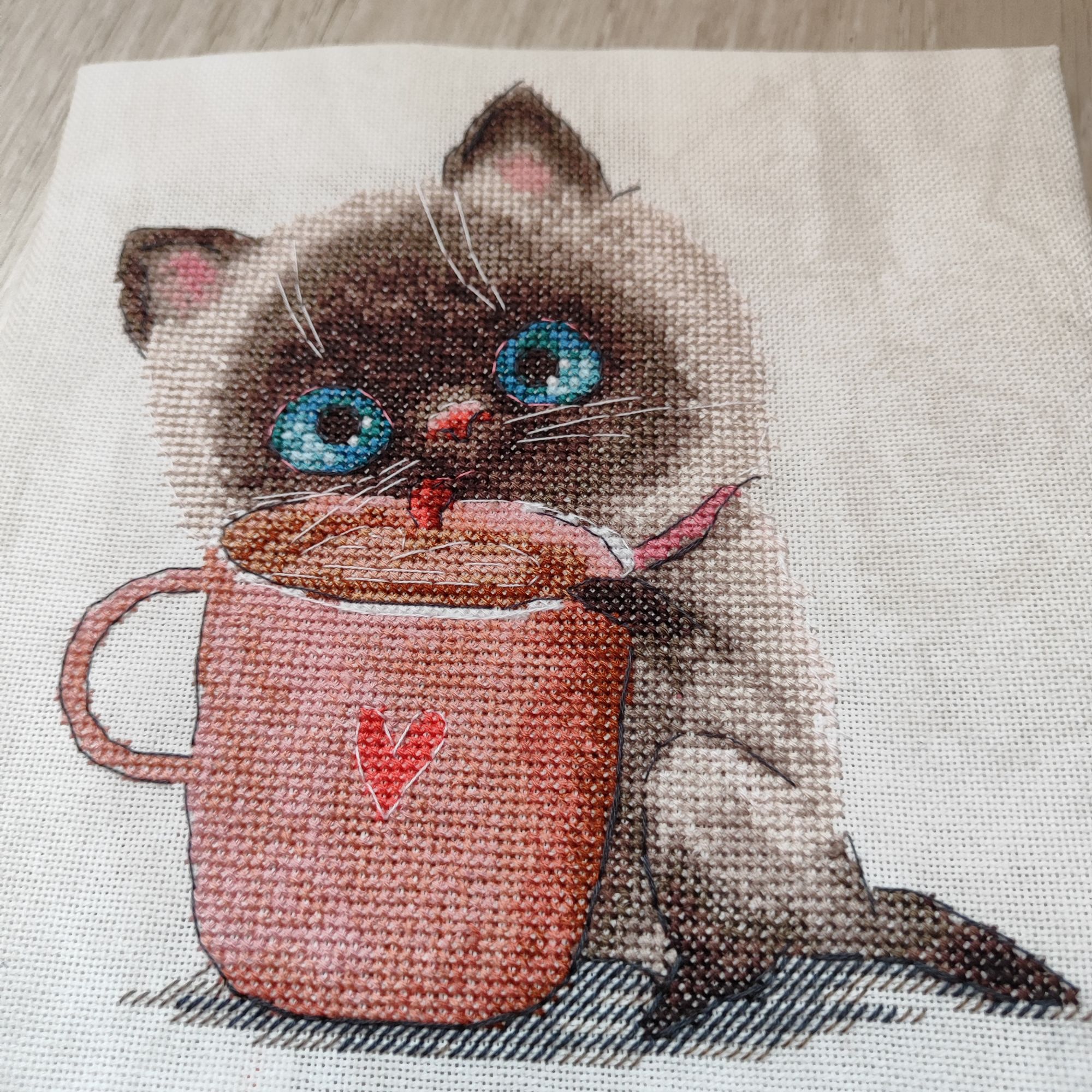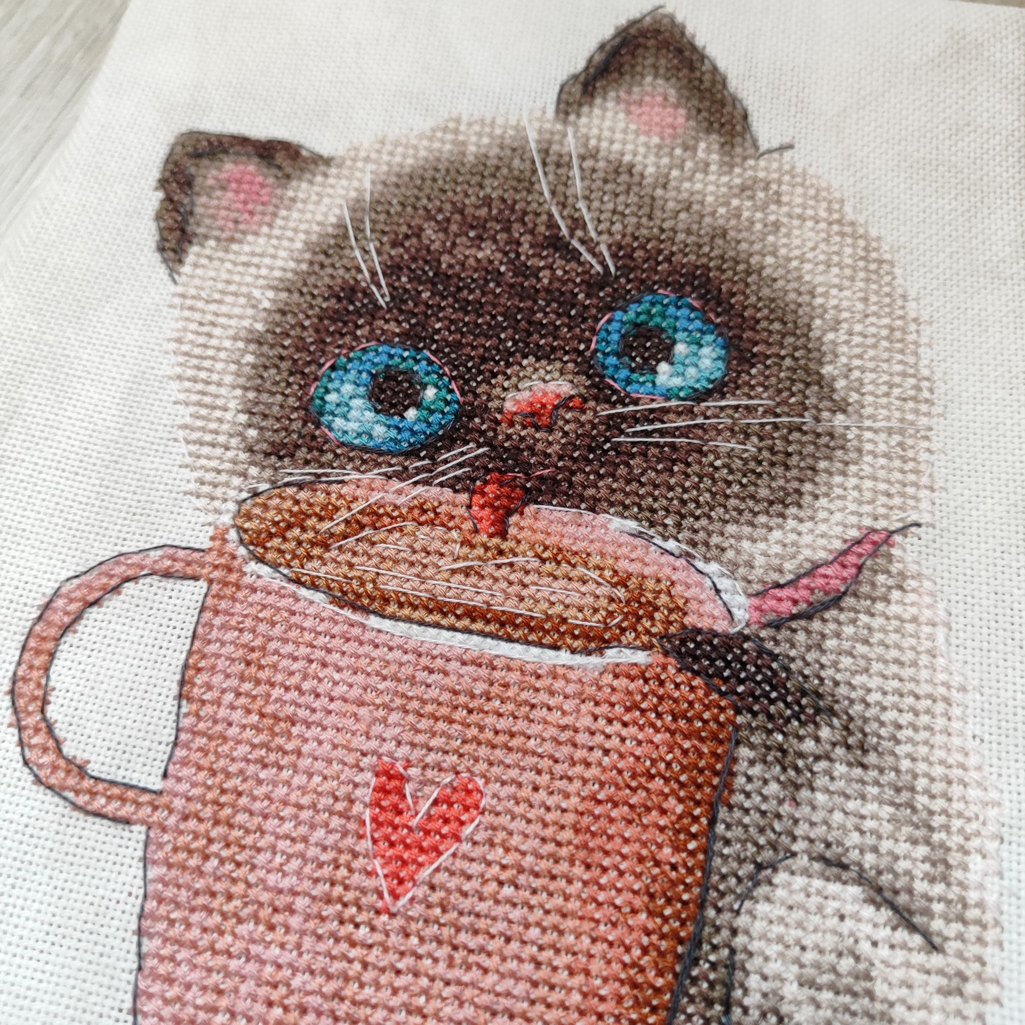 6 февраля 2024 У меня активно продвинулся барс)) далее в своей слегка унылой гамме не отпускал меня, поэтому в итоге осталось совсем немного. Но у меня внезапно подготовились два мелких процессика, один уже начала и вот пожалуйста - дратути в Котике-кофемане (разработка Насти Кравцовой) все прям легко и логично, единственное - чересчур дохрена Бэка, я вчера вышила глаза ,так там в глазах несколько стежков разного цвета. Канву из набора я сразу поменяла на Линду с разводами, потому что канва похожа на дуршлаг. Что за нитки в этих наборах, я не знал, но предполагаю,что ненавистные мне пнк. Они тонкие, неоднородные и синие, например, гладкие и ложатся хорошо, а коричневый цвет будто крученый и постоянно завязывается в бесячьи узлы. Лучше б Гамму положили,ей-богу. Схема очень крупная, все понятно, но есть файл для Саги, которым я с удовольствием и пользуюсь)) к слову, ниток положили с хорошим запасом, тут прям респект Андриане. relax_cross_stitch, Забава_, Аленка-2 и 14 других сказали спасибо Поделиться сообщением Ссылка на сообщение