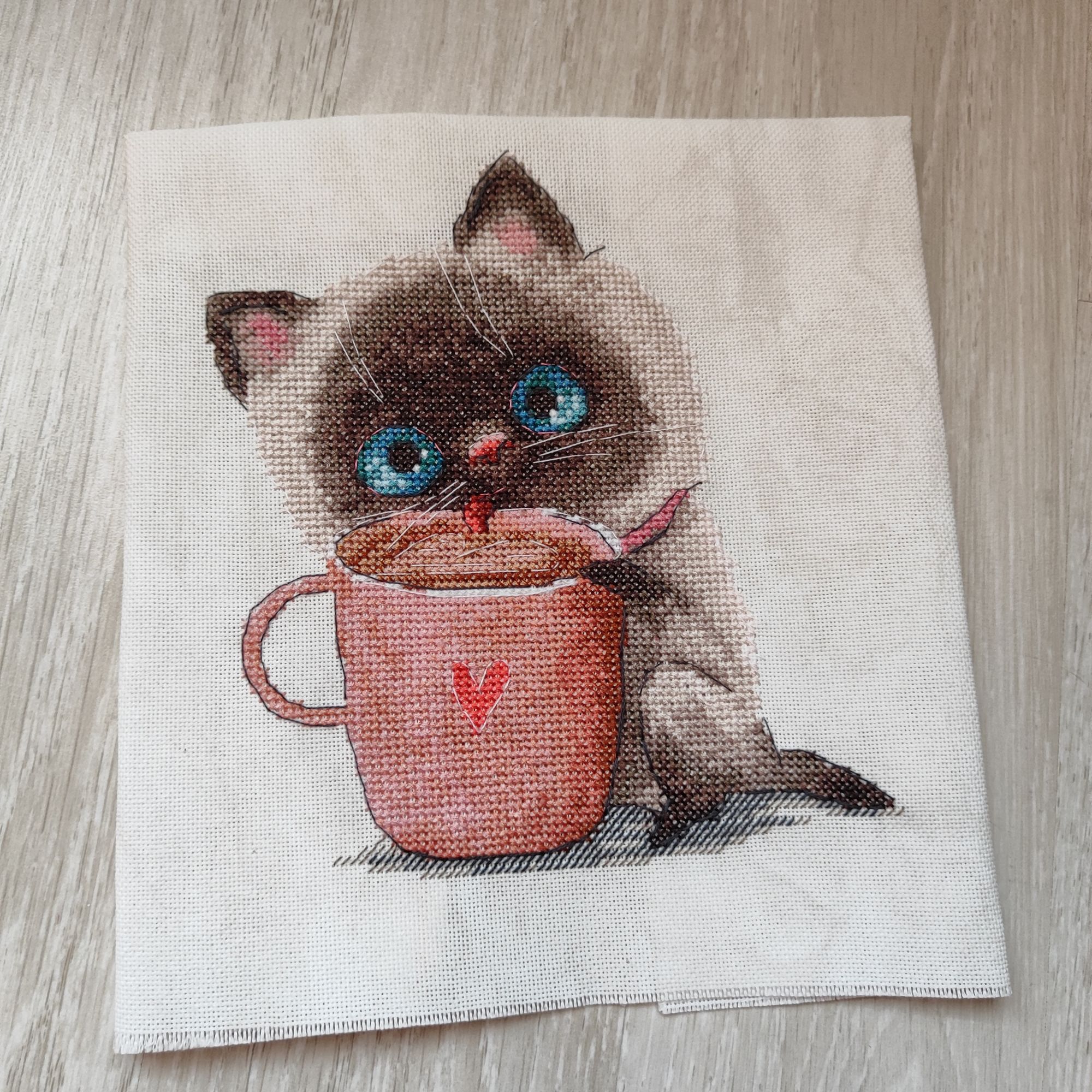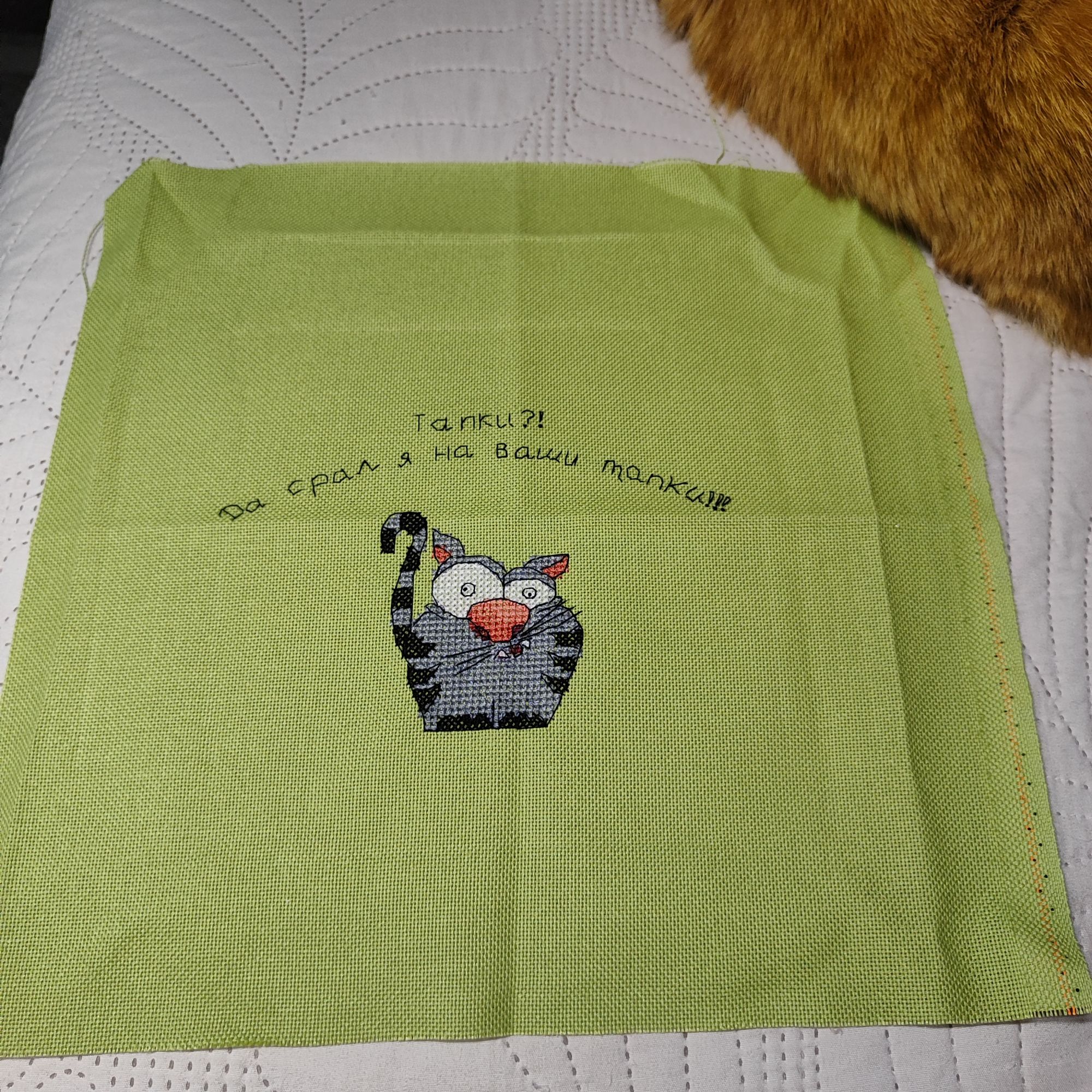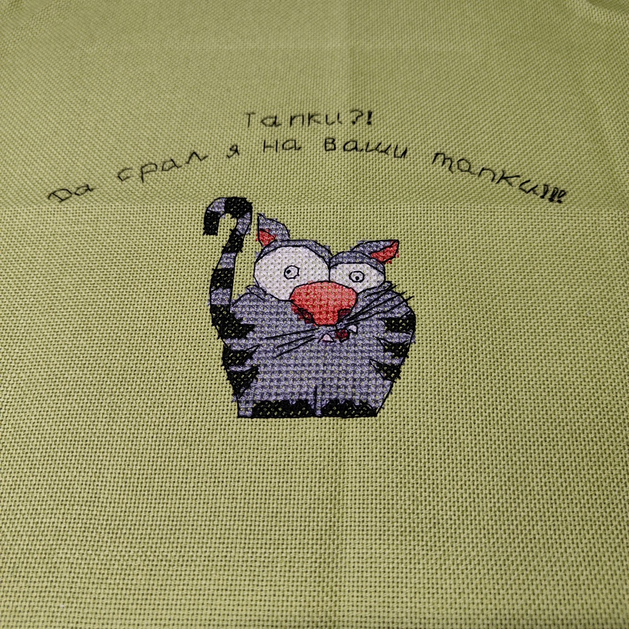 11 февраля 2024 А вот и всё! Готов мой кофеман! Вторая половинка отреза пойдет, видимо, на второго кота от Андрианы (который с цыплятами). Но меня подвёл мой глазомер и я сместила немного картинку вниз, поэтому снизу как бы мало осталось свободного места. Вообще я думала, что картинка будет несколько ярче, чем получилась, плюс мне непонятно, зачем бэк светлого цвета по светлому? В общем, как обычно в авторских схемах, имеются нюансы. Что касаемо ниток, друзья, то они отвратительны. Чудесная игла даже нервно курит в сторонке, правда. Как можно быть такими отвратительными,я не знаю. Узлы,узлы, всё закручивается, рвётся, в общем я не экономила и много чего завязанного в узлы даже не стала распутывать, а просто выкинула безжалостно в помойку. Зато схема напечатана на большом, даже огромном листе, но я ею не пользовалась, потому что в наборе был код для Саги. В принципе, вышивается легко и быстро, но мне бы нравилось больше, если бы сама картинка была поярче. Муняша, svetlana62, Marusya1978 и 15 других сказали спасибо Поделиться сообщением Ссылка на сообщение