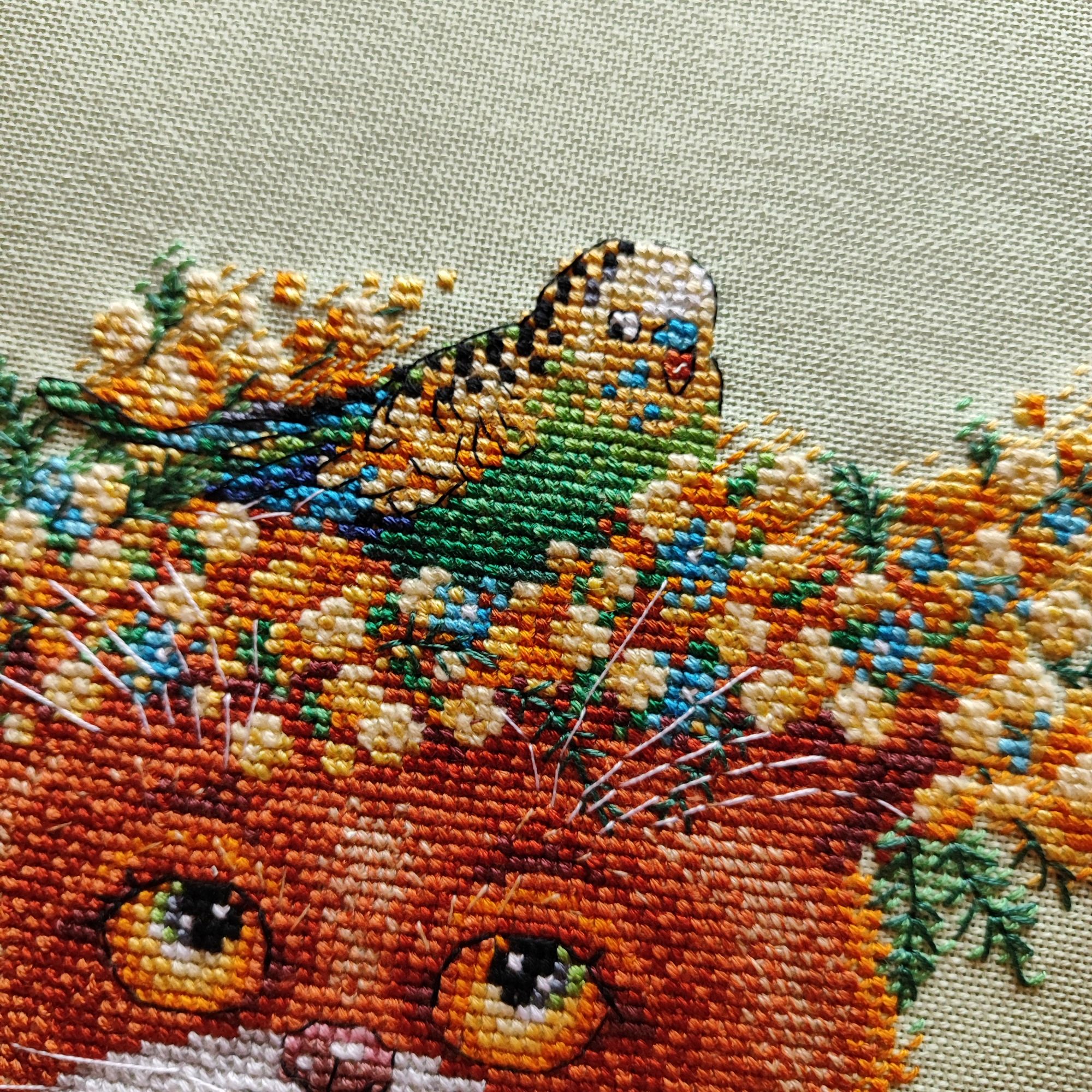 30 апреля 2024 Готова моя тыковка, картон для пинкипа куплен, теперь осталось только сесть и что-то из этого всего изобразить. Продвижение котика за 6 дней. Казалось бы, коричневая гамма, а вышивается как песня. Жду, когда доберусь до попугайчика и мимозы на голове котика. relax_cross_stitch, Sky026, АлёNка и 12 других сказали спасибо Поделиться сообщением Ссылка на сообщение