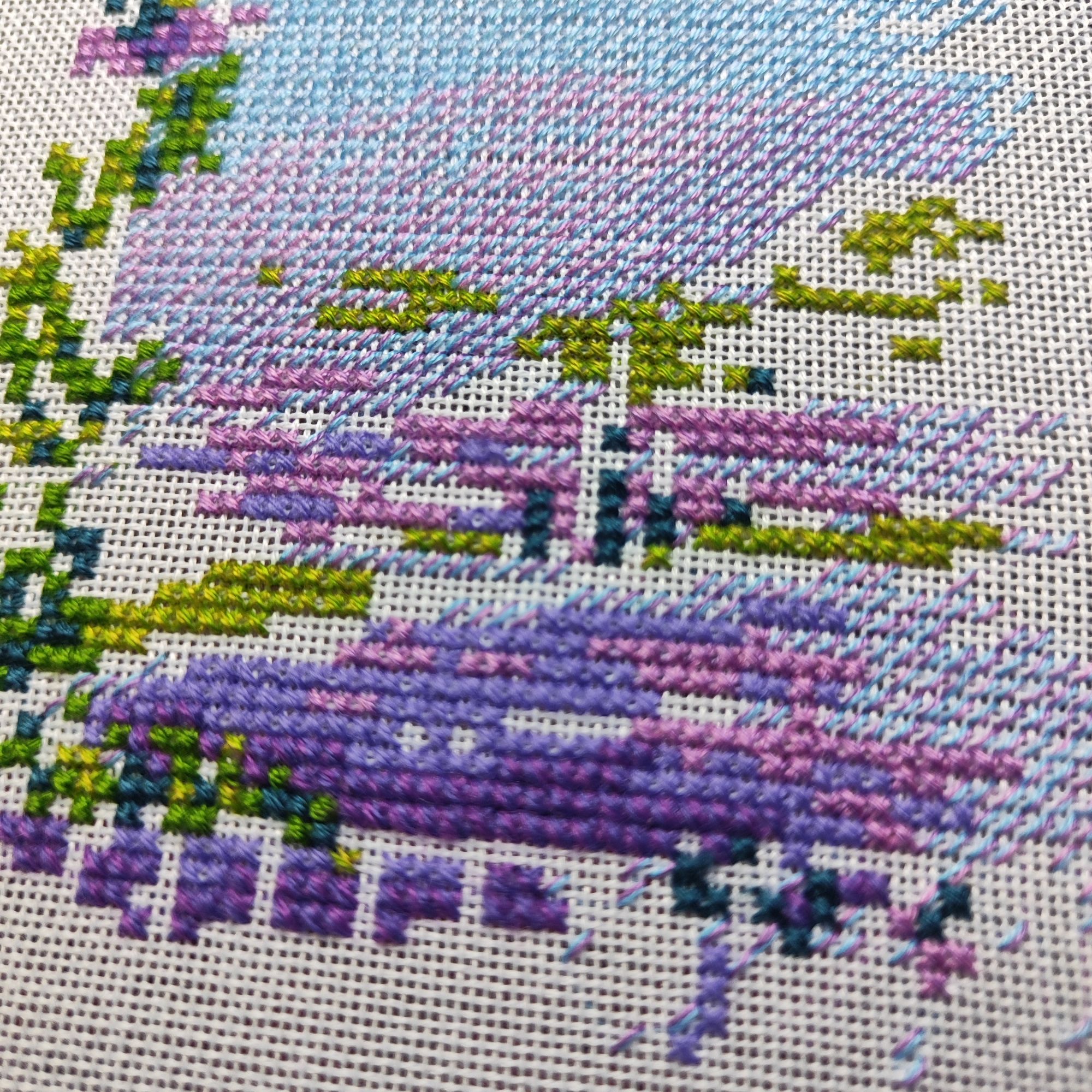16 мая 2024 Так, вот результат за три вечера. Самые пухлые фиолетовые крестики это как раз шерстяные) честно говоря, если не знать, что это шерсть, можно и не заметить. Рядом есть крестики в три нитки, они из мулине и со стороны выглядят как шерстяные. Ну в общем, такая задумка дизайнера, пусть будет. Ещё есть немножко бисера двух цветов, они пришиваются где-то в цветочках. Сейчас не очень понятно,что я навышивала, но я начала с середины, и пошла вправо. Внизу справа какая-то мешанина из крестиков, даже в саге там разноцветная каша. Короче, надо ещё кое-что начать. И даже не одно)))) По поводу туркомерки. Все хорошо, в снапах держится крепко, а на ощупь странная, как стеклянная. Далее описать не могу. Не деревянная,как в Диме,а плотная и в то же время гладкая, рукой проводишь,а она как синтетика. И заломы , наверное, будут. Скорее всего, придется потом хорошенько отпаривать. В следующий раз, когда соберусь на ней вышивать, я ее постираю ради интереса. Почему у меня немного криво? Это я так натянула основу, и мне было лень ее перетягивать, потому что она скользкая))) snowflake, Хозяйка смешных зверей, Chatte и 14 других сказали спасибо Поделиться сообщением Ссылка на сообщение