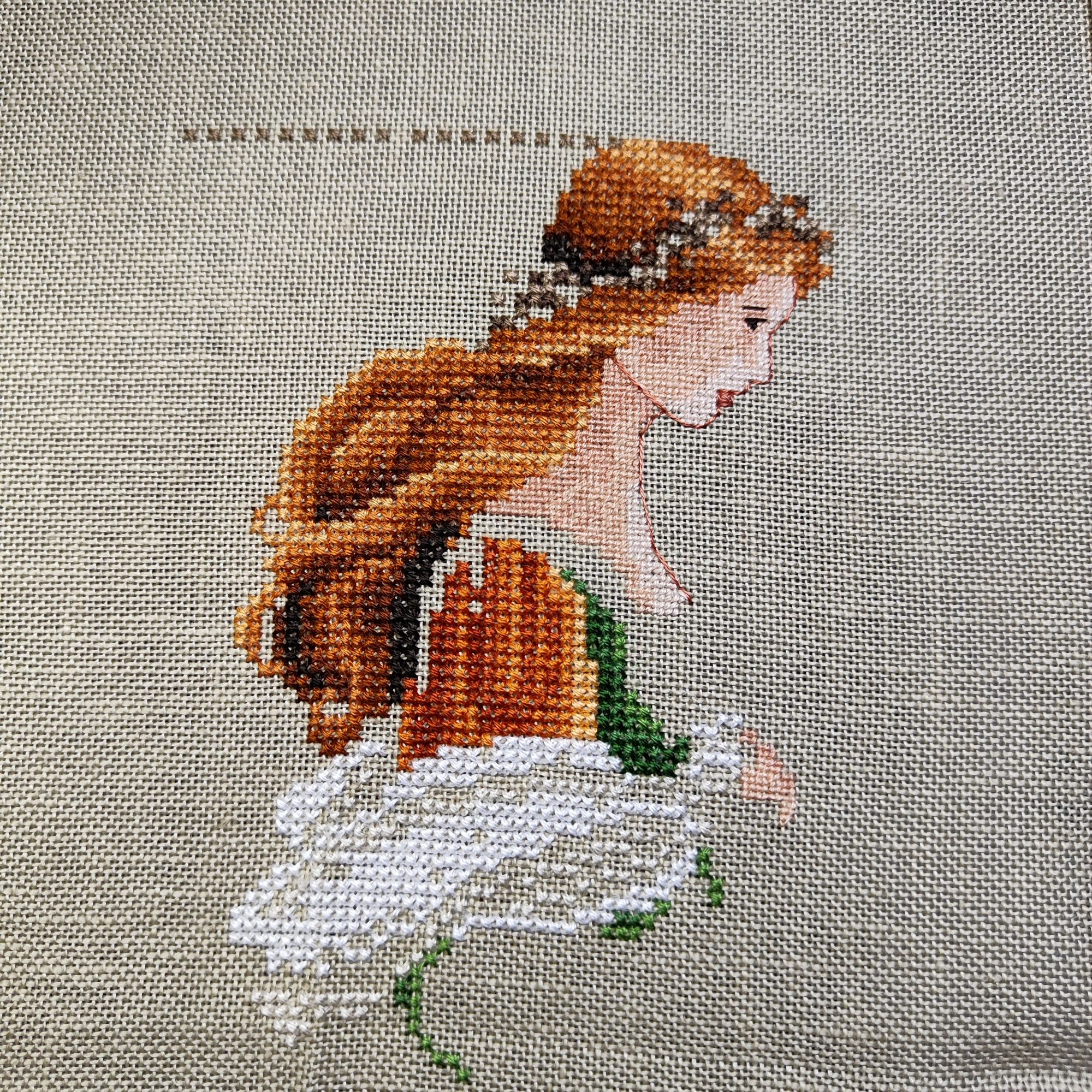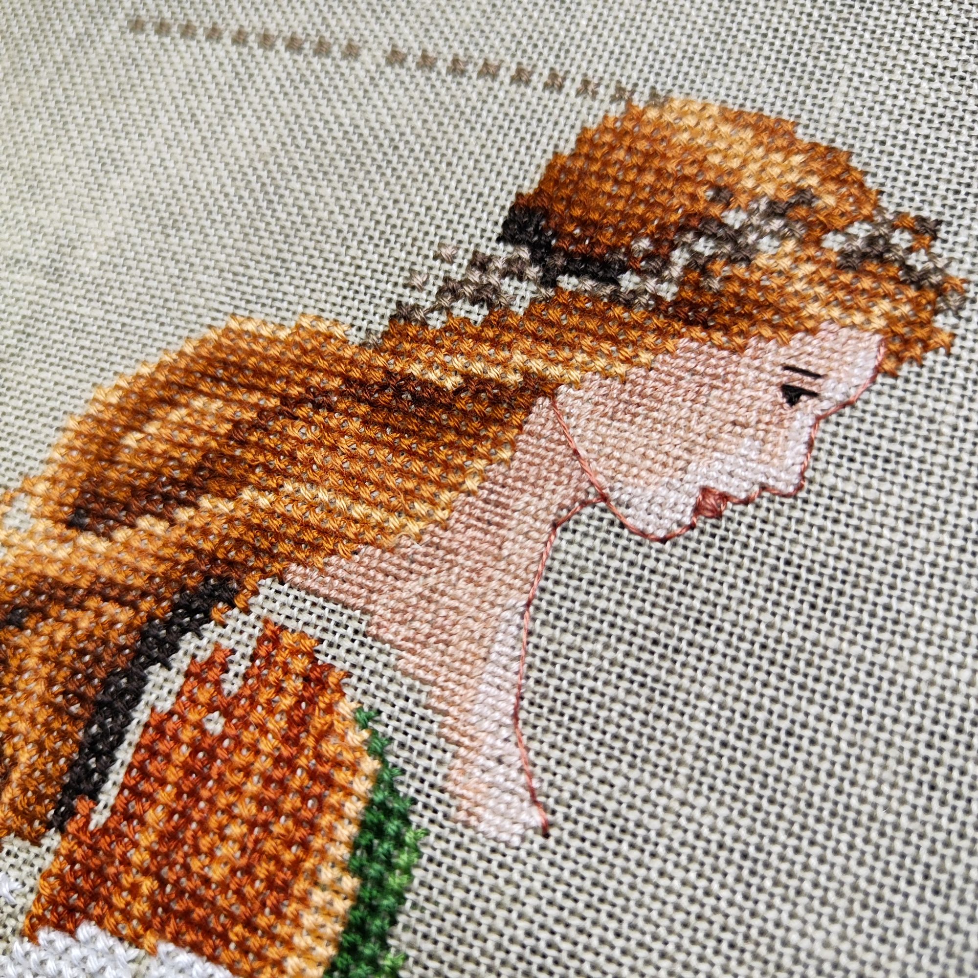 19 мая 2024 Продуктивно очень прошли мои выходные, несмотря на чудесную теплую погоду. Не могу долго теперь ходить, нога беспокоит сильно и прогулки мои сильно сократились по времени и продолжительности(( пока особых изменений нет в этом. Поэтому приходится большую часть свободного времени торчать дома, чтобы лишний раз не травмировать свое многострадальное копыто. Зато навышивалась досыта, тем более что вся неделя предстоящая у меня рабочая и я не знаю, сколько удастся поштопать на этой неделе. Риолис И запоем начала вышивку кельтской девушки. Поскольку у двух предыдущих лицо и руки я вышивала петитом, здесь я решила вышивать так же. Только когда вышила ей лицо, поняла, что наклон петита в другую сторону, не как у крестиков. Но задача была в том, чтобы сгладить переходы и сделать кожу поизящнее (в крестиках это не получится, мне не нравится), плюс бэк на лице немного сгладила. У этих девчонок у всех носы топором и достаточно грубоватый бэк в лицах. Пришлось извращаться,взяв бисерную иголку и ей вышивать петит и бэк. В общем, мне нравится)). Вышиваю.я ее на снапах, поэтому бисер буду пришивать уже потом, когда вышью всю работу полностью. Потом натяну все это дело на раму и пришью все эти блестяшечки. Забава_, snowflake, Хозяйка сфинкса и 16 других сказали спасибо Поделиться сообщением Ссылка на сообщение