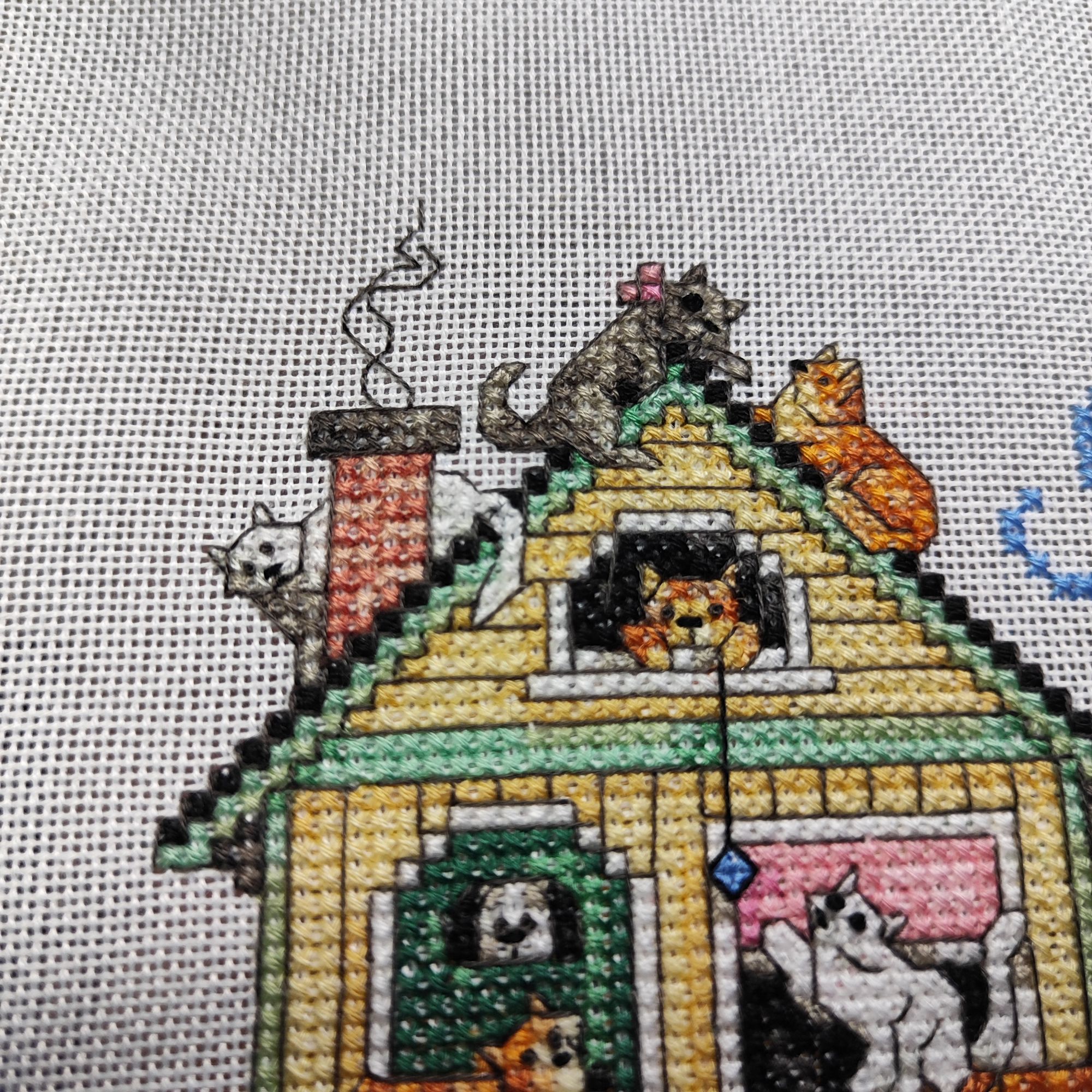 12 июня 2024 Продолжила сэмплер с котиками и убедилась в очередной раз,что Жанлин простых путей не ищет) я не в первый раз вышиваю Жанлин,но столько бэка на один квадратный сантиметр вижу впервые. Это какой-то капец, если честно))) но тем и хорошо,что данную работу можно вышивать небольшими кусочками, чтобы успеть по ней соскучиться и чтобы за пару дней смочь вышить очередной законченный кусочек. Сейчас я пошла влево,там у меня домик с кошками, который меня задолбал)))) я посмотрела схему в саге дальше, вроде бы такого адского безобразия больше не предвидится,но кто знает, может, я не так вглядывалась. В общем, снова откладываю ее, нужен отдых. И ещё раз повторюсь,я не представляю как все это безобразие можно вышить на канве. Там и фрузелки мельчайшие вместо глаз,и половинки крестиков, которые придают деталям сглаженный вид. Ну как? Я на равномерке вышиваю и то для отделочных работ взяла острую тонкую иглу, чтобы вышло аккуратнее. Pearl20, Аленка-2, Фро-J и 13 других сказали спасибо Поделиться сообщением Ссылка на сообщение