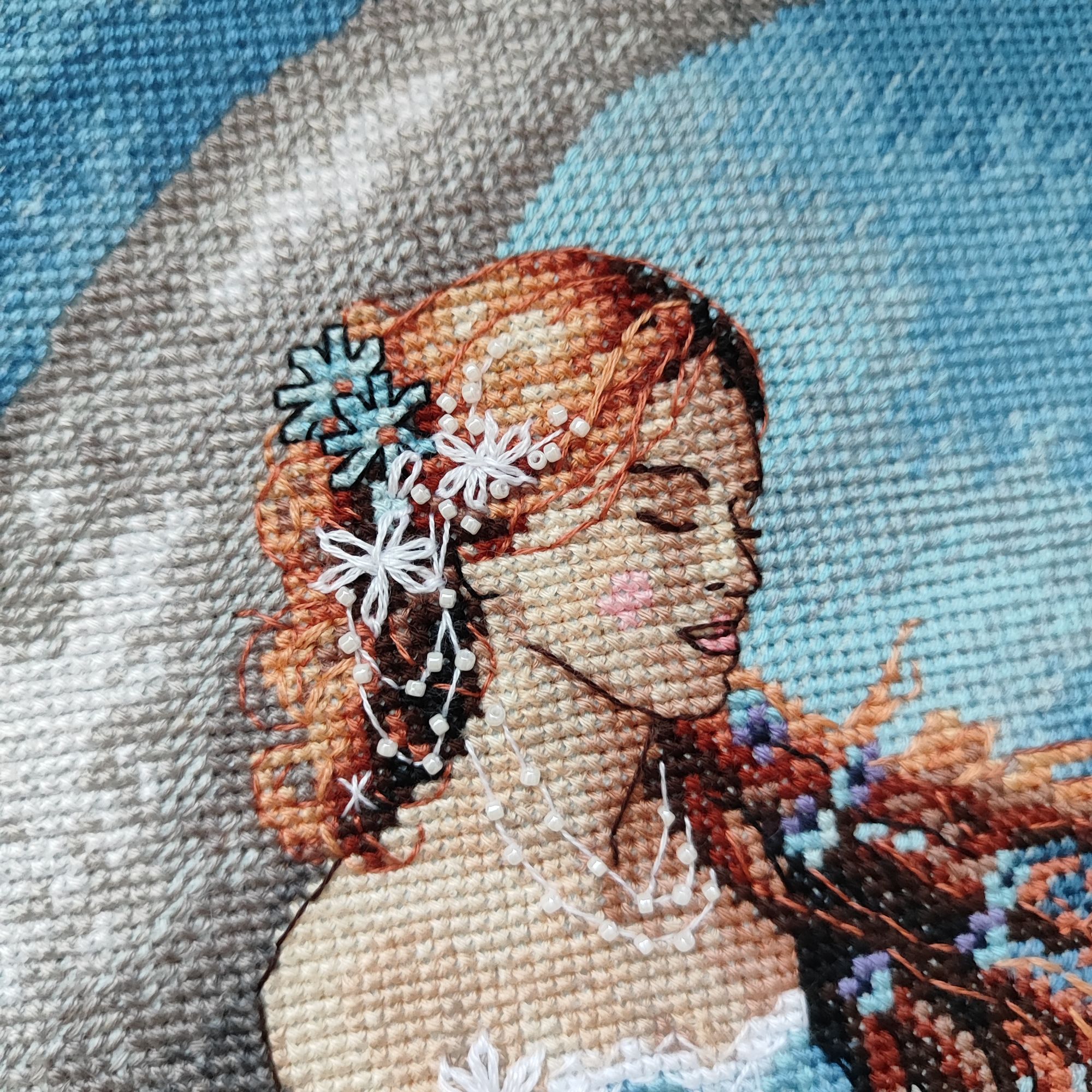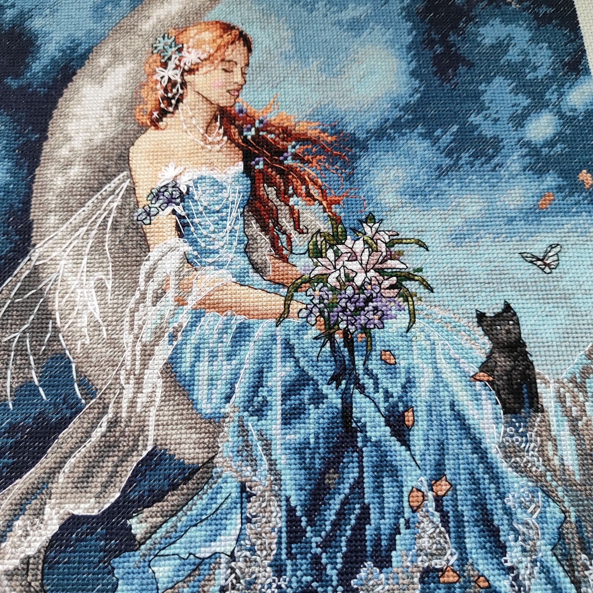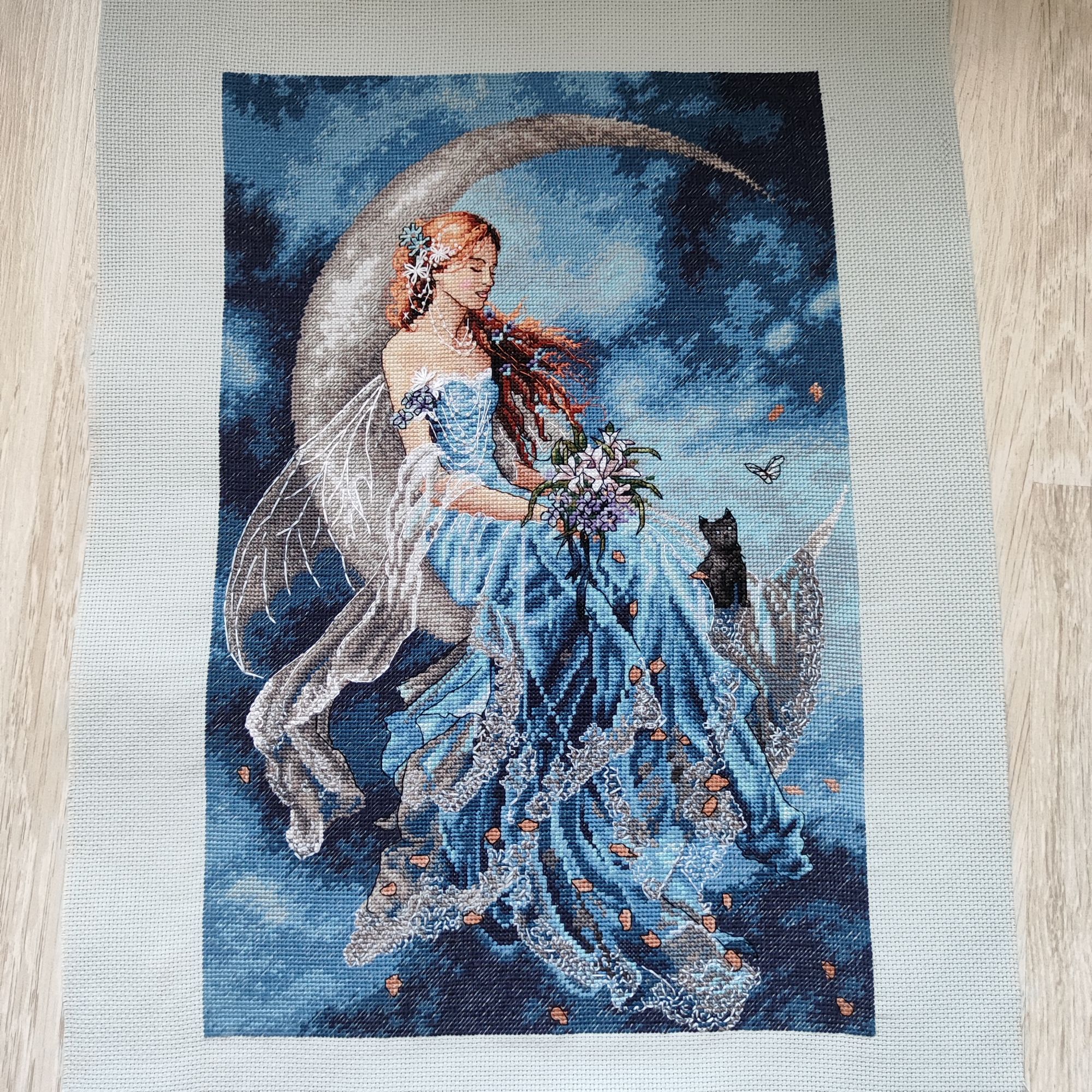 27 октября 2024 Итак, готова Лунная фея! Фото не передаёт красоту готовой работы, высвечивает полукрест, ну это и понятно,вживую вышивка смотрится намного ярче, прозрачный шарф феи, изысканное кружево на подоле ее платья ещё нежнее, а ночь - темнее)) Работа на самом деле простая, фон зашивается полукрестом в разное сложение нитей, здесь самое кропотливое - это отбэкать кружево, чтобы в итоге оно выглядело именно так - полупрозрачно и невесомо, все усилия стоят такого результата. Вышивала я по Саге, что значительно упростило работу, ниток осталось очень прилично, учитывая мои особенные отношения именно с Димом, когда практически в каждом наборе у меня не остаётся ниток,а иногда случается их нехватка. В общем, после этой работы руки чешутся взять ещё какую-нибудь феечку,но это будет снова Голд,а у меня тут есть ещё незаконченные голды.... Хотя разве это может остановить?)) Гало4ка, Дикая белочка, Alina1989 и 18 других сказали спасибо Поделиться сообщением Ссылка на сообщение