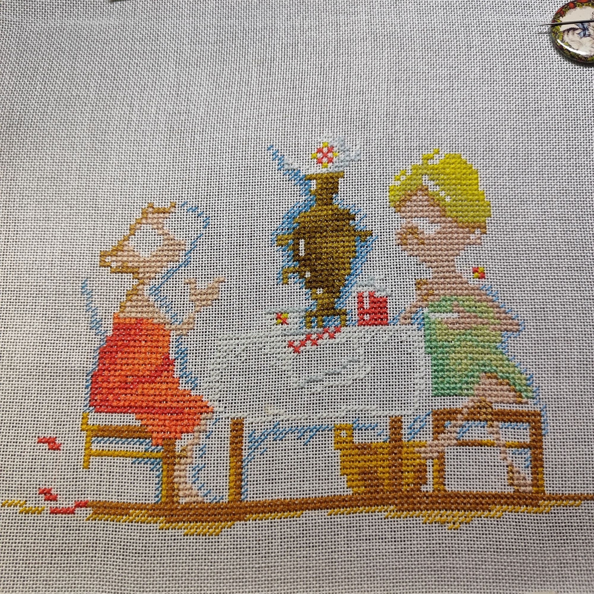 3 ноября 2024 Всем привет! Немного поковыряла Золотое руно, процесс приятный, но надоедает большие участки зашивать одним цветом, но я уже перевалила далеко за экватор, что не может не радовать. К тому же сейчас я остановилась на совсем скучном участке,поэтому решила ненадолго отложить работу) продвигать остальные процессы тоже не хочется, а все так же хочется начинать что-то новое, но пока я не определилась,что и сколько (а хочется всего и много)))), то решила взять бабушек от Андрианы, к тому же работа небольшая, вышивается легко, а я хочу на работе их развесить,уж больно нравится мне реакция приходящих в кабинет сотрудников! Канва заменена на белую туркомерку, и я хочу прикупить ещё один набор, где веселые бабки вышивают))) Кисуля, Аленка-2, sunny981 и 13 других сказали спасибо Поделиться сообщением Ссылка на сообщение