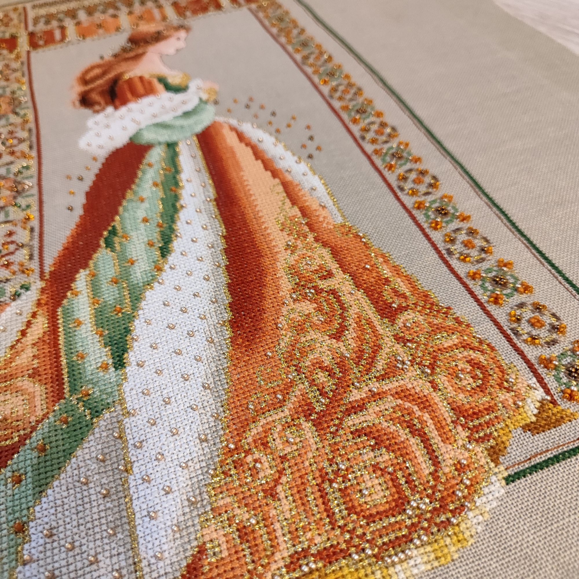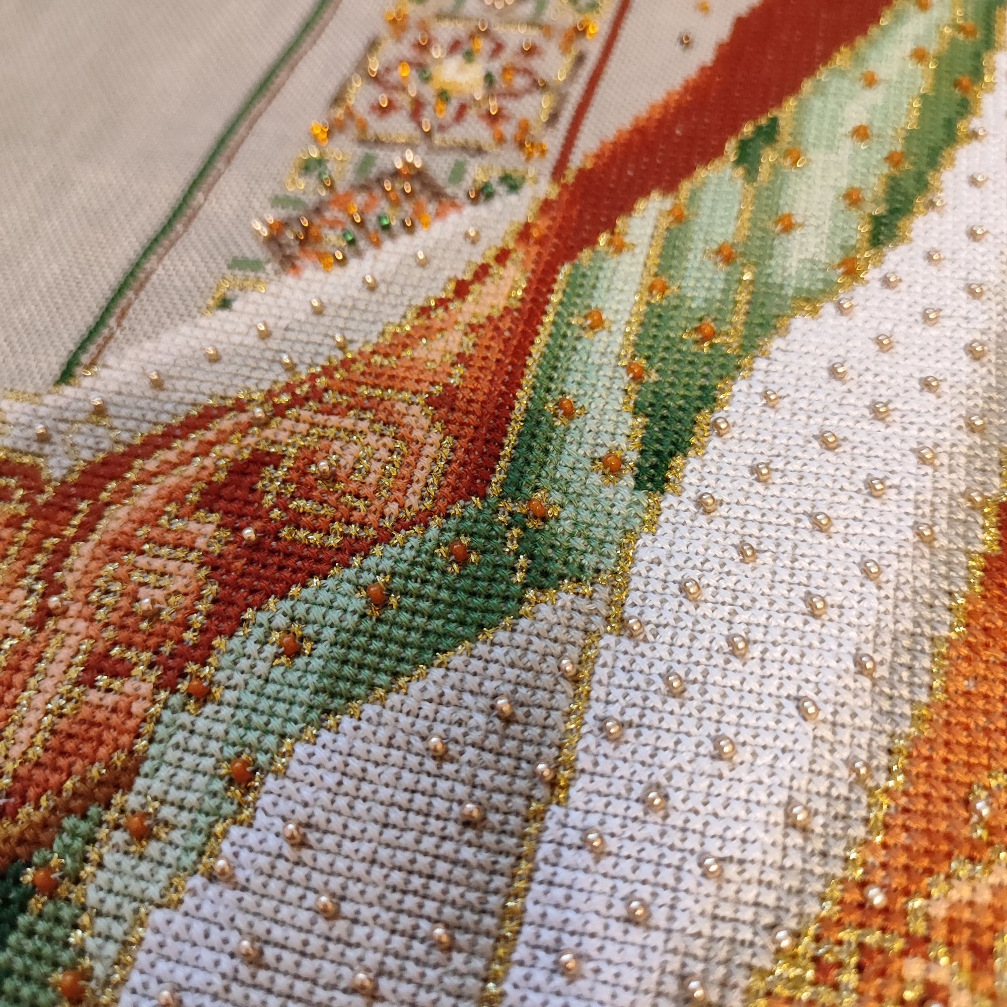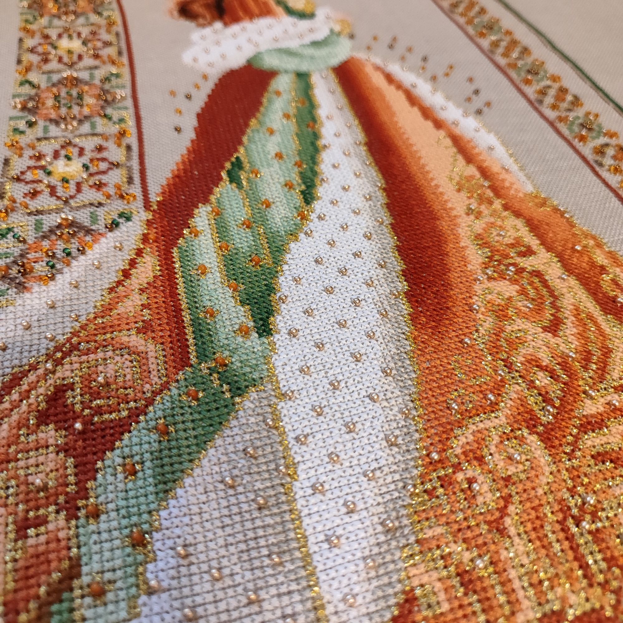 15 ноября 2024 Не спеша, с удовольствием пришила бисер на Осеннюю девушку от Лавендер, покажу завтра, стирать ее нельзя, но надо отгладить и постараться как-то сфотографировать, чтобы понятно было, какое там роскошество, которого не видно на фото))) Также почти закончена Марья Искусница, сегодня доделаю бэк и работа готова. Мне очень понравилось, особенно то, что Марья положила в набор столько ниток и бисера, что ниток точно на второй отшив хватит с лихвой, да и бисера тоже, ну только что зелёного/бензинового мало осталось, но по желании можно симпровизировать и взять другой цвет, или подобрать что-то похожее, с бисером в этом плане проще. Пришивала бисером спецниткой. На фото показала, сколько осталось в пакетике и я считаю,что прилично! Гало4ка, Selinta, Lucia-del-Umago и 12 других сказали спасибо Поделиться сообщением Ссылка на сообщение