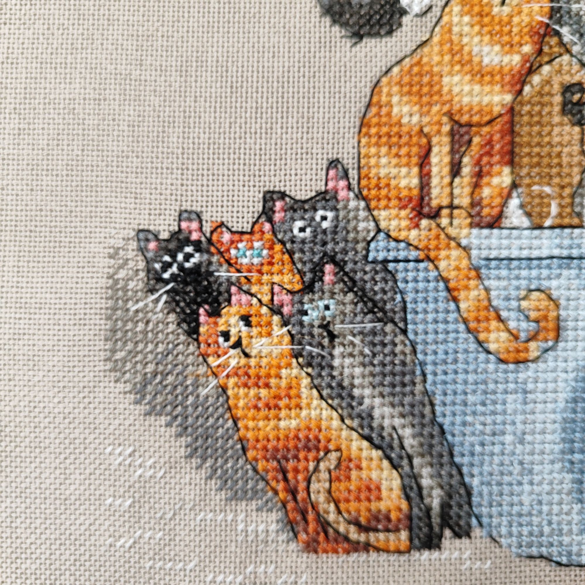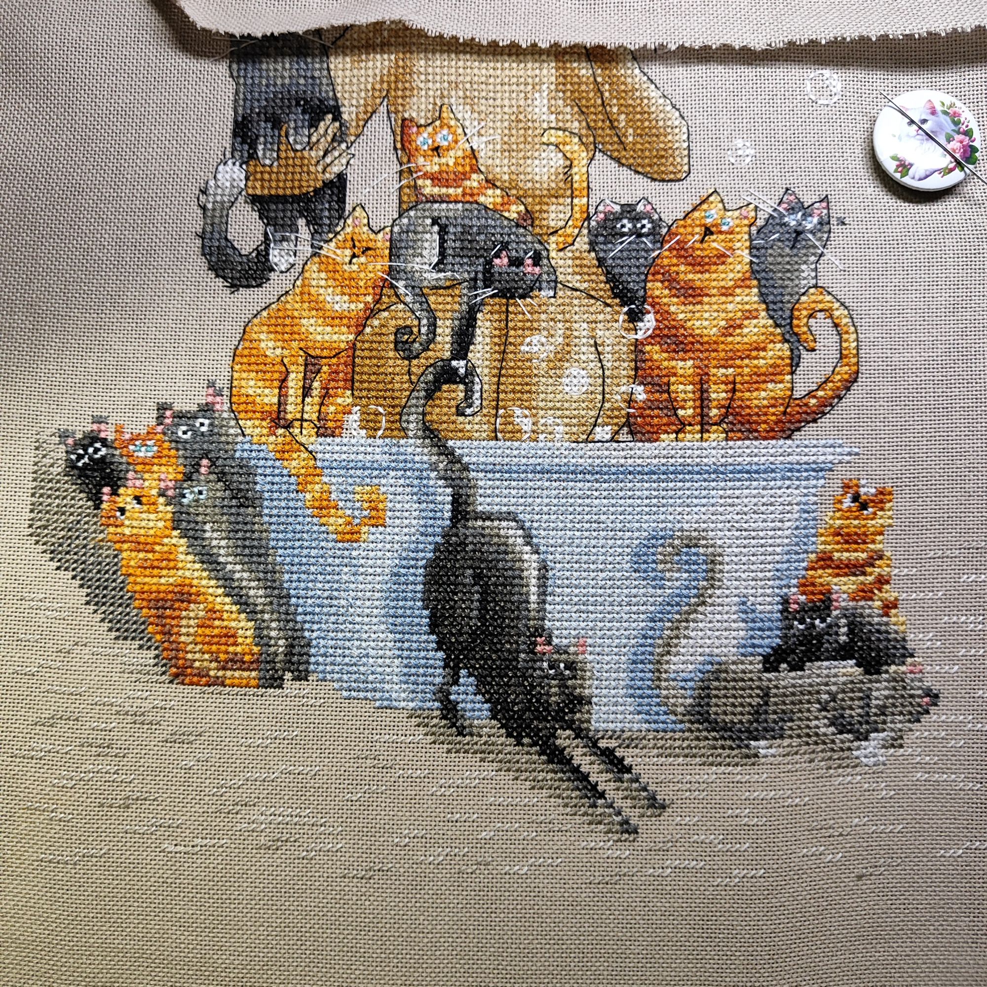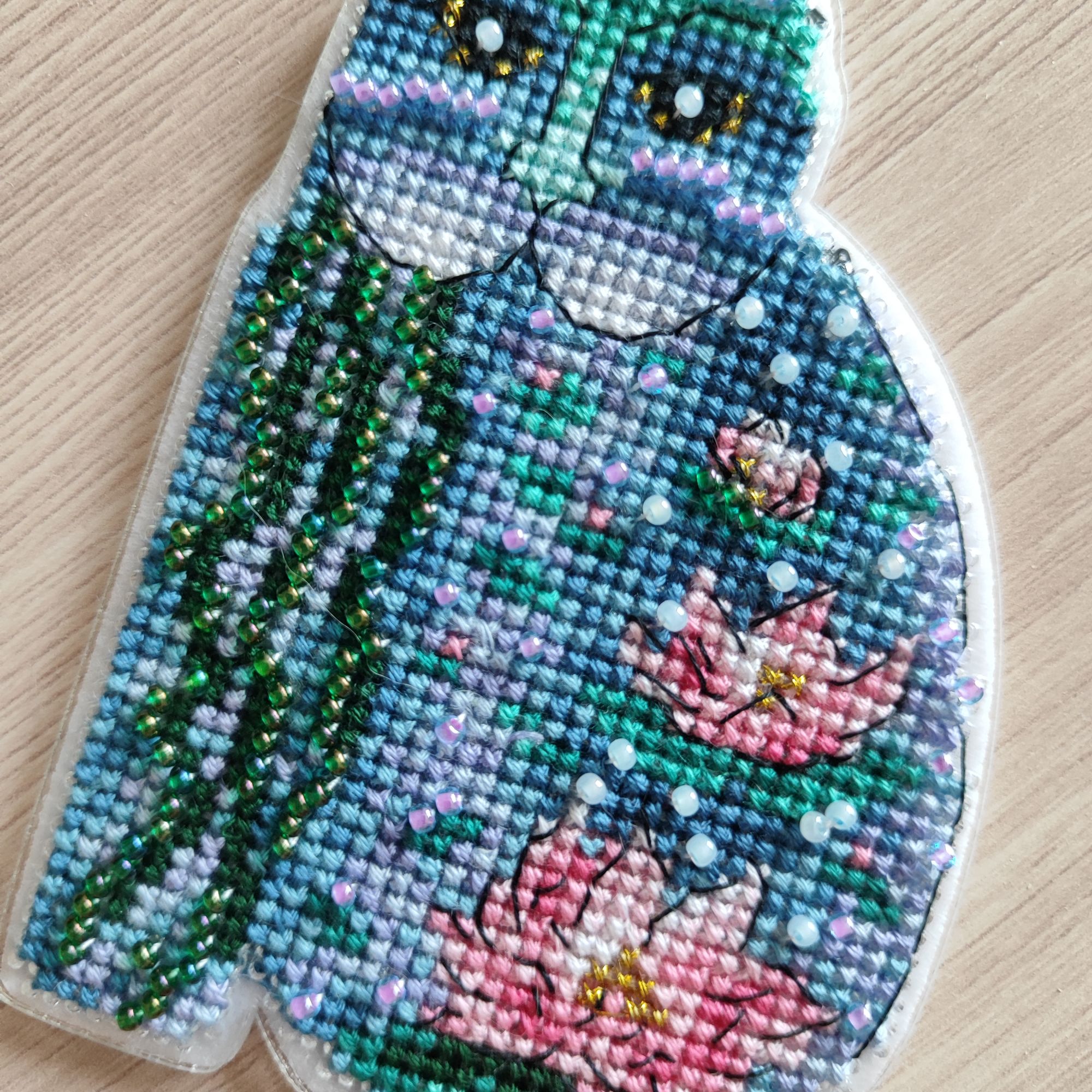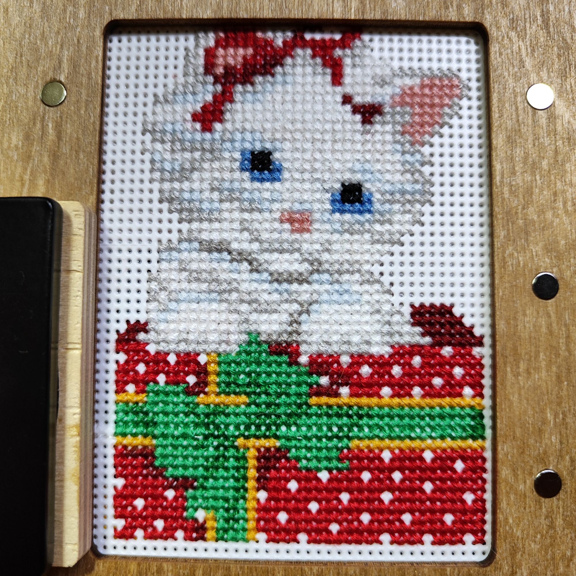 10 августа Ещё один котенок готов) и вот что у меня тут случилось. Вырезала прямоугольник пластика, запялила, сижу себе и вышиваю. Вышила котика, решила спуститься вниз и обнаружила, что магнитные пальцы я повернула таким образом, что снизу нифига места не осталось , зато справа.. В общем, когда крепила пяльцы к станку, неправильно прикрепила. Кто давно на моей странице, вспомнят печальную историю с заливом Гумбольдта, когда я весело и резво вышила почти половину работы, сдвинув не вверх, и пришлось вышивку на мажорном редком льне выкинуть в мусорку. Вместе с тем самым дорогим льном))) Тут все проще, отрезала нужный кусок справа и надставила снизу. Видно только, если знать. Незашитые квадратики в коробке оставила пустыми намеренно, есть идея уже когда вышью все игрушки, накидать в них бисера, и , может быть, пройтись где-нибудь крейником, потому что новогодние игрушки должны сверкать! И хорошо, что не стала клеить им задники, а то эта идея так и осталась бы идеей. Осталось три котика, следующего возьму чуть попозже. cozy_stitch, Дикая белочка, marvlase и 10 других сказали спасибо Поделиться сообщением Ссылка на сообщение
