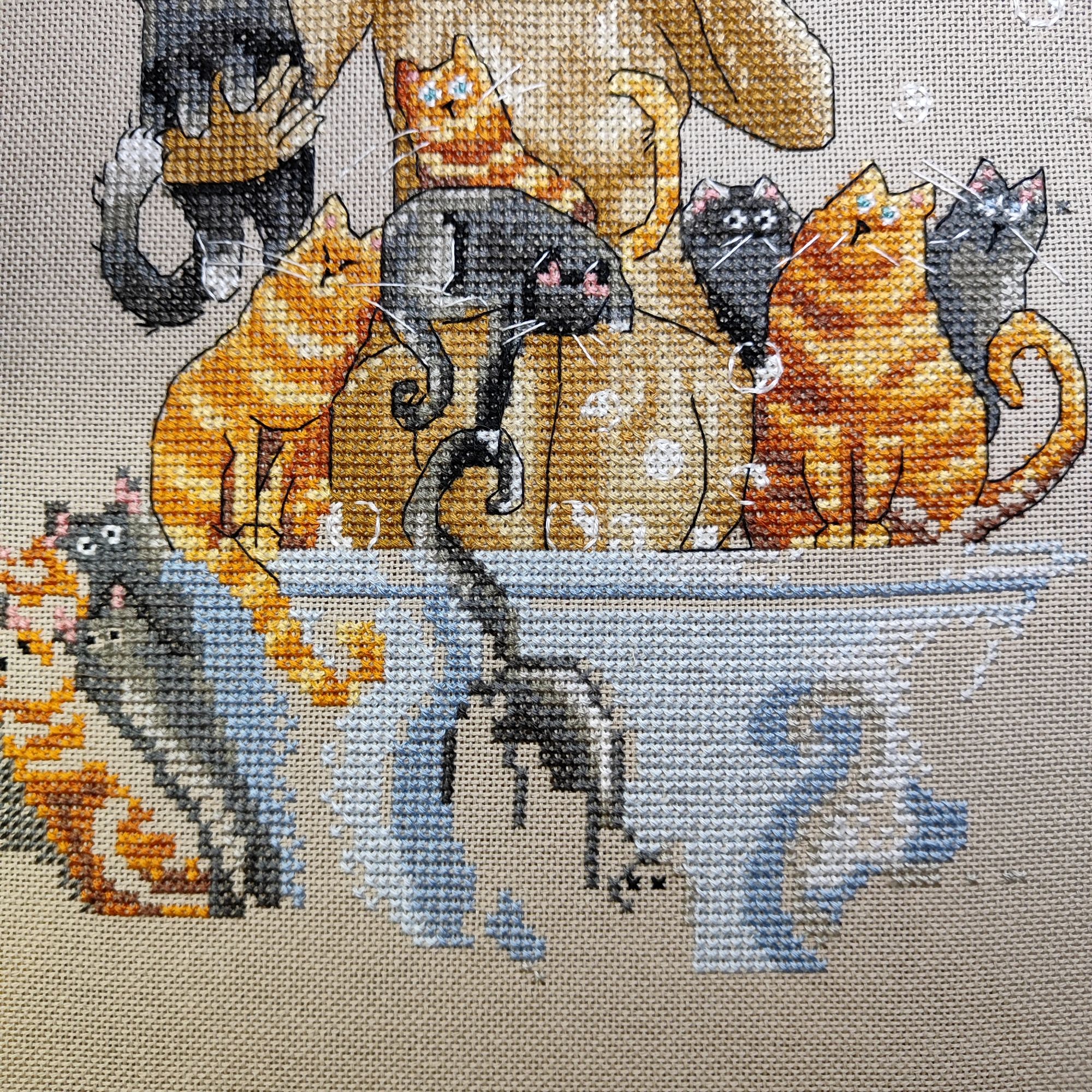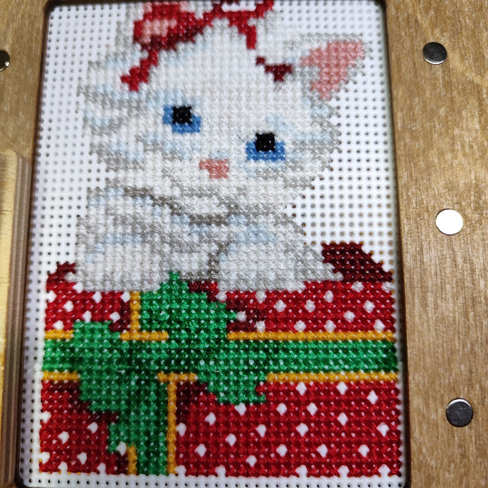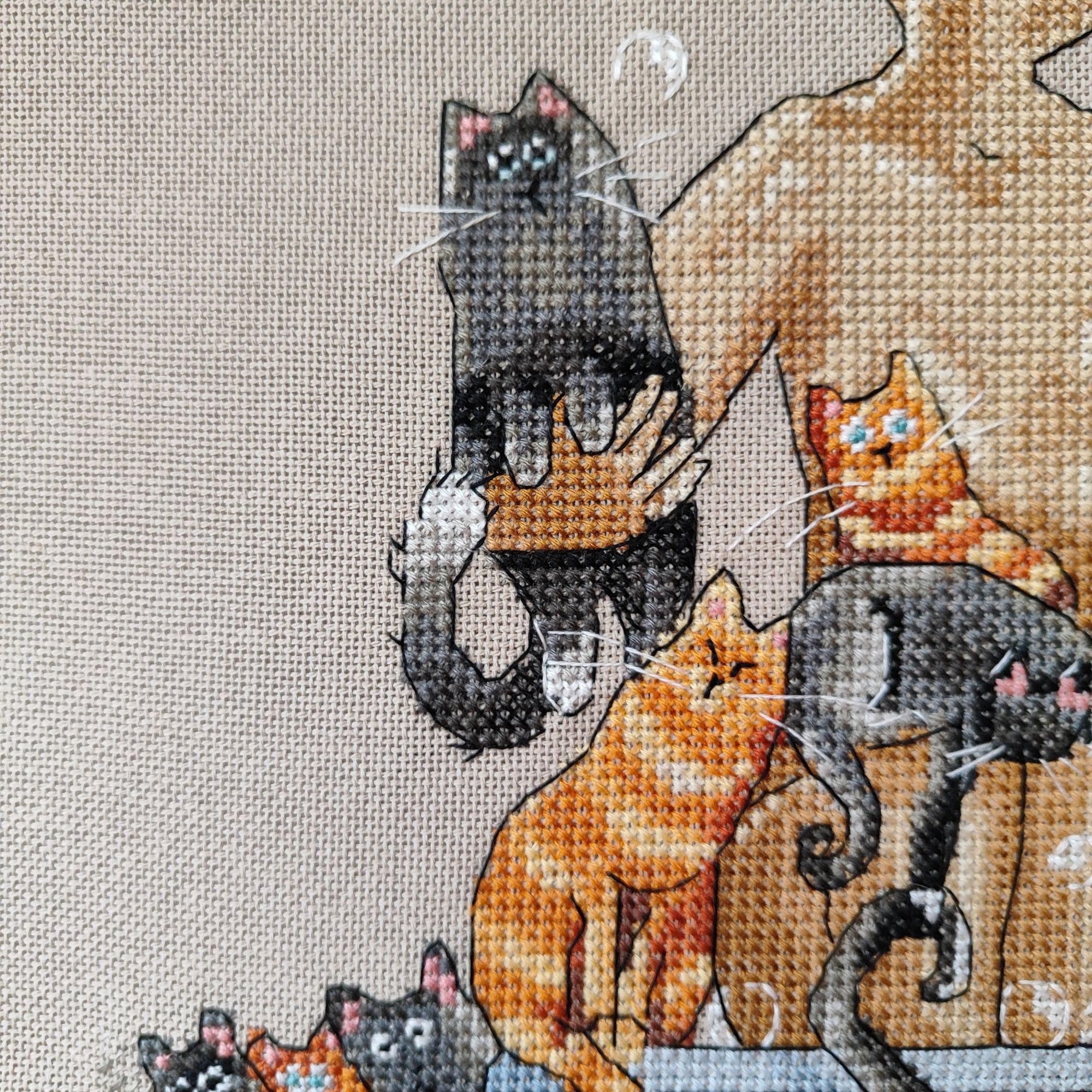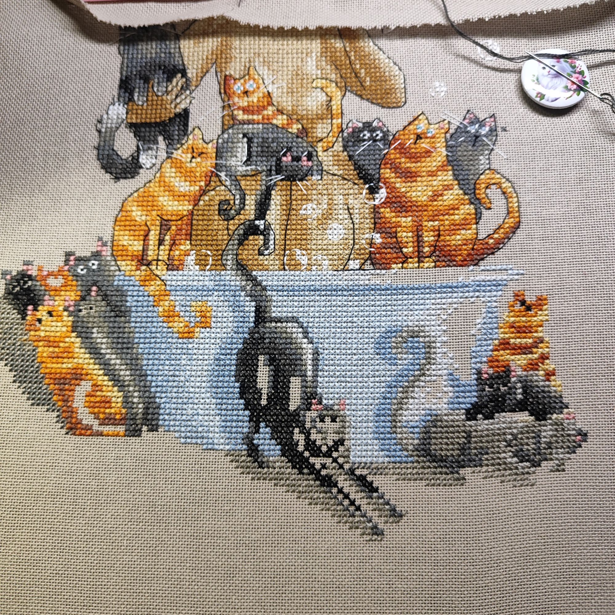 10 августа Ещё один котенок готов) и вот что у меня тут случилось. Вырезала прямоугольник пластика, запялила, сижу себе и вышиваю. Вышила котика, решила спуститься вниз и обнаружила, что магнитные пальцы я повернула таким образом, что снизу нифига места не осталось , зато справа.. В общем, когда крепила пяльцы к станку, неправильно прикрепила. Кто давно на моей странице, вспомнят печальную историю с заливом Гумбольдта, когда я весело и резво вышила почти половину работы, сдвинув не вверх, и пришлось вышивку на мажорном редком льне выкинуть в мусорку. Вместе с тем самым дорогим льном))) Тут все проще, отрезала нужный кусок справа и надставила снизу. Видно только, если знать. Незашитые квадратики в коробке оставила пустыми намеренно, есть идея уже когда вышью все игрушки, накидать в них бисера, и , может быть, пройтись где-нибудь крейником, потому что новогодние игрушки должны сверкать! И хорошо, что не стала клеить им задники, а то эта идея так и осталась бы идеей. Осталось три котика, следующего возьму чуть попозже. cozy_stitch, Дикая белочка, marvlase и 10 других сказали спасибо Поделиться сообщением Ссылка на сообщение