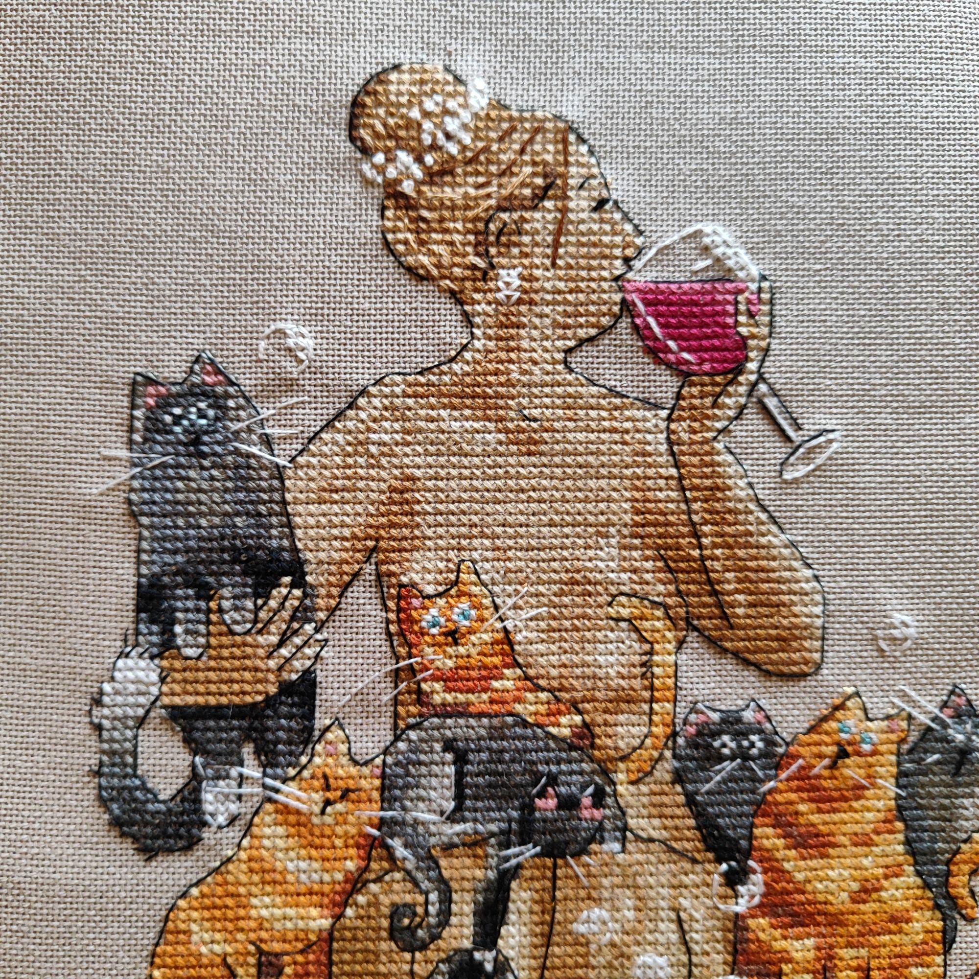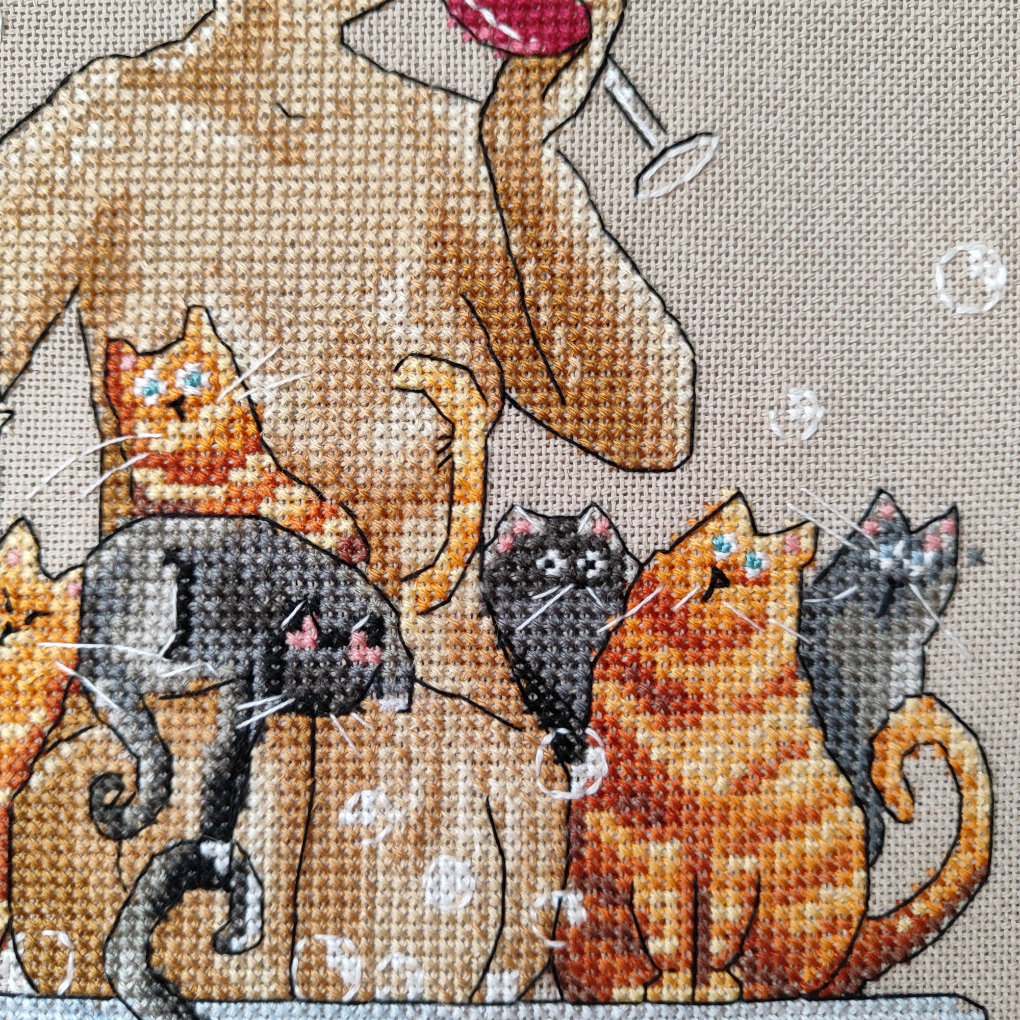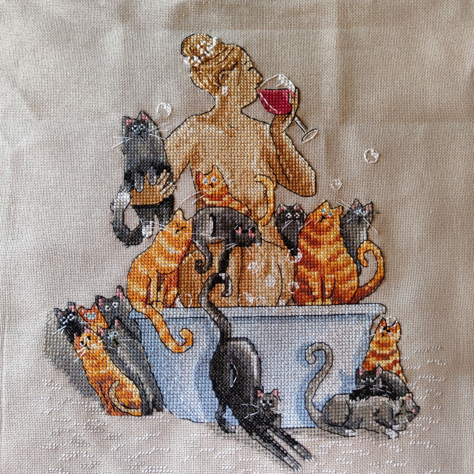 17 августа Сказать,что я получила удовольствие от этой работы -это ничего не сказать. Вышила ровно за две недели (14 вышивальных дней), набор от Нитки, материалы все отличные - Линда, ДМС, игла, фирменные органайзеры. Огромная бумажная схема! Есть код на Сагу. Ниток положено с хорошим запасом, на второй отшив не хватит, но осталось приличное количество. Вышивка разработана по рисунку Рональда Вэста, его рисунки знакомы всем, и на каждом присутствует маленькая черная кошечка)))) художник обожал кошек, но поскольку страдал на них аллергией,то всю свою любовь к ним выражал через свои рисунки, которые потом стали сюжетами для вышивок. Здесь у нас ровно 16 котанов! Единственное, с чем пришлось немного повозиться, это с мелкими крестиками в глазах котов,но зато у них получились уморительные морды и не нужно выделять глаза бэком. Отличная вышивка получилась, и каждая кошатница по-любому узнает в этой колоритной женщине себя)))) И очередная вышивка, которую я наковыряла на работе))) бисер хороший, тканюшка удобная, рисунок напечатан четко, все просто и понятно. Буду из всех этих бисерных цветочков делать пинкипы. Selenia, nogres, svetlana62 и 11 других сказали спасибо Поделиться сообщением Ссылка на сообщение
