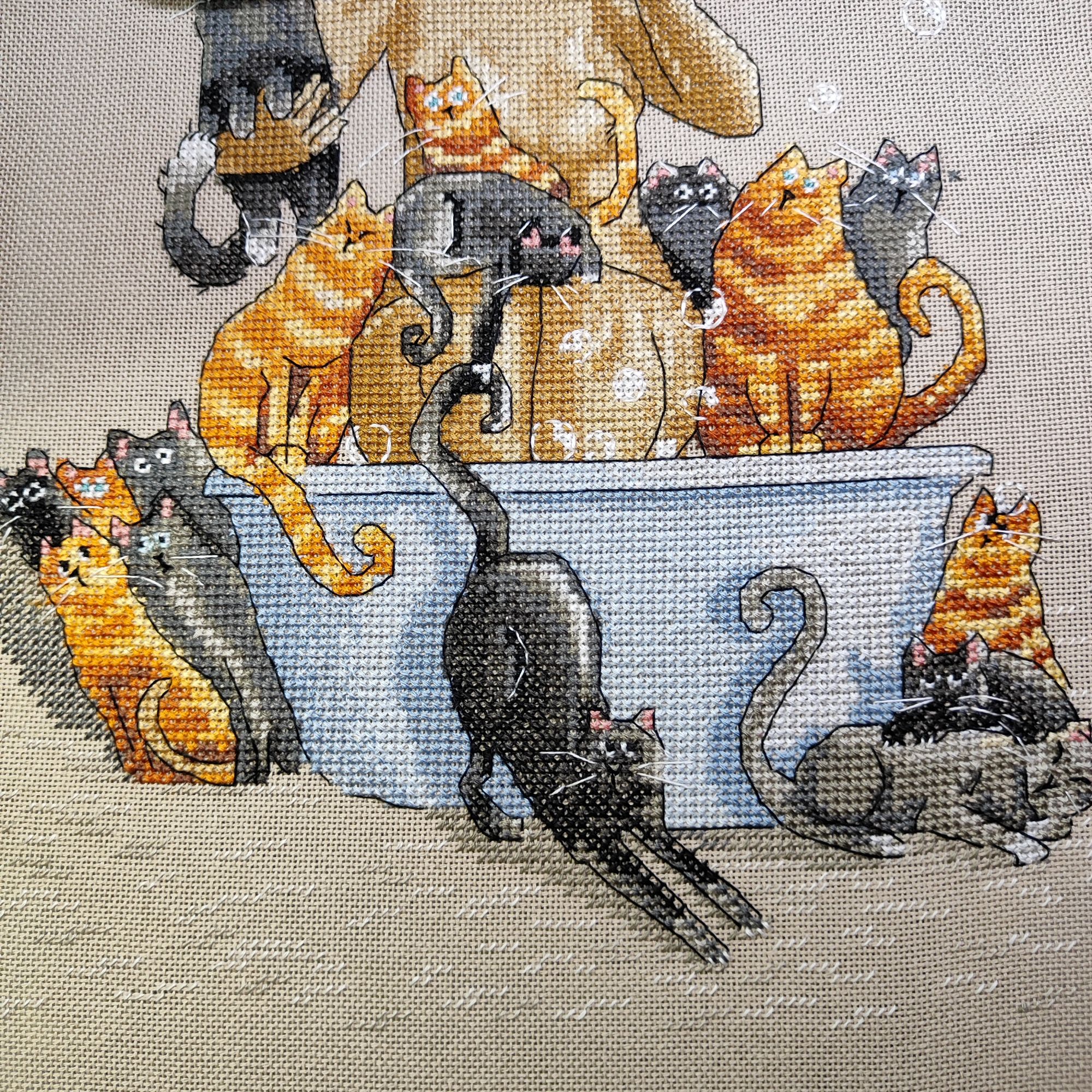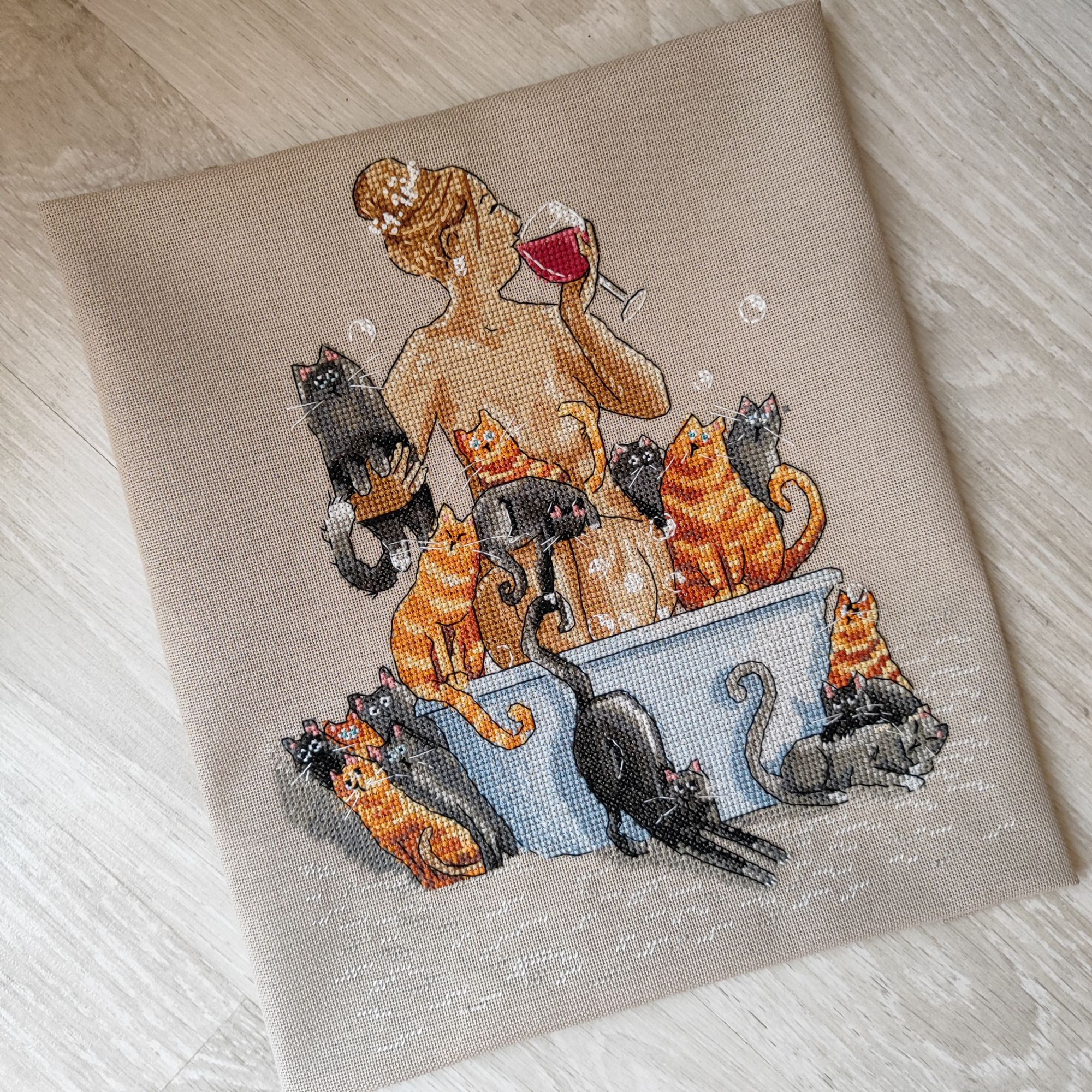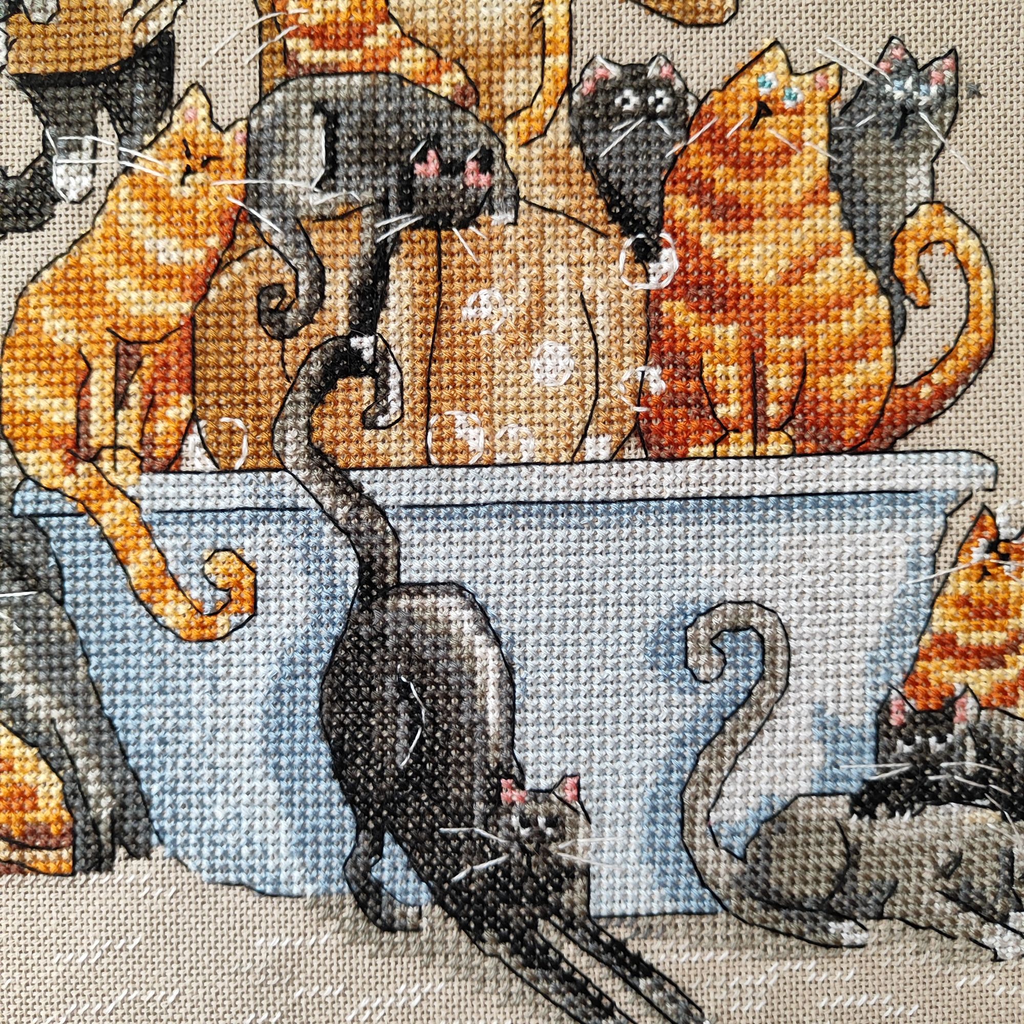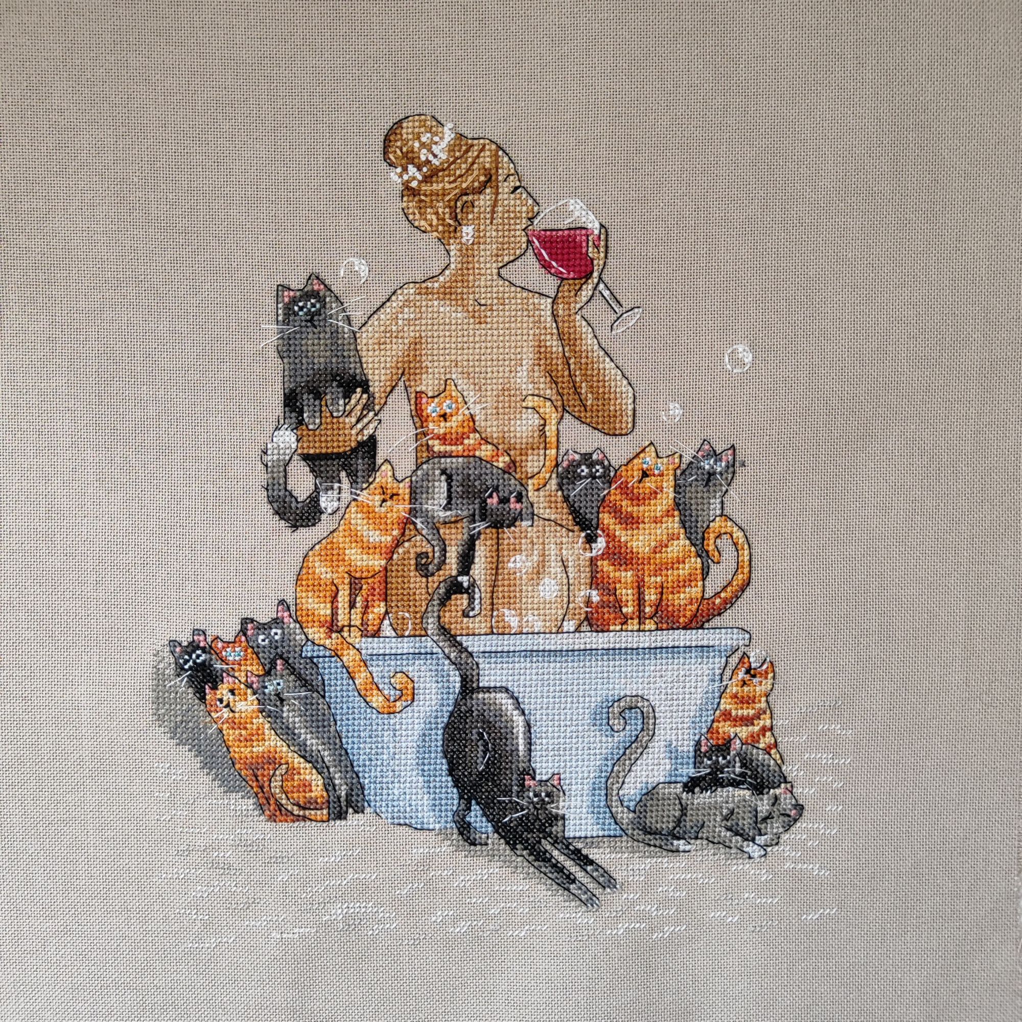 17 августа Сказать,что я получила удовольствие от этой работы -это ничего не сказать. Вышила ровно за две недели (14 вышивальных дней), набор от Нитки, материалы все отличные - Линда, ДМС, игла, фирменные органайзеры. Огромная бумажная схема! Есть код на Сагу. Ниток положено с хорошим запасом, на второй отшив не хватит, но осталось приличное количество. Вышивка разработана по рисунку Рональда Вэста, его рисунки знакомы всем, и на каждом присутствует маленькая черная кошечка)))) художник обожал кошек, но поскольку страдал на них аллергией,то всю свою любовь к ним выражал через свои рисунки, которые потом стали сюжетами для вышивок. Здесь у нас ровно 16 котанов! Единственное, с чем пришлось немного повозиться, это с мелкими крестиками в глазах котов,но зато у них получились уморительные морды и не нужно выделять глаза бэком. Отличная вышивка получилась, и каждая кошатница по-любому узнает в этой колоритной женщине себя)))) И очередная вышивка, которую я наковыряла на работе))) бисер хороший, тканюшка удобная, рисунок напечатан четко, все просто и понятно. Буду из всех этих бисерных цветочков делать пинкипы. Selenia, nogres, svetlana62 и 11 других сказали спасибо Поделиться сообщением Ссылка на сообщение