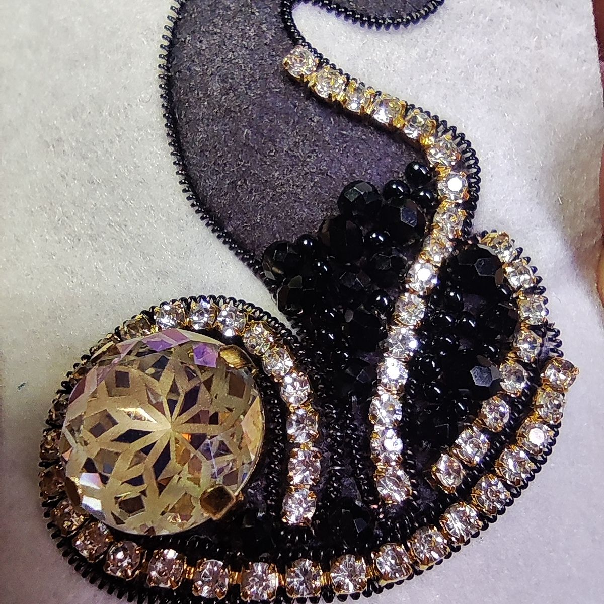 21 сентября А брошь получилась красивая и я даже в этот раз я смогла обшить ее по краям канителью. И теперь мне понятно, почему канитель так называется для меня лично это достаточно сложный материал, эту скрученную проволочку трудно аккуратно укладывать и одновременно пришивать. Поэтому ты с этой канителью канителишься. Дольше всего))). Самое простое здесь - стразовая ленточка, ее просто пришивать, нужно только следить за тем, чтобы стразы ложились максимально близко друг к другу. Ну и поскольку вся эта красота пришивается,вышивается на не слишком толстом кусочке фетра, самое главное здесь - не перетянуть все пришивные элементы. Вместо нити здесь используется только тоненькая леска, что с одной стороны очень хорошо, потому что пришито все крепко и незаметно,а с другой стороны с ней тоже сложно работать, потому что она постоянно скручивается (нить была намотана на шпульку). И хотя я ее постоянно вощила,это не особенно помогало. В набор вложена очень подробная инструкция, все расписано и показано пошагово, поэтому никаких проблем не возникнет. От начала и до конца все наглядно показано,как делается. Так что не бойтесь))) у вас все обязательно получится, если захотите получить такую брошку))) Аленка-2, Гало4ка, Любушка1985 и 10 других сказали спасибо Поделиться сообщением Ссылка на сообщение