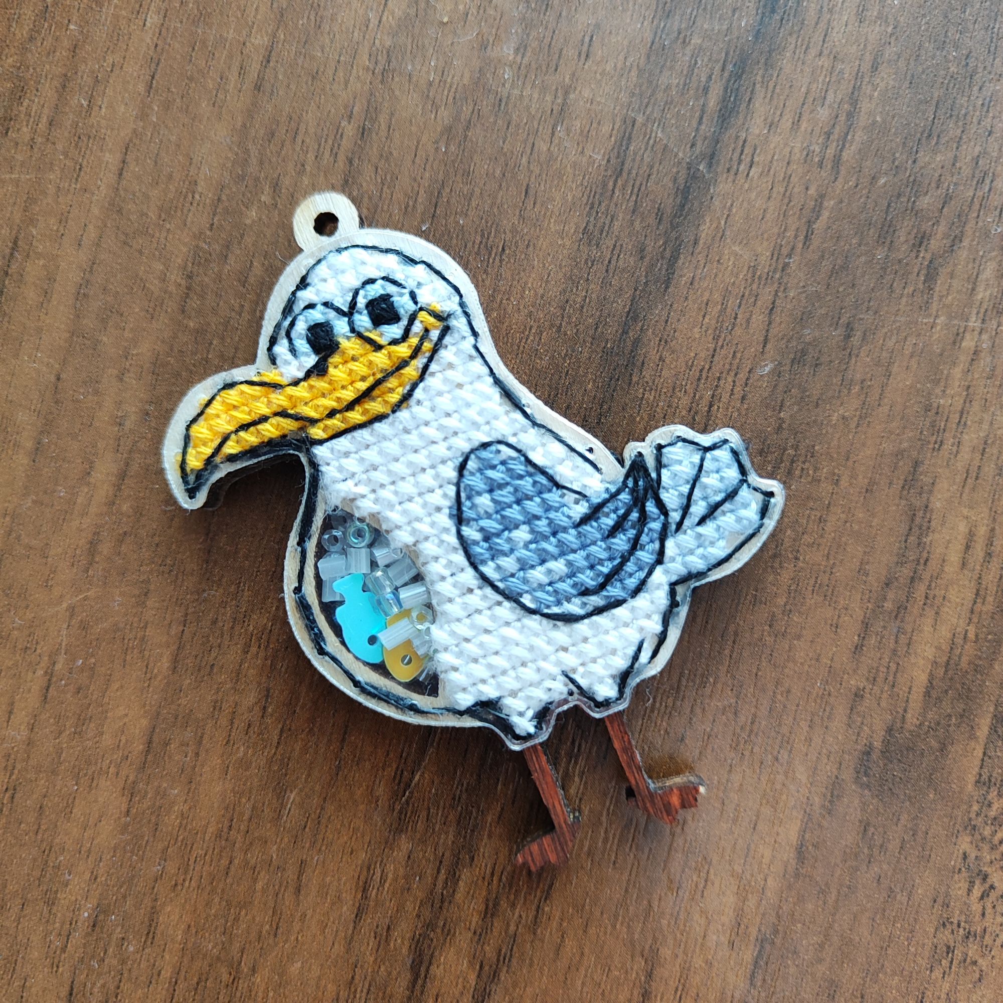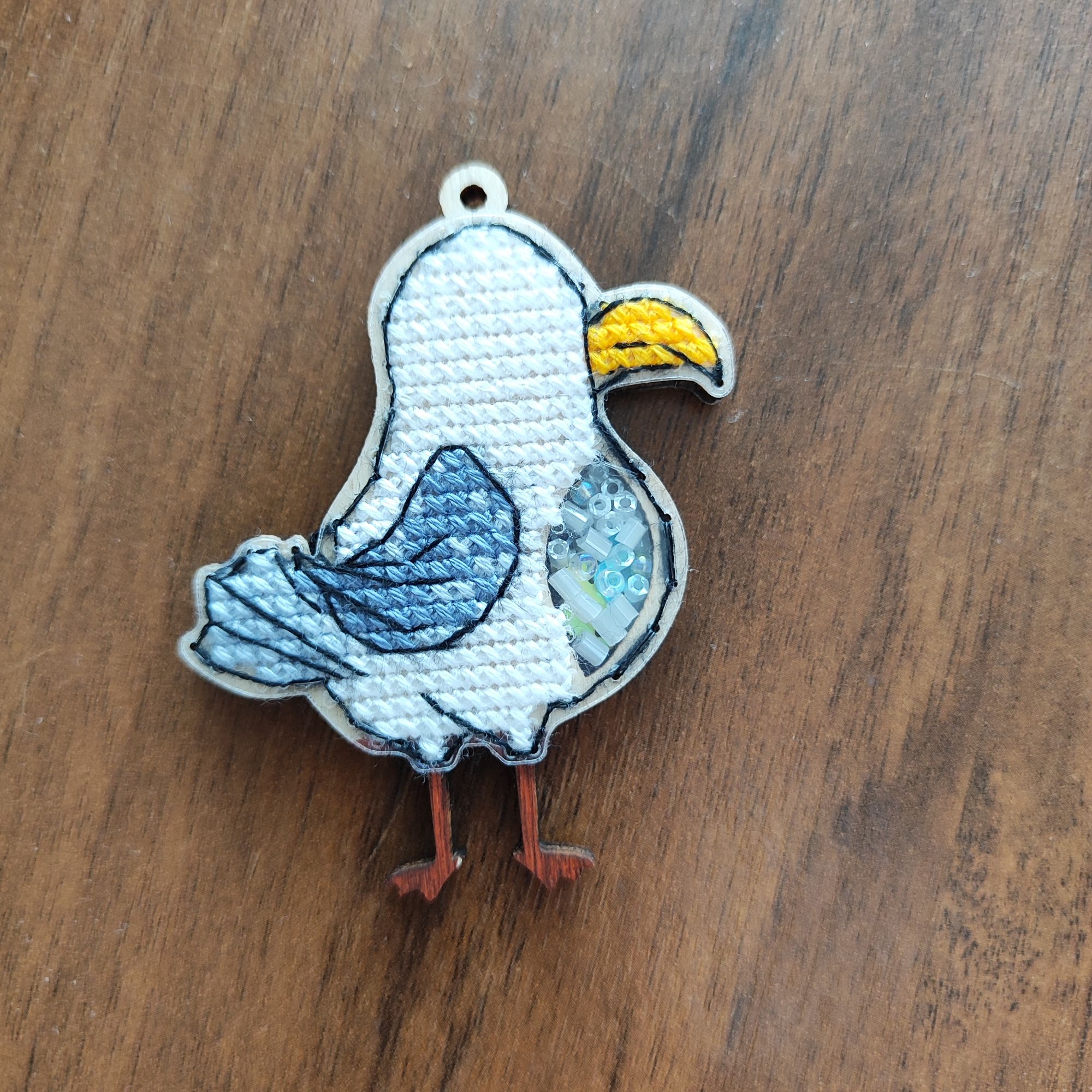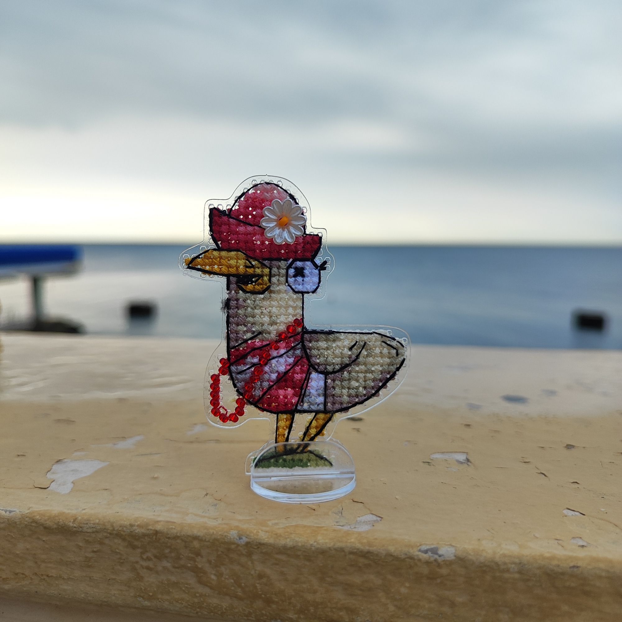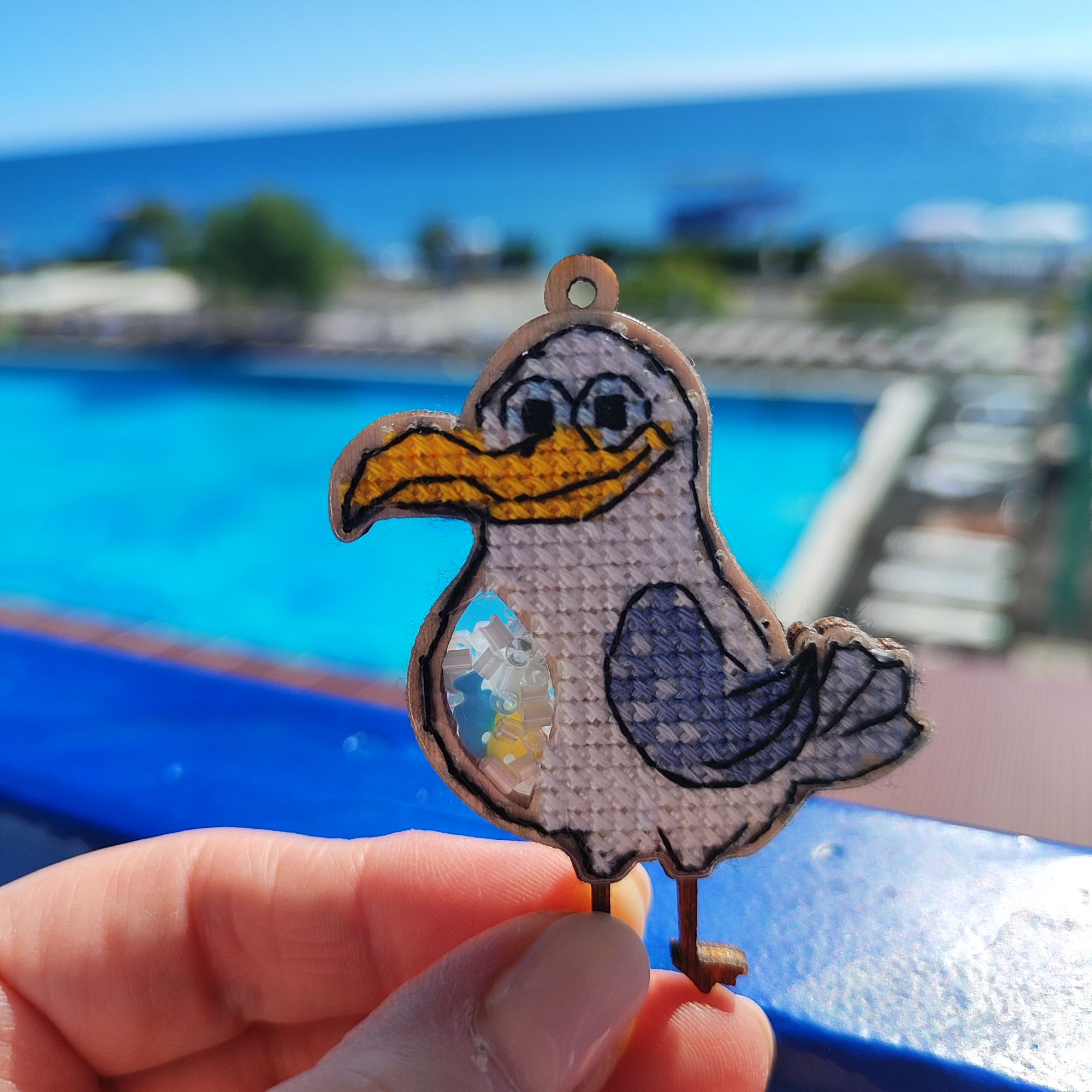 1 октября Готова ещё одна чайка (шейкер) , от Ольги Романовой. Хоть и небольшая, но с ней пришлось повозиться. Не хватило белых ниток (позаимствовала у Виолетты))). Для меня оказалась очень неудобной основа -тонкая, гнется, держать как-то сложно. Вышиваются две прозрачные половинки чайки, потом все это сшивается неким бутербродом - обе прозрачные вышитые части прикладываются к деревяшке и все это сшивается мононитью. Неудобно. В принципе это брелок, в наборе он есть, но я потом приделаю к чайке какой-нибудь подвес,брелок делать не буду. lamina-65, cozy_stitch, Фро-J и 14 других сказали спасибо Поделиться сообщением Ссылка на сообщение