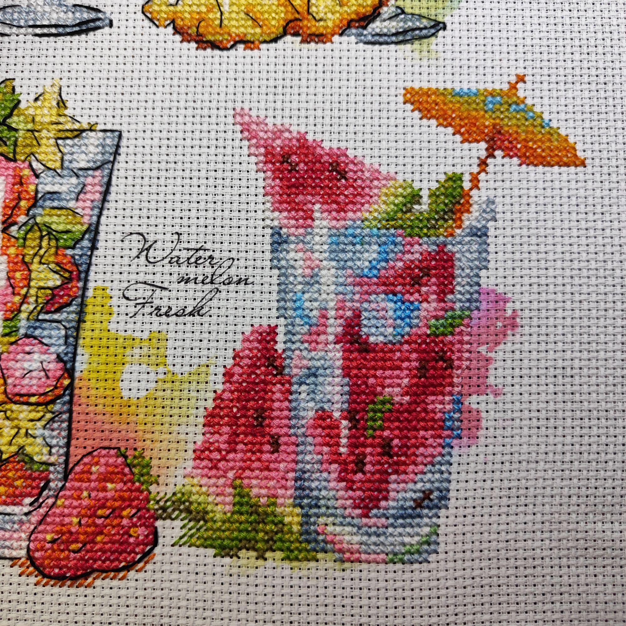 Четверг в 05:49 Остался последний коктейль, арбузное что-то там) очень классная в этом наборе канва, комфортная и для глаз, и тактильно. И запяливается хорошо, и не перекашивается, и нитки по ней скользят. Все настолько удобно и хорошо, что действительно садишься и хочется вышивать,не отрываясь. Хотя тут достаточно много намешано цветов и нет привычных для Риолиса больших цветовых пятен. Кстати, остался самый большой по размеру стакан) Гало4ка, AmbershoreTales, Alinia и 11 других сказали спасибо Поделиться сообщением Ссылка на сообщение