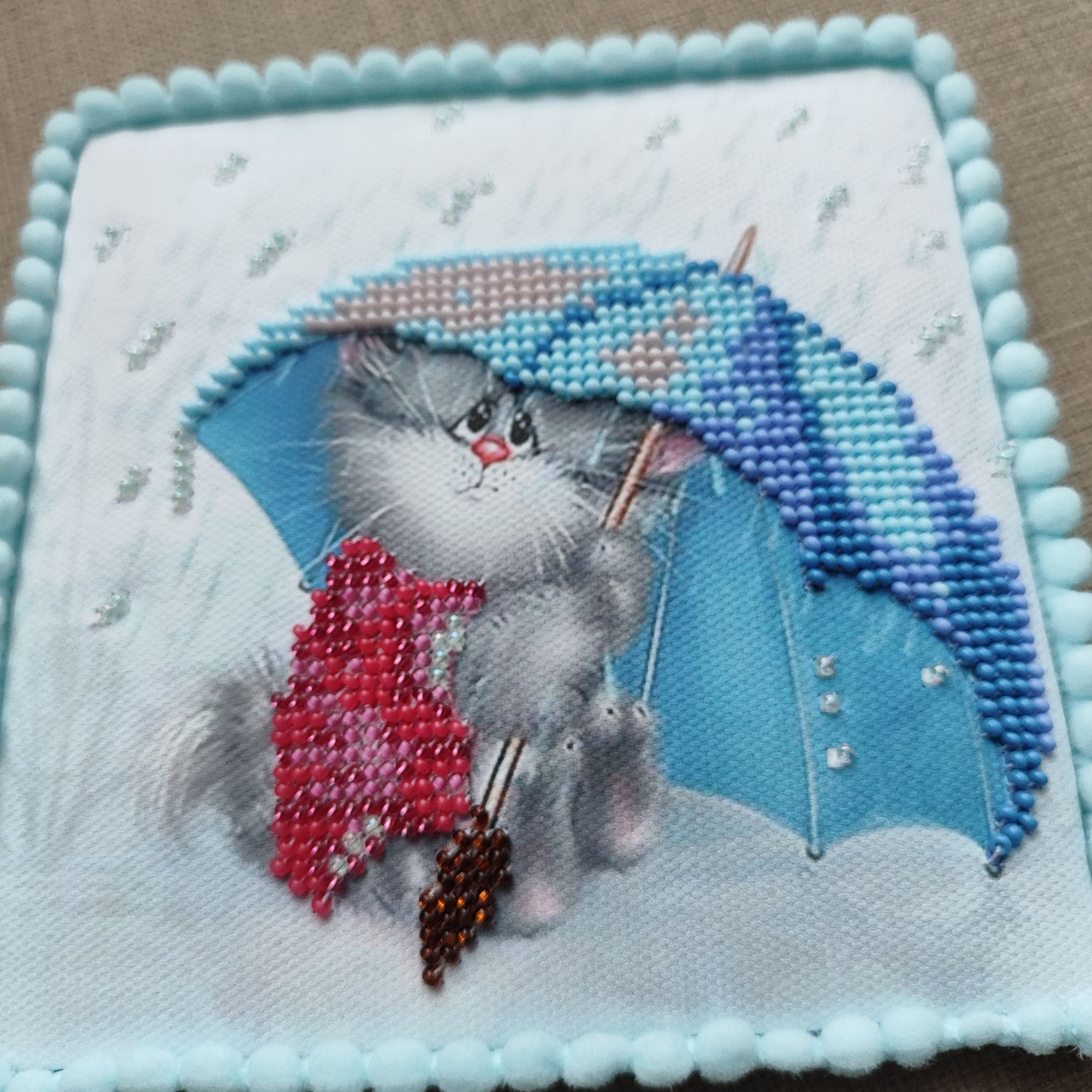 Воскресенье в 15:38 3 часа назад, eutamias сказал(а): С удовольствием возьмём тебя к себе, у нас очень здорово)) и работа, и коллектив! Теперь небольшая кучка готовых работ. Наконец-то доделала до конца Кларт, подсолнухи. Вышита роза, теперь надо довышивать пионы и доделать ещё пару пинкипов (квадратные делать теперь как раз плюнуть))))) очень нравится, как получилось, обожаю такие яркие цвета. Конечно, непонятно, куда эту мелочь применить,я решила, что положу их все в какую-нибудь плетёную корзинку , пусть радуют глаз. При поиске витого шнура для кота в бездонном пуфике обнаружилась вот такая вышитая хрень (извините, но по-другому никак не назову). Это была такая основа,на ощупь очень напоминающая плотную клеёнку))) вспомнила, что этот кусочек был вложен в какой-то набор как подарок,вышила я его бисером на глаз и убрала) из серии "жалко выкинуть", я же не могу выкинуть котика! Достало его и тоже решила сделать пинкип, отнесу на работу к моей галерее вышитых бабок. Задник здесь простейший, просто наклеила голубой фетр с рисунком. Вышло симпатично. Птичкам от Ершовой, наконец, приклеила задник) реально самое кропотливое занятие! Созреть на то, чтобы просто взять и приклеить фетр)))) Ну и котик. Шнур нужного размера и цвета я не нашла, поэтому оформила тем, который нашелся. В целом он перекликается с крейником, который есть в вышивке,поэтому оставила его. На самом деле здорово получилось, но самое страшное было его собрать аккуратно. Давно хотела его вышить , наконец-то он у меня есть. Ну и покажу коктейли, отличная работа, мне нравится. В такую погоду, как сейчас, все эти яркие вышивки поднимают настроение, хочется насладиться этими яркими нитками, сочными цветами, никак не могу ими "наесться". Света,кот обалденный и тебе браво за такую аккуратную сборку ,шнур идеально подходит ,бантик как вишенка на торте. Класс!!!!! Птички очаровательные... eutamias и Аленка-2 сказали спасибо Поделиться сообщением Ссылка на сообщение