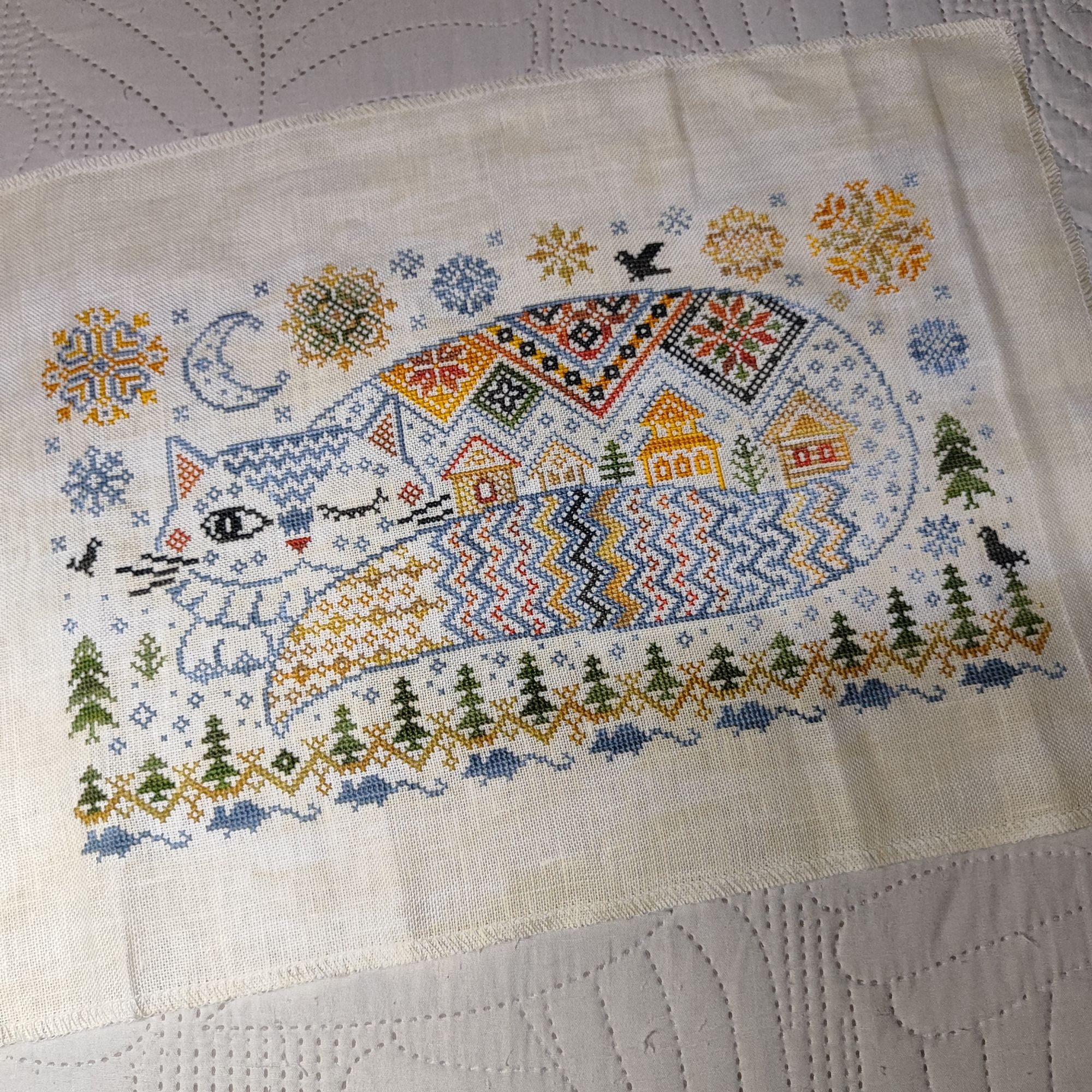 6 декабря Всем здравствуйте! Вот знаете, всё-таки авторская схема схеме рознь. Честно,опасалась браться за котенка, потому что он ведь тоже авторский,а в итоге за вечер вышивала без всяких проблем в районе 800 крестиков! Схема очень лёгкая, идёт хорошо, быстро, крестик цепляется за крестик и работа летит. Хороший бэк, хотя его и много, очень простой, поэтому я его сделала сразу. Довышивала Баюна. Это тоже очень красивая вживую работа, здесь кот как будто ажурный, до чего же мне нравится. Крестики не сплошняком, и смотрится очень нежно и воздушно. Фото отшива на коробочке вообще плоское))) основа тут плохо передается , здесь Белфаст с разводами, такой теплый бледный жёлтый , я уже что-то на подобной основе вышивала, вроде у меня маленький котик от ланарта на такой же основе вышит. В общем, от этого дизайна я в полном восторге, даже не знаю, почему. В галерею пока работу не выкладываю, хочу сфотографировать при дневном свете, чтобы было видно основу. Сейчас пока на неделе никаких новостей не будет, и вышивок тоже (наверное, с собой все равно беру маленькую работу )), уеду на несколько дней и приступлю к вышивке только в пятницу. Lakis, OlkaY, Nadinka-Blondinka и 16 других сказали спасибо Поделиться сообщением Ссылка на сообщение