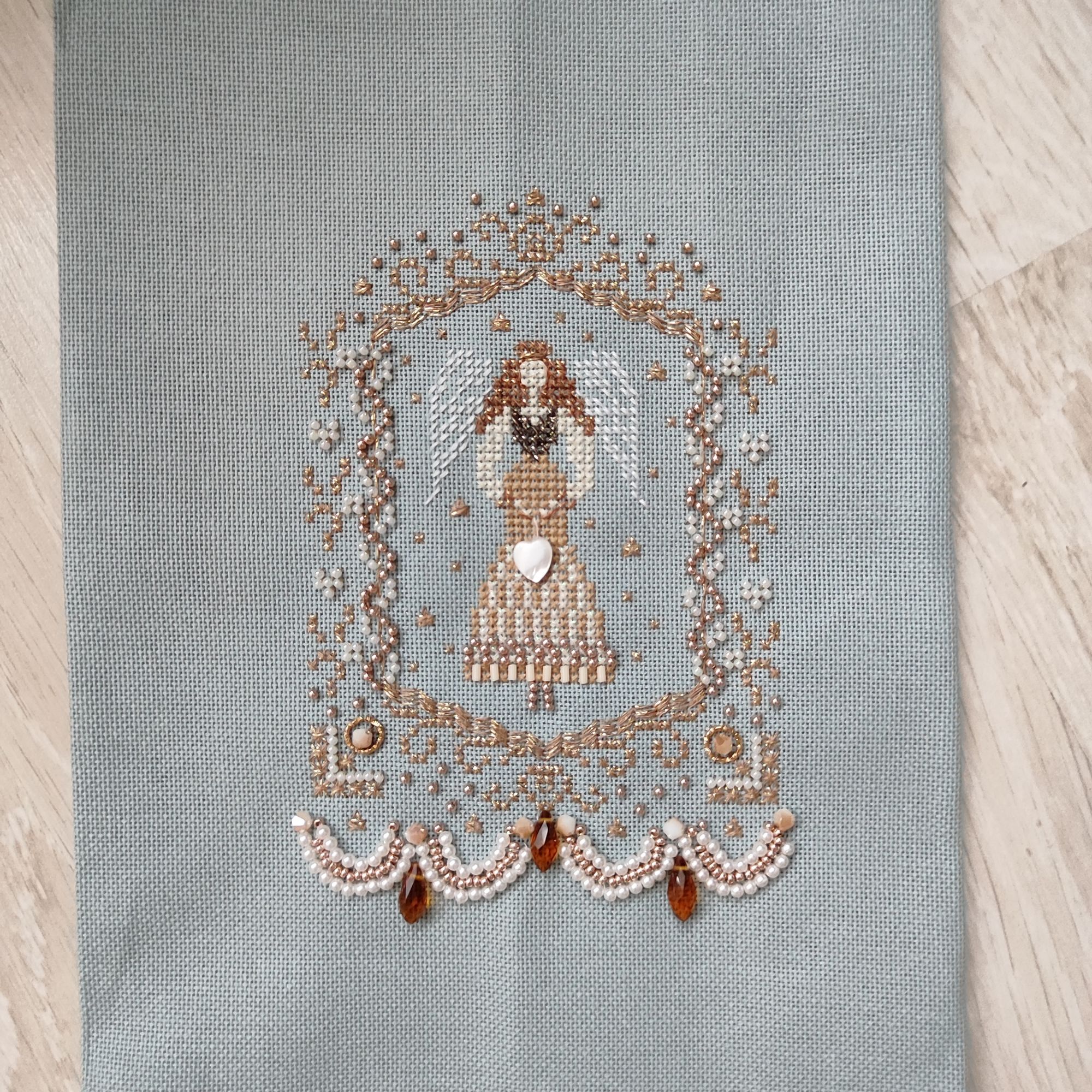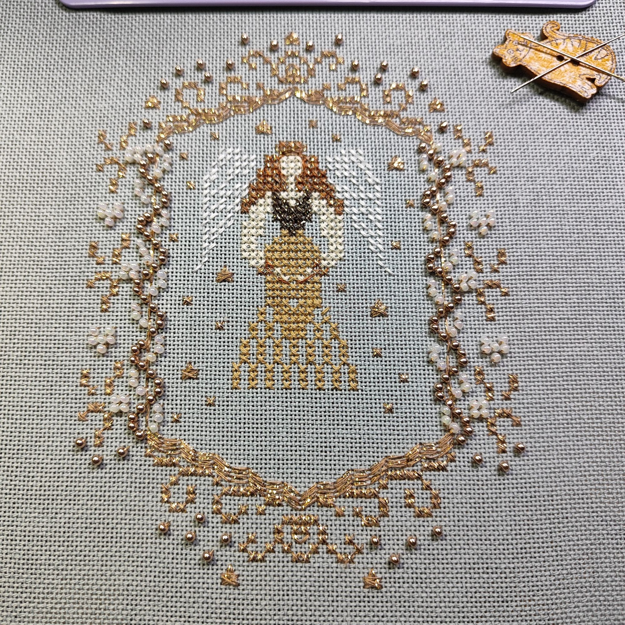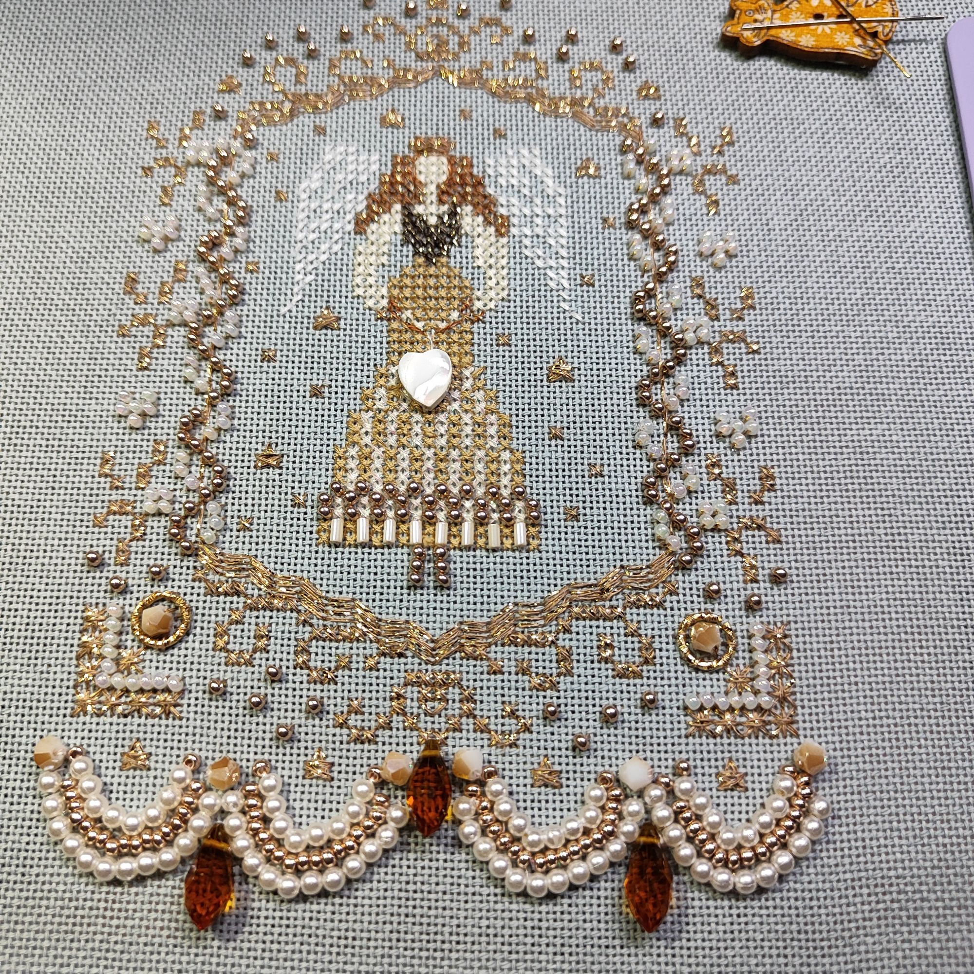 Воскресенье в 07:39 Я вчера как засела на вышивку очередного ангела, так и не смогла от него оторваться. Фото вообще не передают,насколько это красиво, ещё и основу перевирает. Единственное "но" - я так и не поняла, как выполнить нижнюю гирлянду плетением)))) пораскинула мозгами и решила просто нанизать бисер и бусины на нитку, а потом эту нитку прихватить, чтобы не болталась. Нашла ещё огреху в схеме, был пропущен значок с обозначением нитки, которой надо вышивать крылья. Насчёт плетения - в инструкции было написано,как нужно делать,но я что-то так и не поняла))))) фиг с ним, мне кажется,что и так очень хорошо получилось. Ниток,бусин и бисера осталась ещё куча целая. Планирую из этой вышивки сделать пинкип, надо только придумать, какой. 19199707770, rramil, Хозяйка смешных зверей и 5 других сказали спасибо Поделиться сообщением Ссылка на сообщение