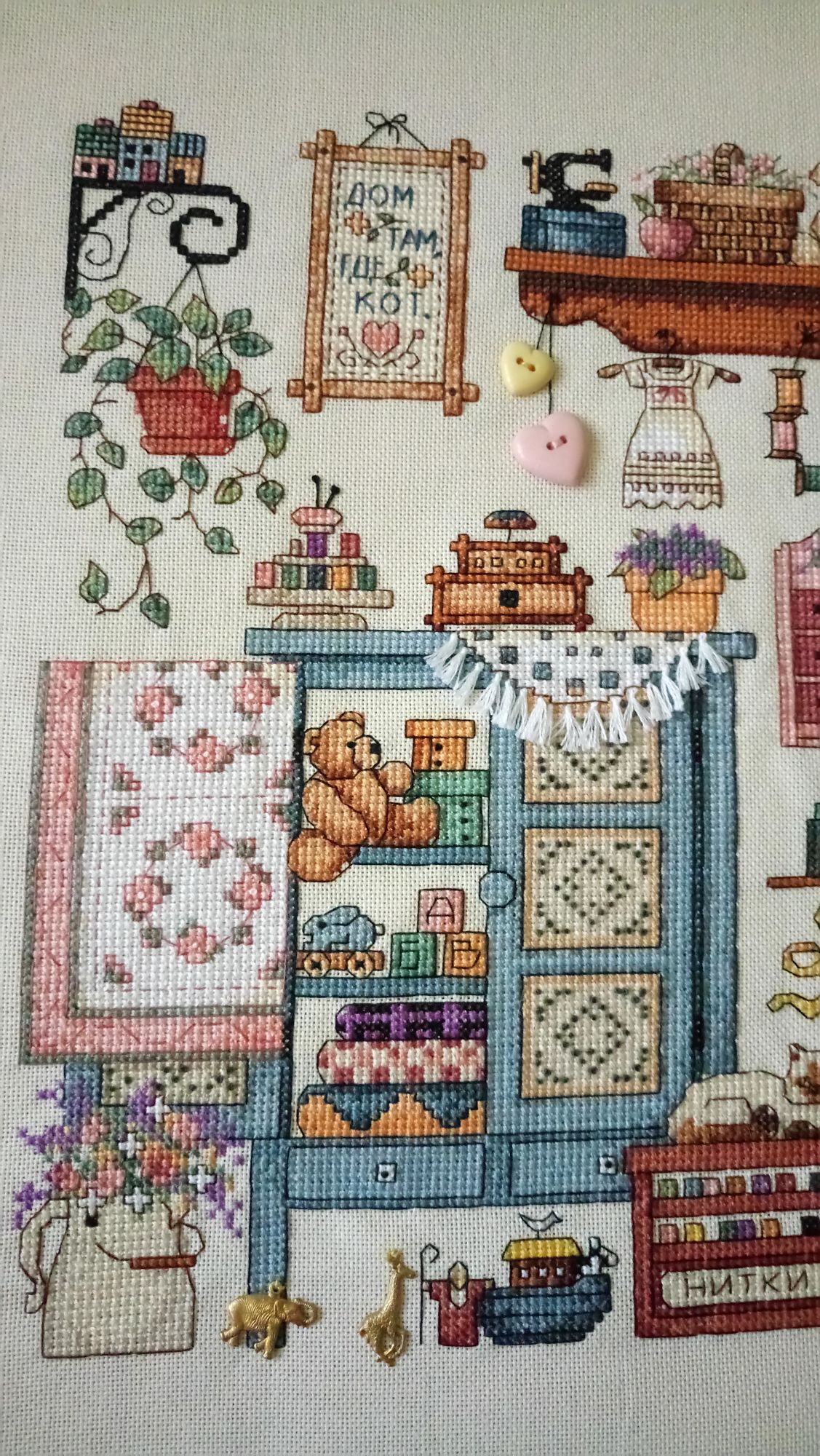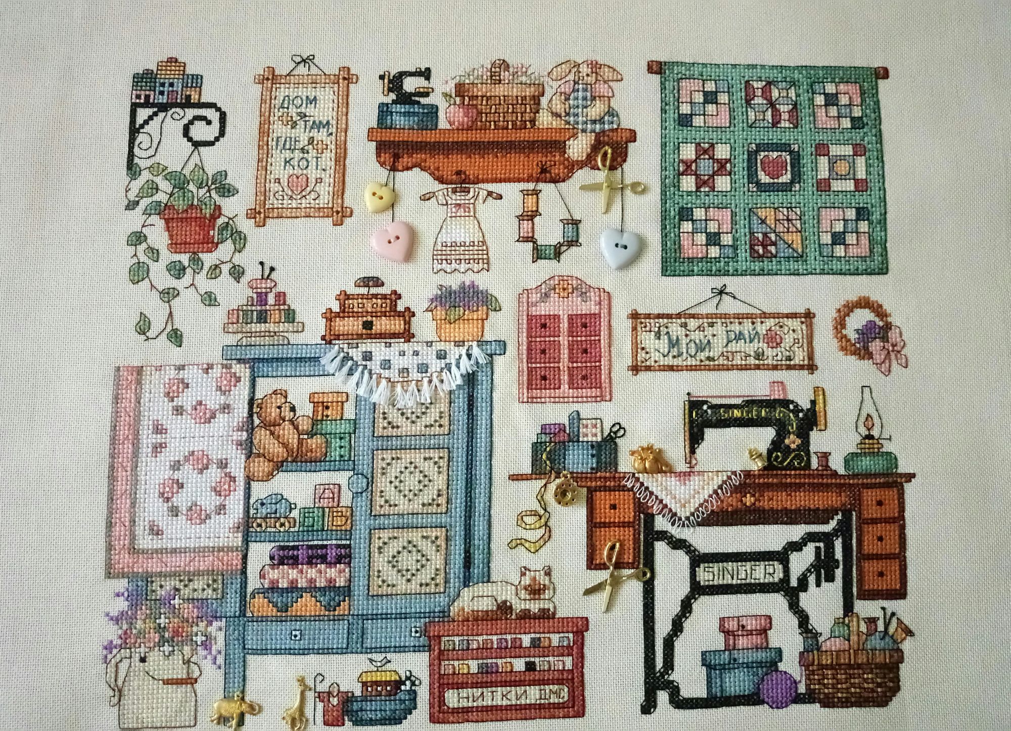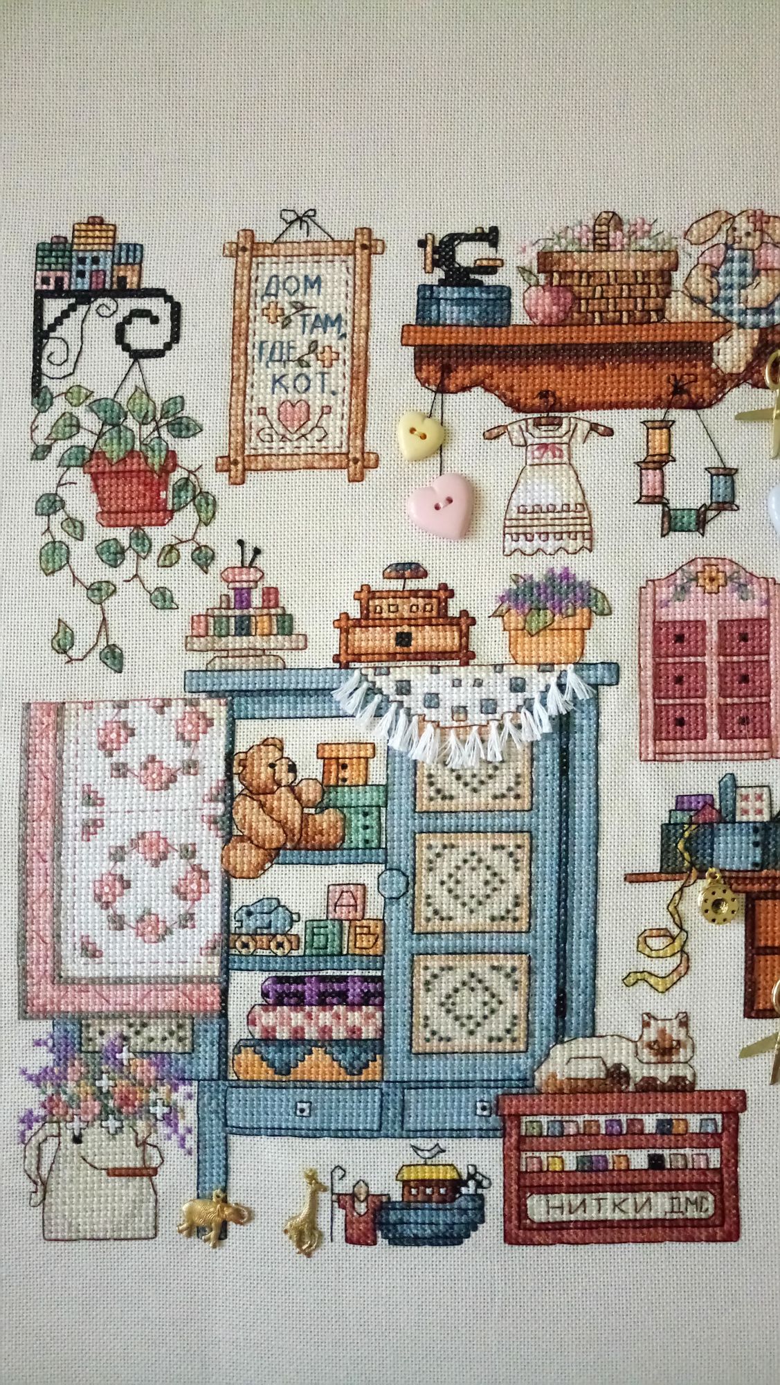 28 июля 2017 36 минут назад, Мультифрукт сказал: Светочка. зашла к тебе прямиком из Галереи, увидев комнату. Она чудесная! Прочитала твои последние новости. Ты держись там, не грусти, здоровья тебе. хорошо. что есть любимое хобби и семейная поддержка. Обидно. когда срываются планы, но это не последний отпуск. Новый процесс приятный и нежный, на Линде особенно красиво. Танюш, спасибо! Да. это не последний отпуск, конечно. Сейчас раздумываем над тем, чтобы хоть на недельку съездить куда-нибудь в октябре, дома все равно работа - кухня,уборка,стирка и так далее. И котики, правда) Которые изо всех сил стараются меня развлечь и полечить, как могут))) Только что, Raduga777 сказал: Именно так рай я себе и представляю! По крайней мере, на земле Света, восхитительная комната! Детальки можно рассматривать часами, и все равно будет хотеться вернуться в это уютное гнёздышко! Пусть твоя вышитая комната рукодельницы послужит для меня своеобразным волшебным пенделем, ведь и схема есть (без шармиков, правда, но их можно подобрать), а собраться и вышить не могу. Ох уж эта комнатка) Я надписи там тоже поменяла с буржуйских на наши, как смогла, не хочу на их языке писать)) Шармики и правда можно без труда подобрать к этой схеме, и пуговки тоже - необязательно такие же, как на обложке, сейчас столько всего продается, можно даже побольше и покрасивее найти. А тут самое главное - начать ! и еще - не бросать на полпути)))) apanjul, Фро-J, lvvoron и 5 других сказали спасибо Поделиться сообщением Ссылка на сообщение