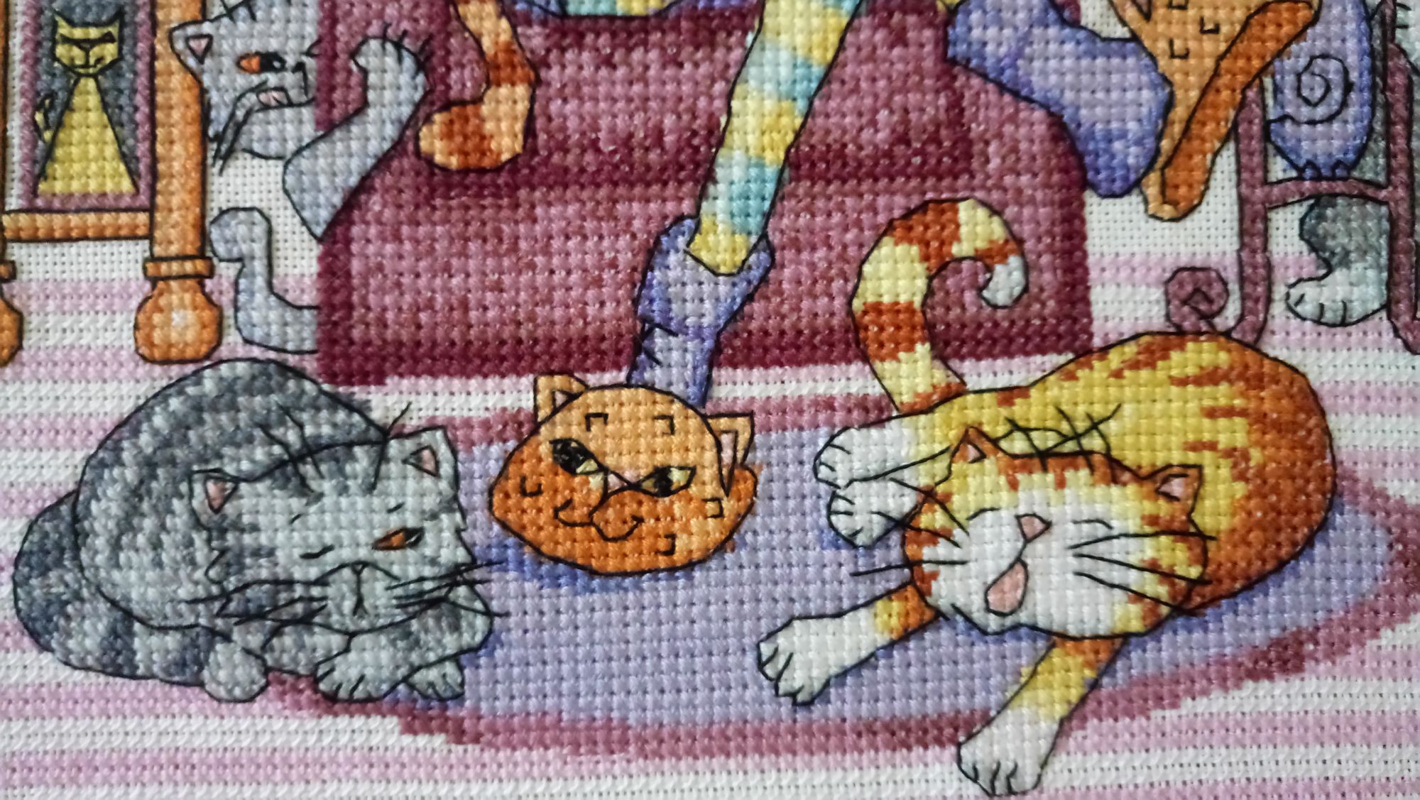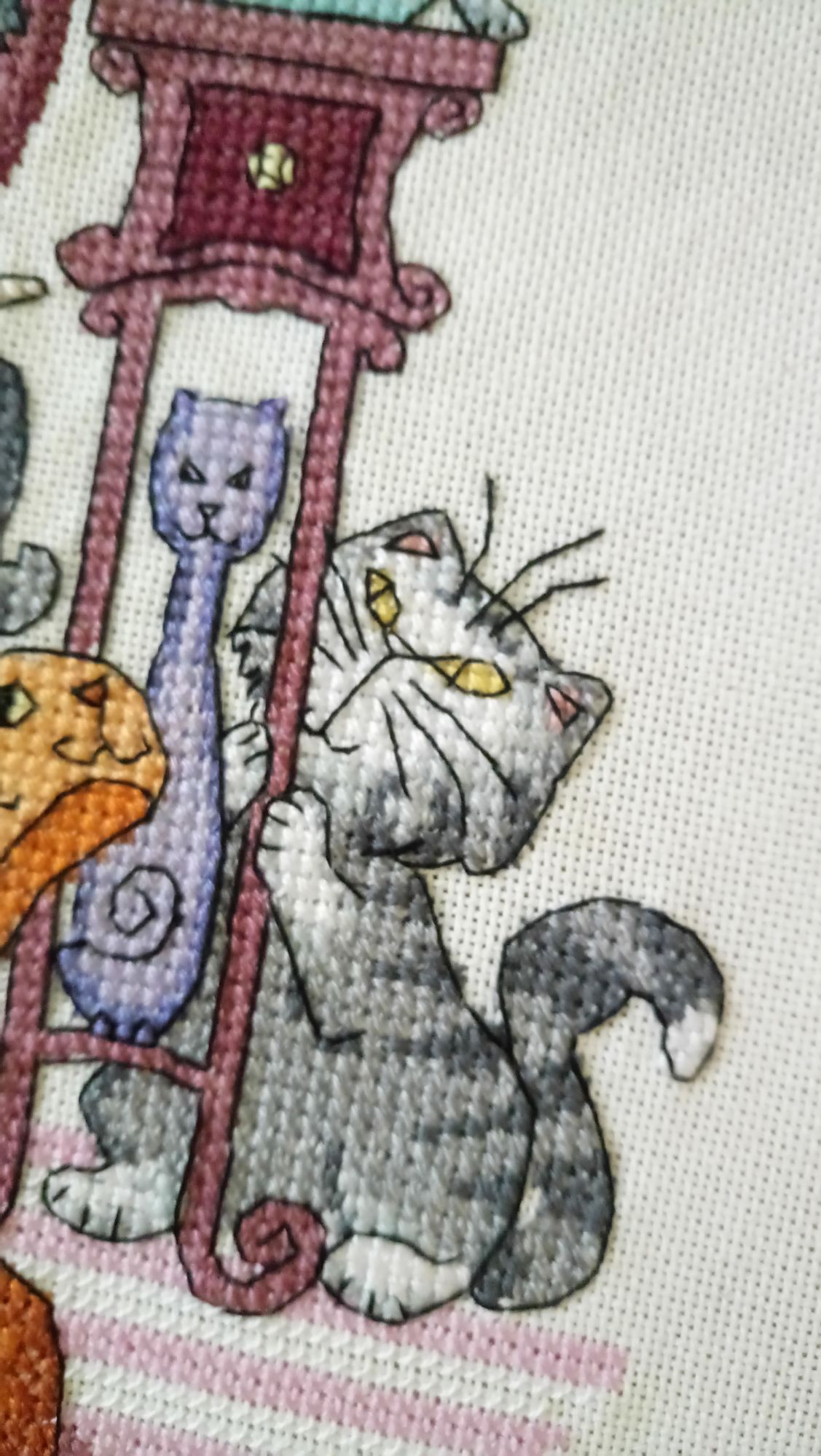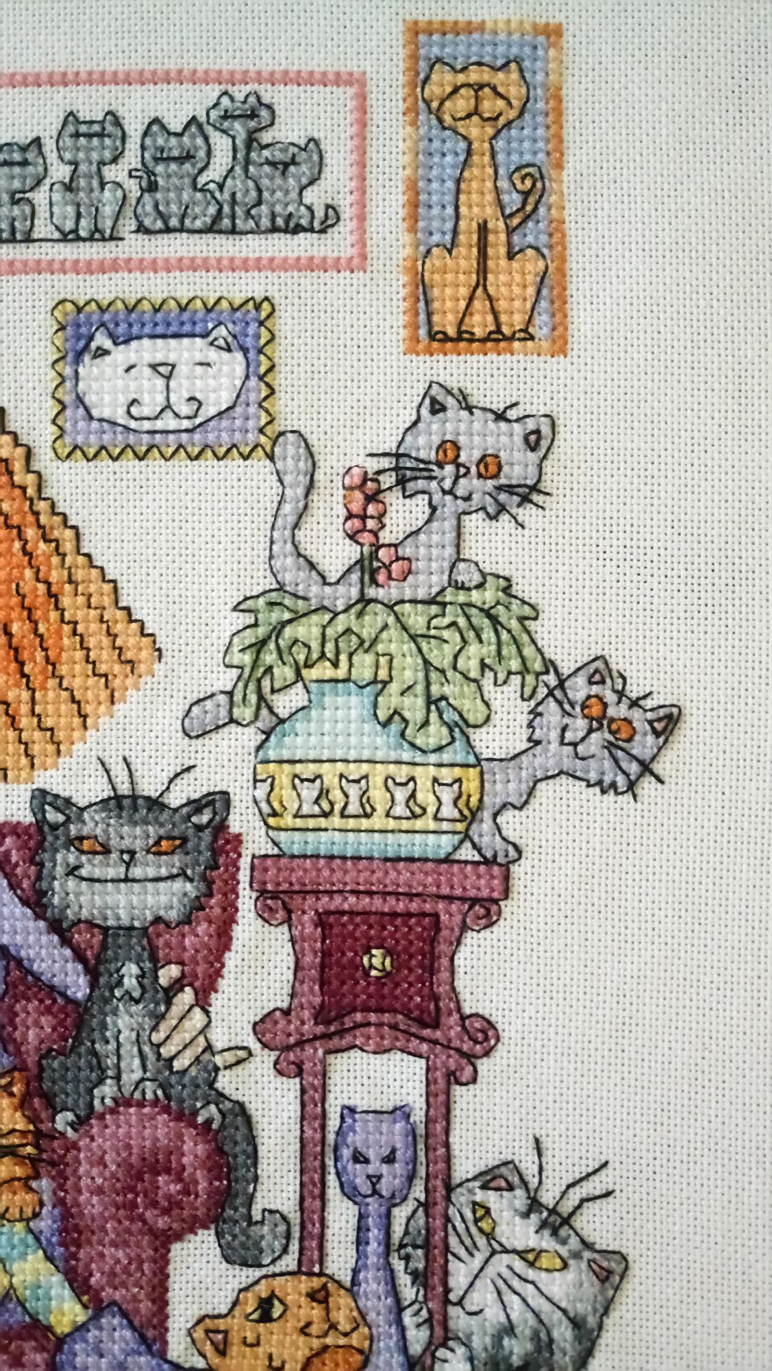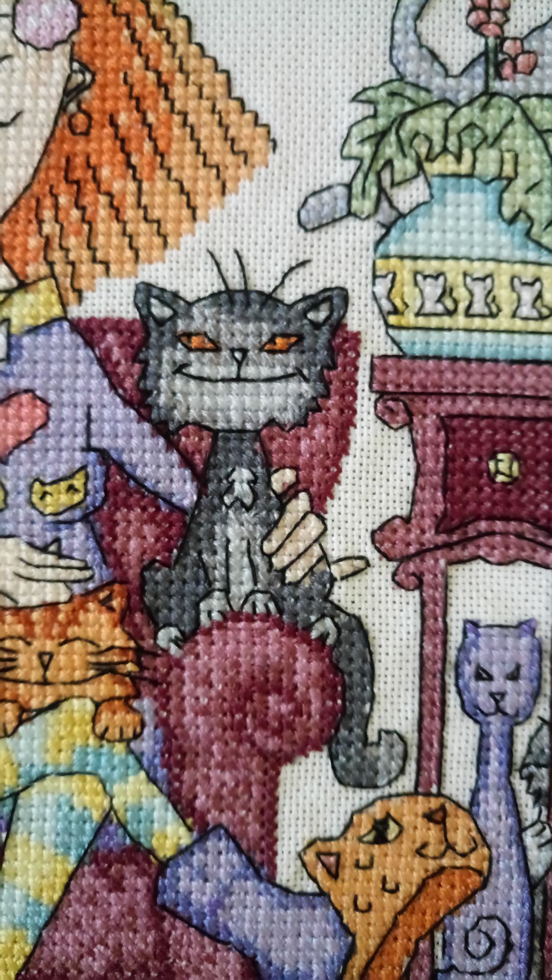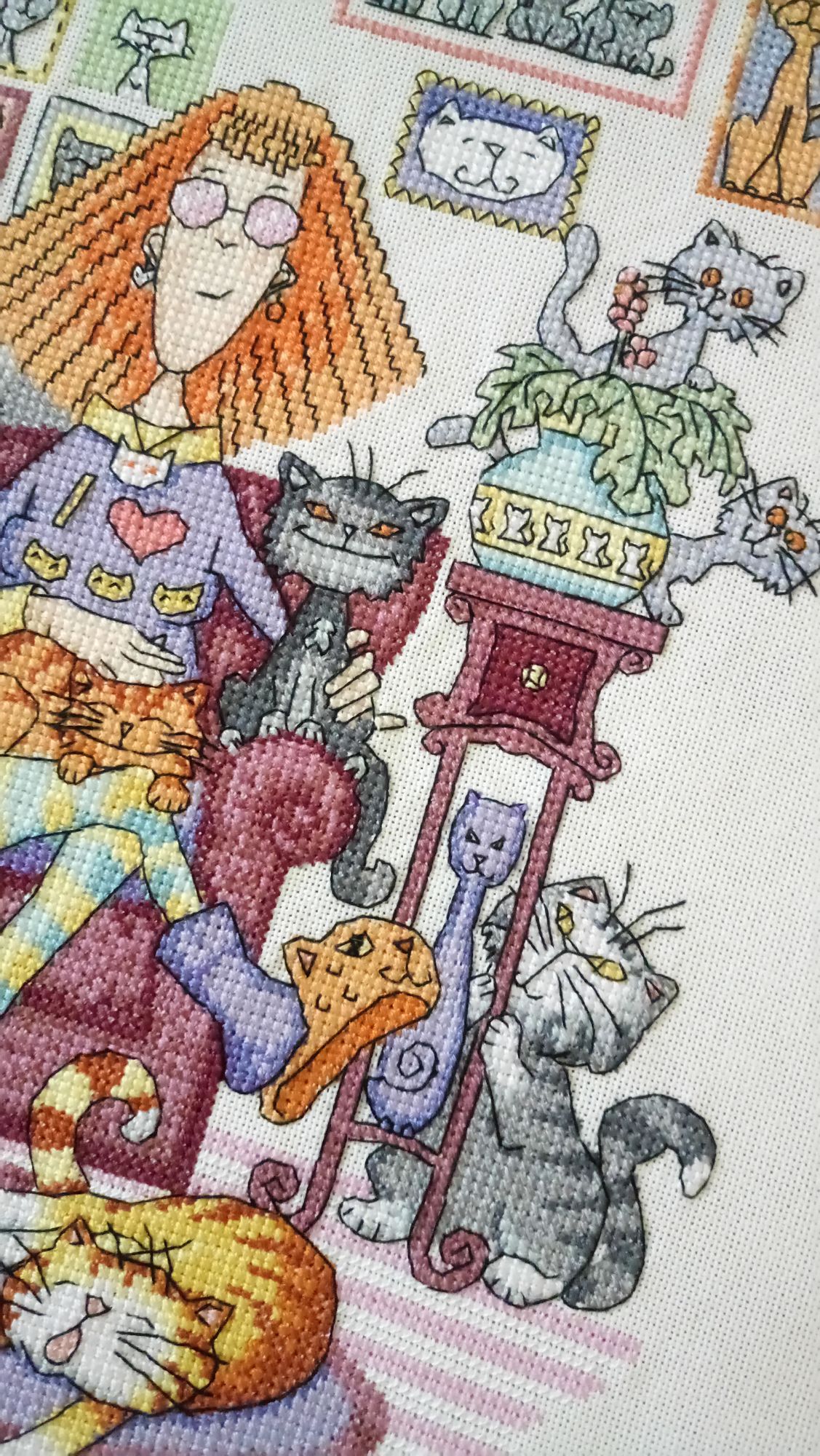 4 февраля 2018 Девочки, наконец Кошатница готова! Надпись вышивать не стала, я по традиции не вышиваю надписи на буржуйском языке, а тут и так все ясно, без всяких надписей. Количество котиков на квадратный сантиметр здесь зашкаливает! Здесь и котики, которые спят, и котики, которые за другими наблюдают, и коты, которые дерут любимое кресло))) В работе очень много (читай, до фига, по-другому не скажешь) четвертинок, просто море. Бэка тоже столько же. Если кто-то будет вышивать подобный сюжет, то только равномерка, иначе можно застрелиться. Сразу причём. От недокрестиков, а потом уже от бэка. У меня, был не набор, я покупала нитки, сверяясь с ключом и надо сказать, что в ключе заявлено ниток с большим запасом, у меня много осталось. Можно вышивать и ее экономить, даже чёрного цвета ушло гораздо меньше, чем было заявлено. Работа сама не сложная, но из-за отсутствия полукреста и присутствия четвертинок и бэка вышивалась почти месяц, так что лучше запастись терпением))) Selinta, rolihka, komarik-na-sharike и 32 других сказали спасибо Поделиться сообщением Ссылка на сообщение
