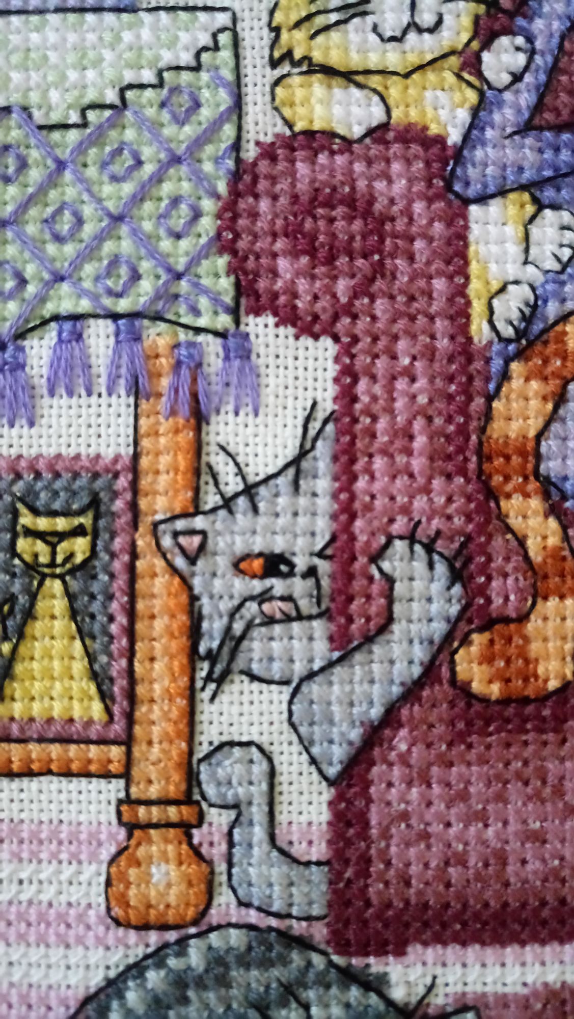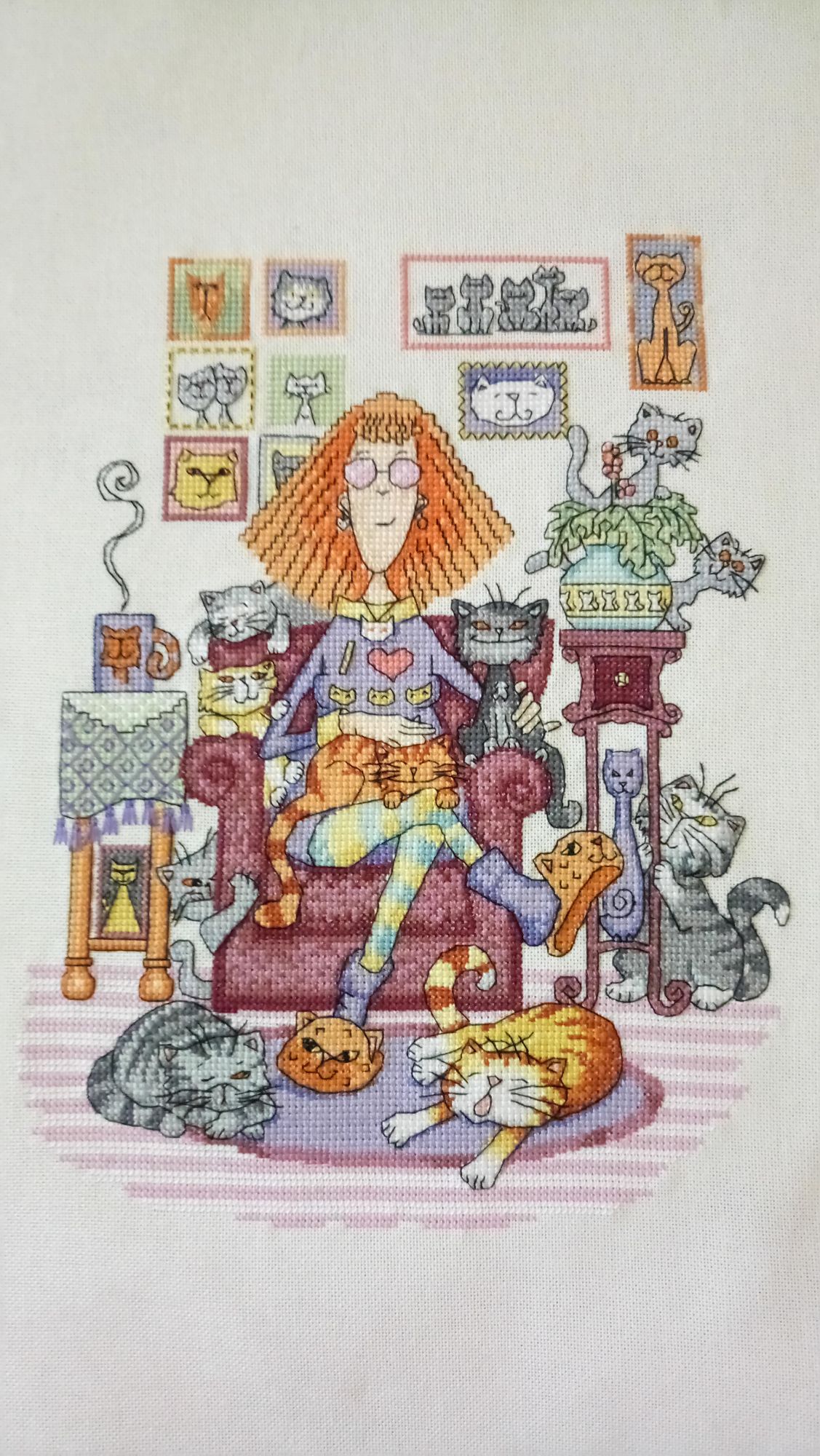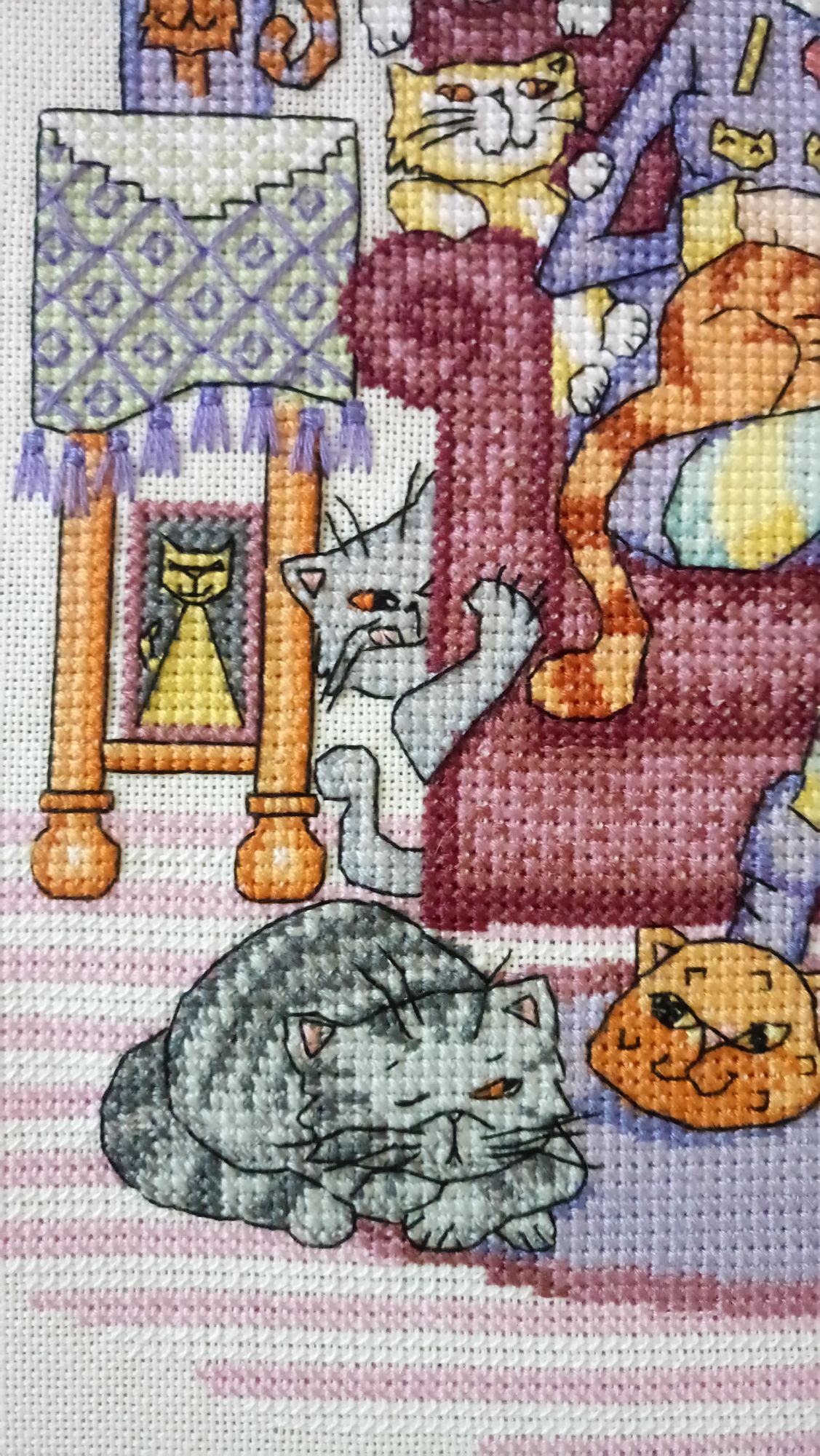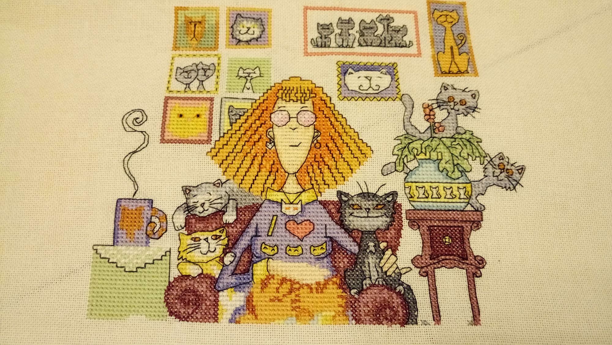 4 февраля 2018 Девочки, наконец Кошатница готова! Надпись вышивать не стала, я по традиции не вышиваю надписи на буржуйском языке, а тут и так все ясно, без всяких надписей. Количество котиков на квадратный сантиметр здесь зашкаливает! Здесь и котики, которые спят, и котики, которые за другими наблюдают, и коты, которые дерут любимое кресло))) В работе очень много (читай, до фига, по-другому не скажешь) четвертинок, просто море. Бэка тоже столько же. Если кто-то будет вышивать подобный сюжет, то только равномерка, иначе можно застрелиться. Сразу причём. От недокрестиков, а потом уже от бэка. У меня, был не набор, я покупала нитки, сверяясь с ключом и надо сказать, что в ключе заявлено ниток с большим запасом, у меня много осталось. Можно вышивать и ее экономить, даже чёрного цвета ушло гораздо меньше, чем было заявлено. Работа сама не сложная, но из-за отсутствия полукреста и присутствия четвертинок и бэка вышивалась почти месяц, так что лучше запастись терпением))) Selinta, rolihka, komarik-na-sharike и 32 других сказали спасибо Поделиться сообщением Ссылка на сообщение