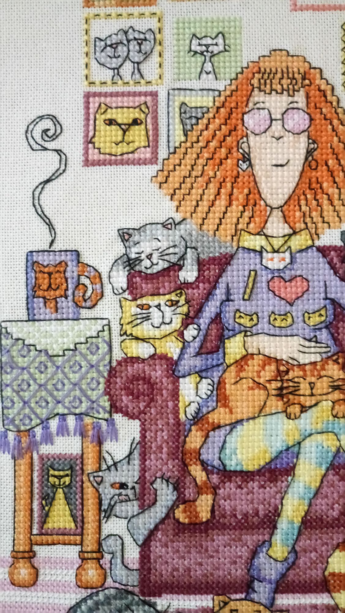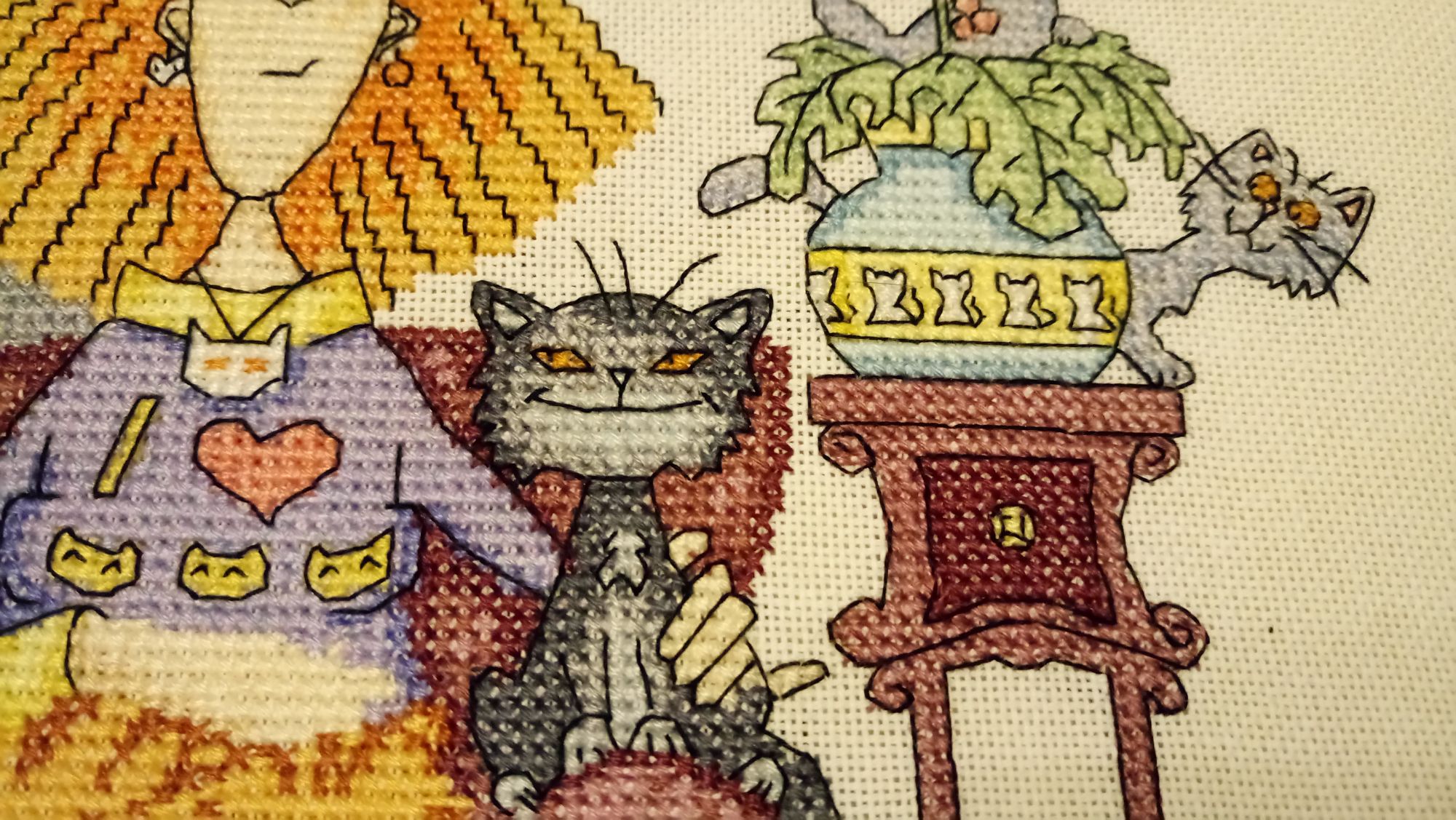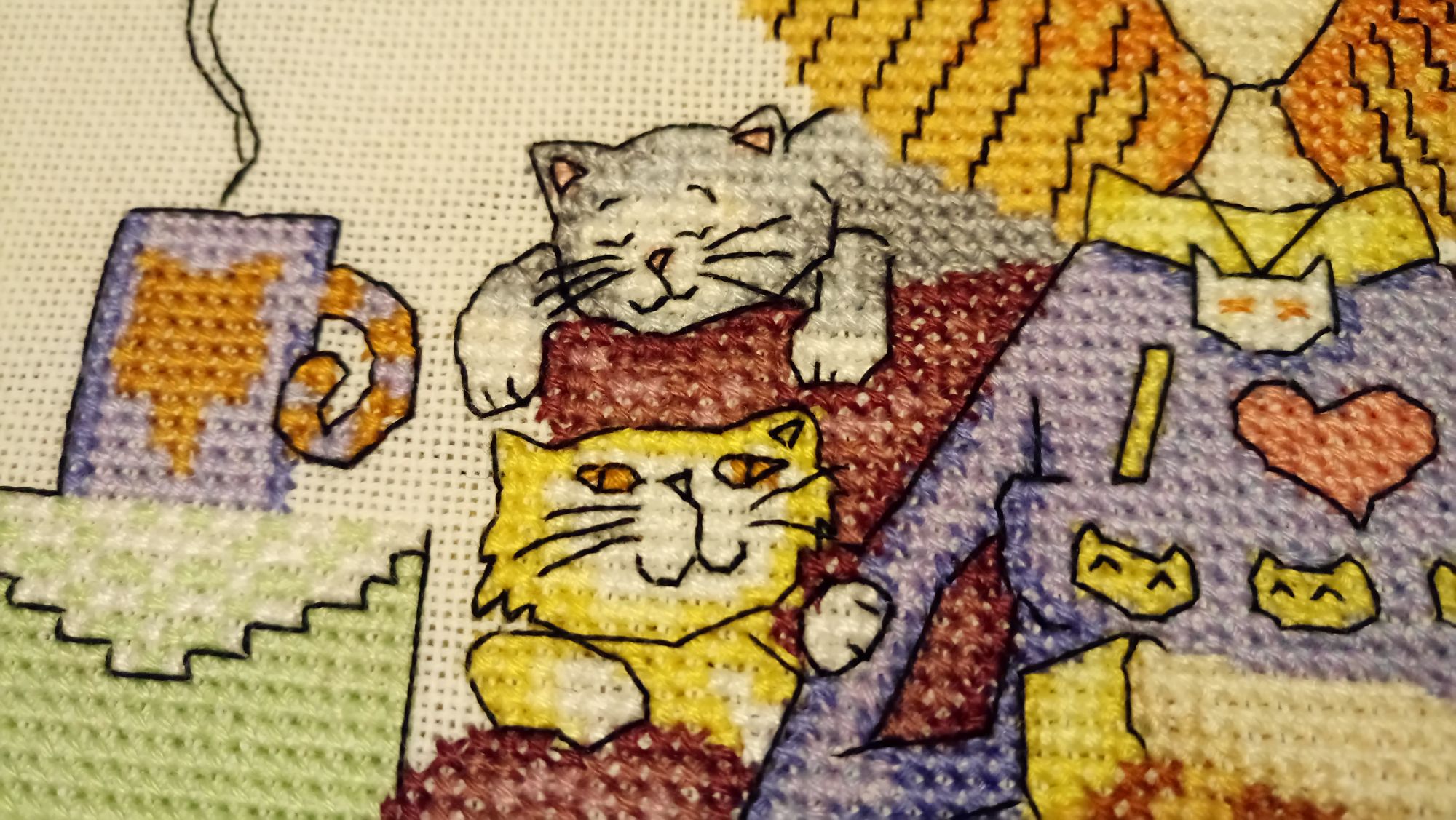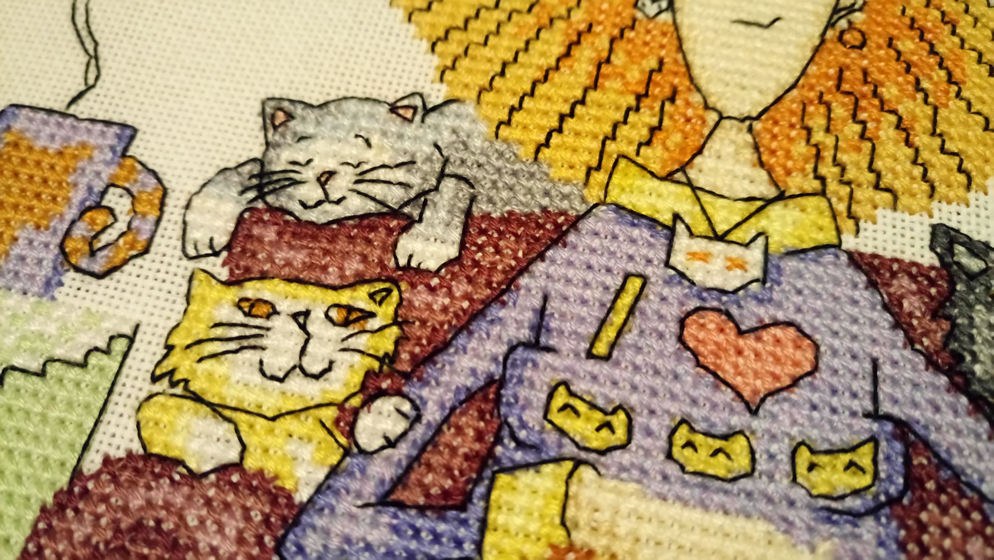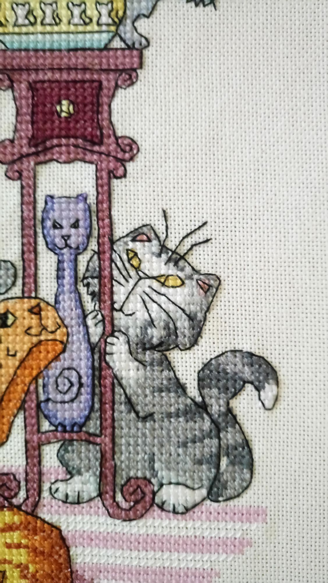 4 февраля 2018 Девочки, наконец Кошатница готова! Надпись вышивать не стала, я по традиции не вышиваю надписи на буржуйском языке, а тут и так все ясно, без всяких надписей. Количество котиков на квадратный сантиметр здесь зашкаливает! Здесь и котики, которые спят, и котики, которые за другими наблюдают, и коты, которые дерут любимое кресло))) В работе очень много (читай, до фига, по-другому не скажешь) четвертинок, просто море. Бэка тоже столько же. Если кто-то будет вышивать подобный сюжет, то только равномерка, иначе можно застрелиться. Сразу причём. От недокрестиков, а потом уже от бэка. У меня, был не набор, я покупала нитки, сверяясь с ключом и надо сказать, что в ключе заявлено ниток с большим запасом, у меня много осталось. Можно вышивать и ее экономить, даже чёрного цвета ушло гораздо меньше, чем было заявлено. Работа сама не сложная, но из-за отсутствия полукреста и присутствия четвертинок и бэка вышивалась почти месяц, так что лучше запастись терпением))) Selinta, rolihka, komarik-na-sharike и 32 других сказали спасибо Поделиться сообщением Ссылка на сообщение