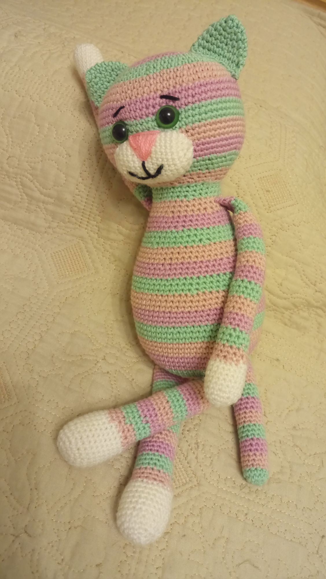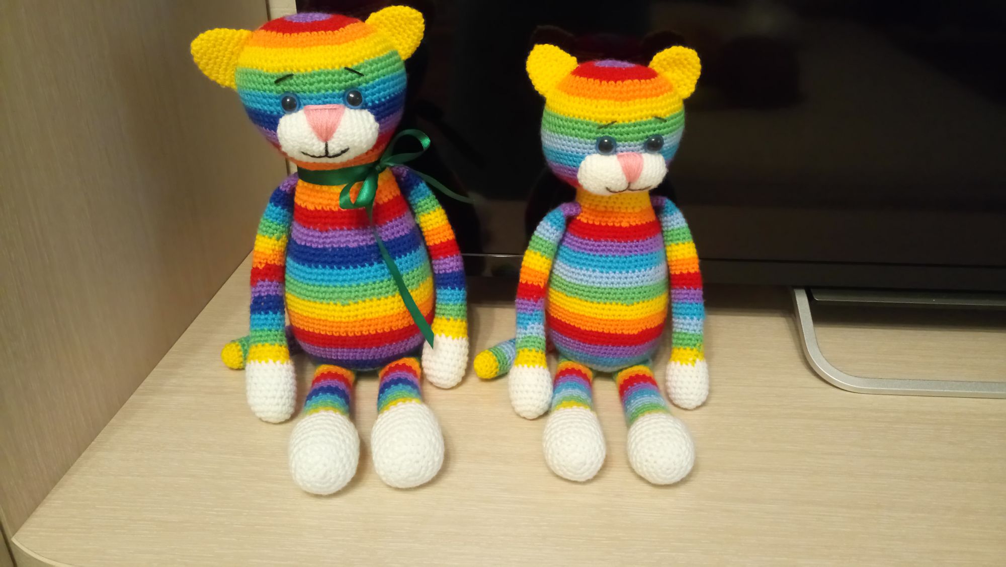 14 октября 2018 Связала ещё пару котиков в подарок. Фото а-ля художественне уже не сделать, за окном темно, старалась успеть к завтрашнему дню их собрать, розового пока не отдаю, он будет ждать нашу наволочку и поедет вместе с ней) а второго радужного завтра подарю, спешила собрать. Решила сразу обоих, а то потом не соберусь уже сама. Всегда мне сложнее все это дело собирать, чем вязать. Вот такая гоп-компания, и будет ещё один, тоже подруге, но в сине-голубой гамме. Пока отдохну от них))) Чивава, nogres, marvlase и 19 других сказали спасибо Поделиться сообщением Ссылка на сообщение