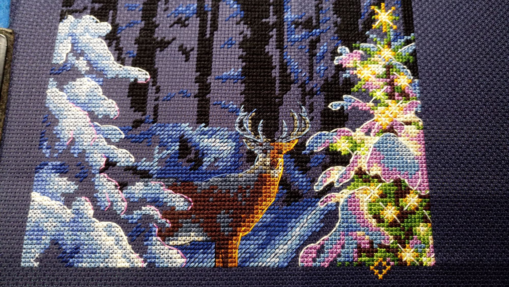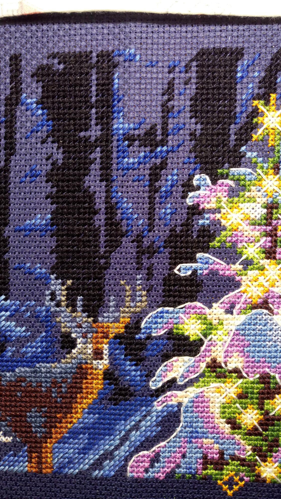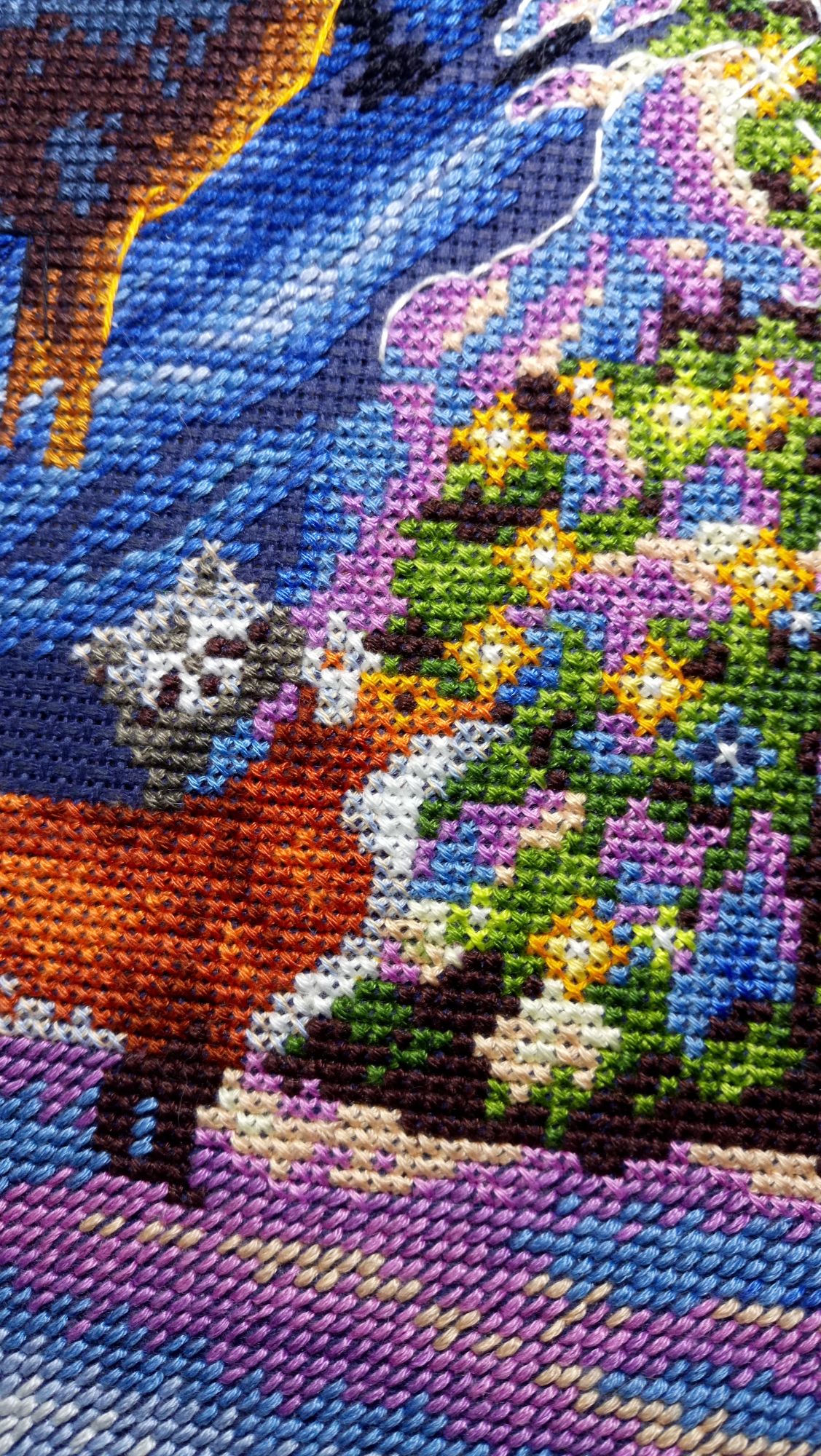 3 декабря 2018 Всем привет! Сижу себе на больничном, но вышиваю потихоньку - то разобраться в шкафу, то на балконе, то просто поваляться)) в общем, отдыхаю)) но за неделю вышила четверть картины, не спеша. Самое геморное (ну относительно, конечно). - это елка. В ней на мешали кучу всяких цветов, но она действительно получается светящейся! Олень без бэка здесь чуток смахивает на собаку, но это поправимо . Несмотря на тёмную канву, шьется очень комфортно. И несмотря на то, что здесь тоже нет котиков, картинка мне очень и очень нравится, прям новогодняя такая, зверики возле елочки собираются в круг))) Gala83, Пикусёнок, Пушистая и 29 других сказали спасибо Поделиться сообщением Ссылка на сообщение
