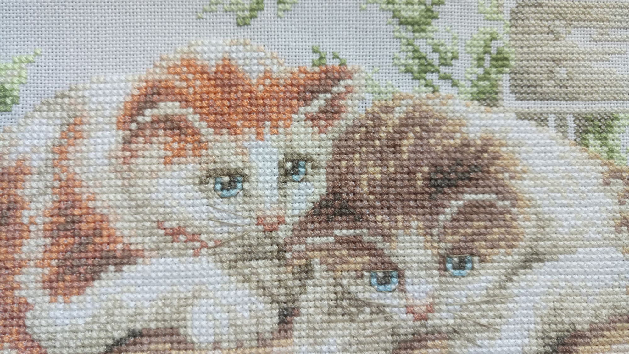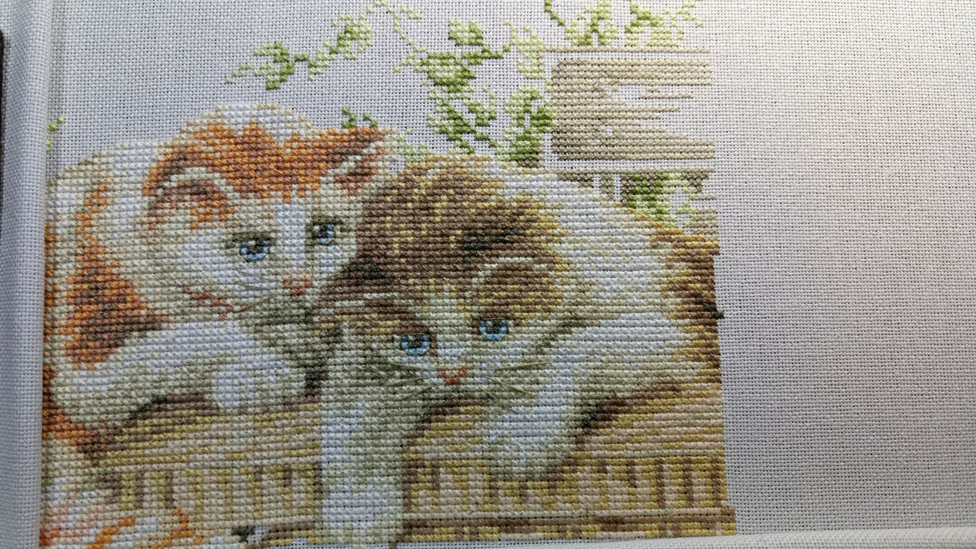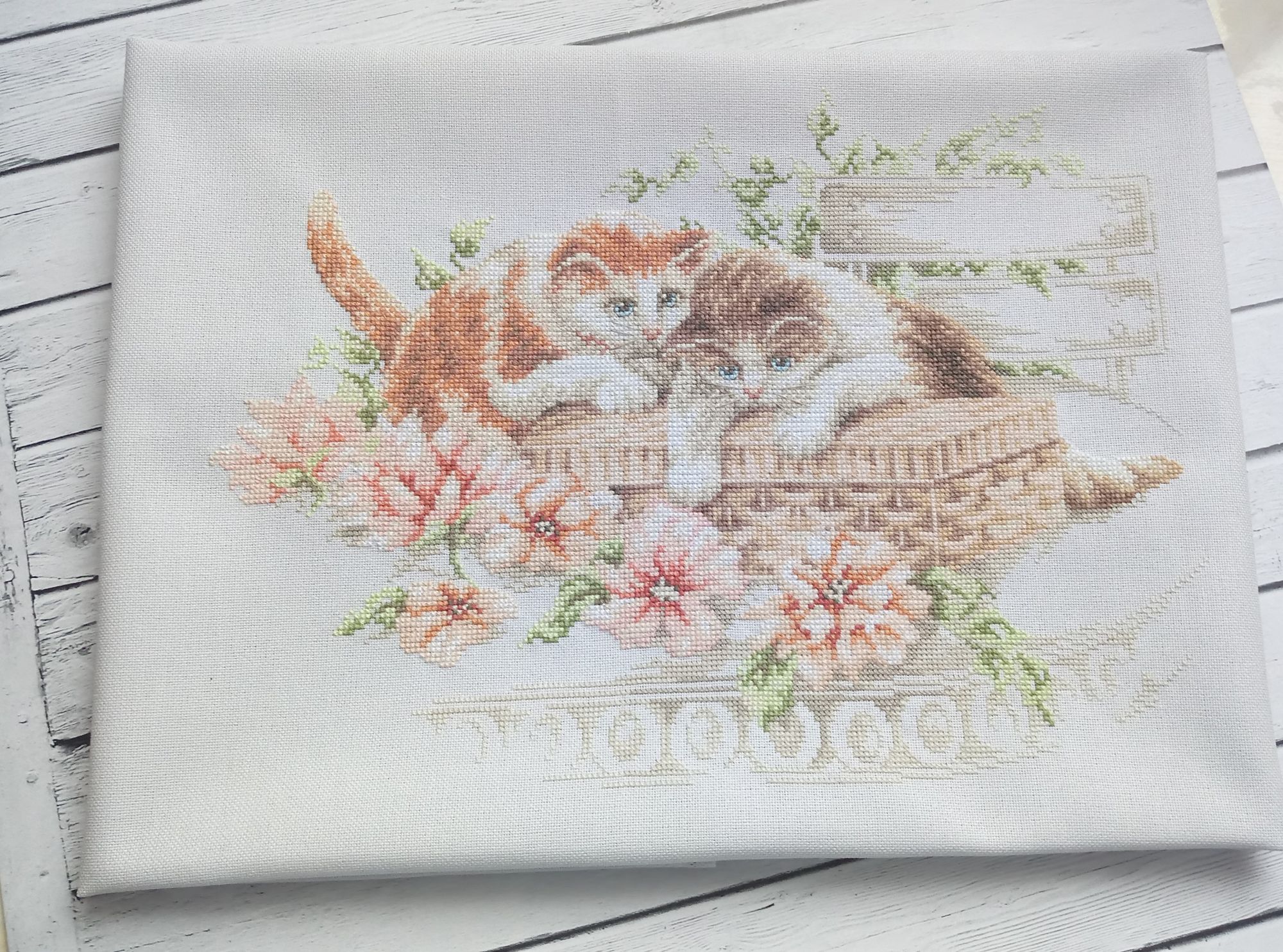 27 января 2019 Мои котики). Ланартик, конечно, не предполагает ярких цветов (по крайней мере, старый)). Цвета ниток настолько близкие по оттенку, что кажется - вышиваешь одной и той же блеклой ниткой. И топчешься на месте. Я думала, что сюжетик будет поменьше, а он стандартного размера, хоть и с неполной зашивкой. Остался один угол и все)) уже хочется каких-то ярких красок. Конечно, Ланартик все равно вне конкуренции, потому что картинка получается такая нежная, пастельная! Molly21, sunny981, Наталья2013 и 25 других сказали спасибо Поделиться сообщением Ссылка на сообщение