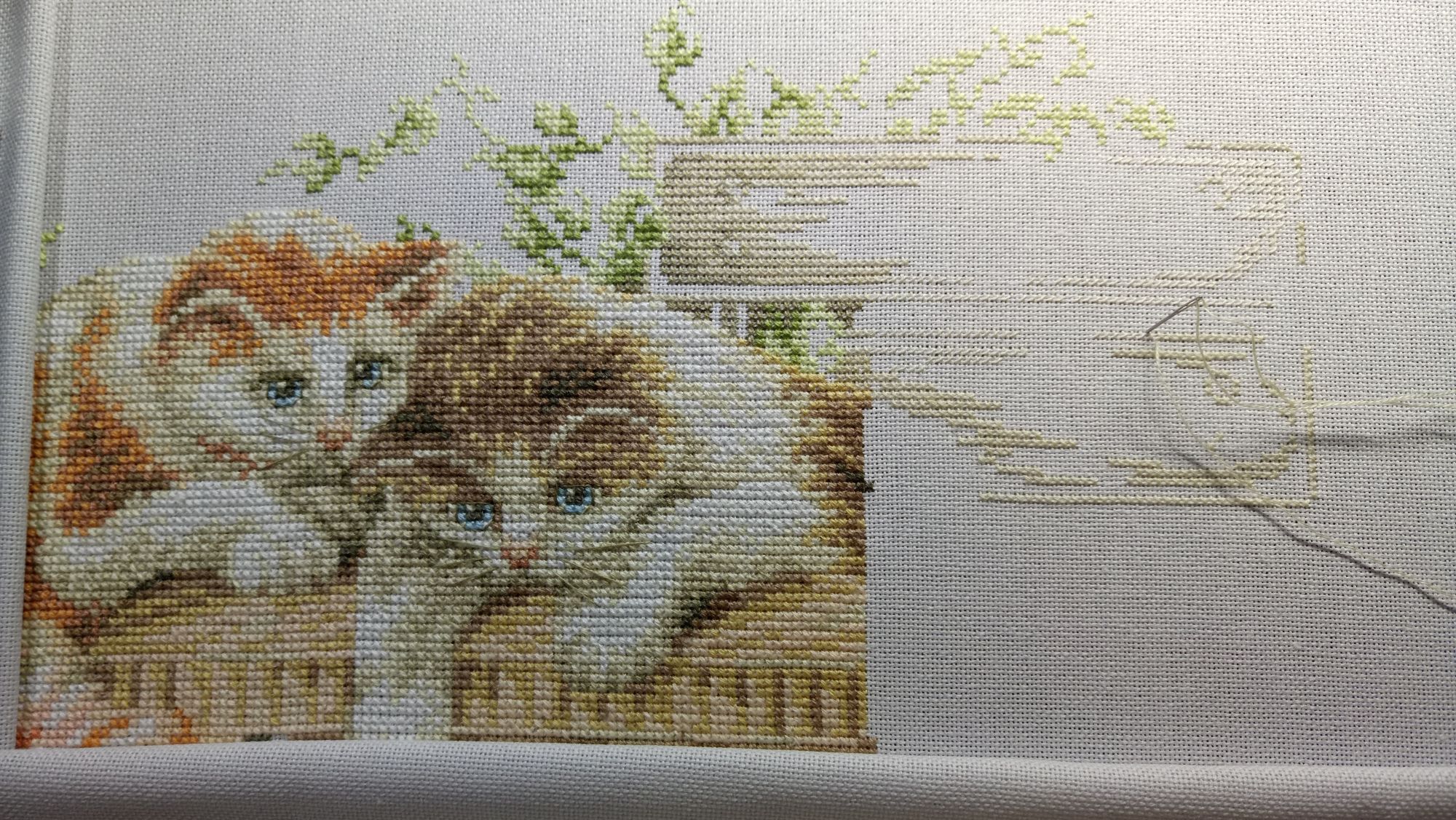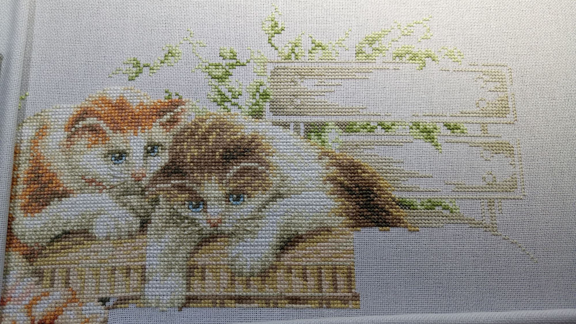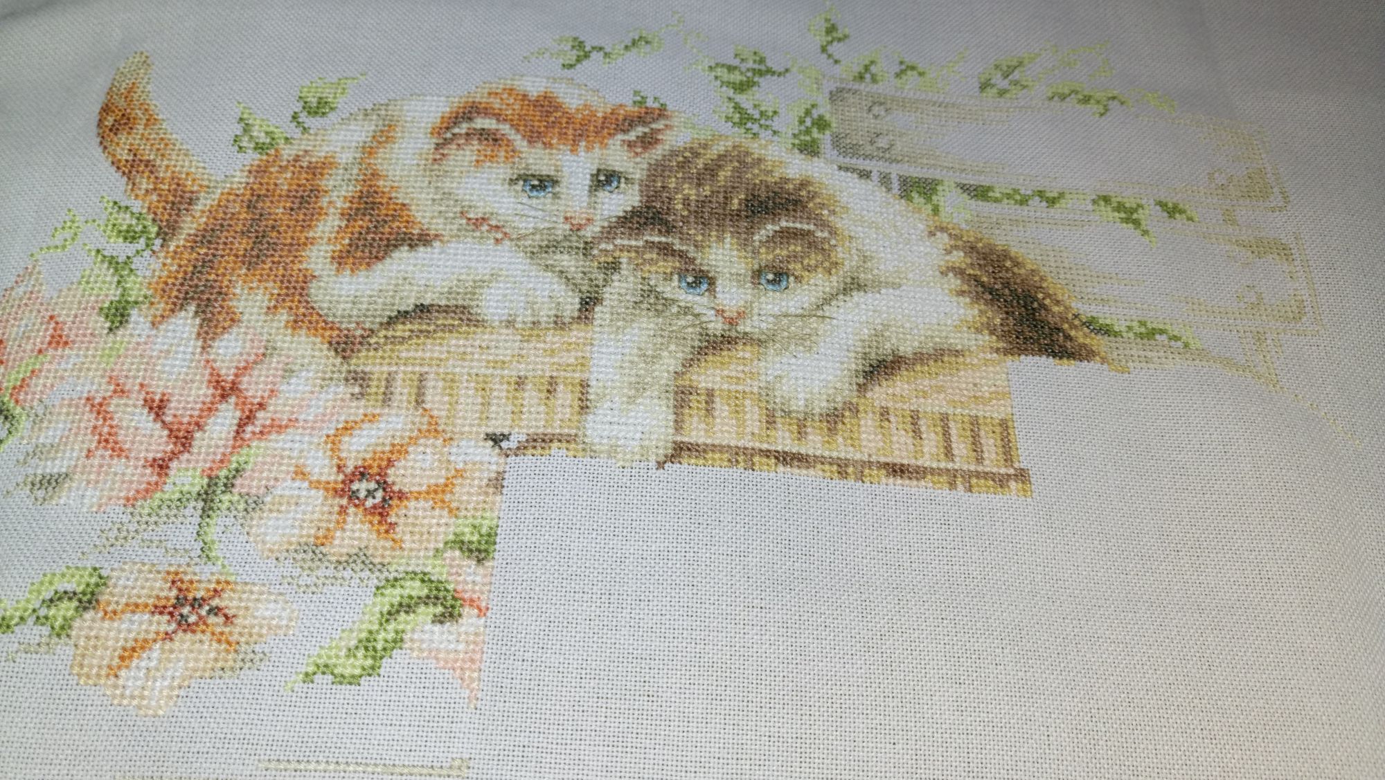 27 января 2019 Мои котики). Ланартик, конечно, не предполагает ярких цветов (по крайней мере, старый)). Цвета ниток настолько близкие по оттенку, что кажется - вышиваешь одной и той же блеклой ниткой. И топчешься на месте. Я думала, что сюжетик будет поменьше, а он стандартного размера, хоть и с неполной зашивкой. Остался один угол и все)) уже хочется каких-то ярких красок. Конечно, Ланартик все равно вне конкуренции, потому что картинка получается такая нежная, пастельная! Molly21, sunny981, Наталья2013 и 25 других сказали спасибо Поделиться сообщением Ссылка на сообщение