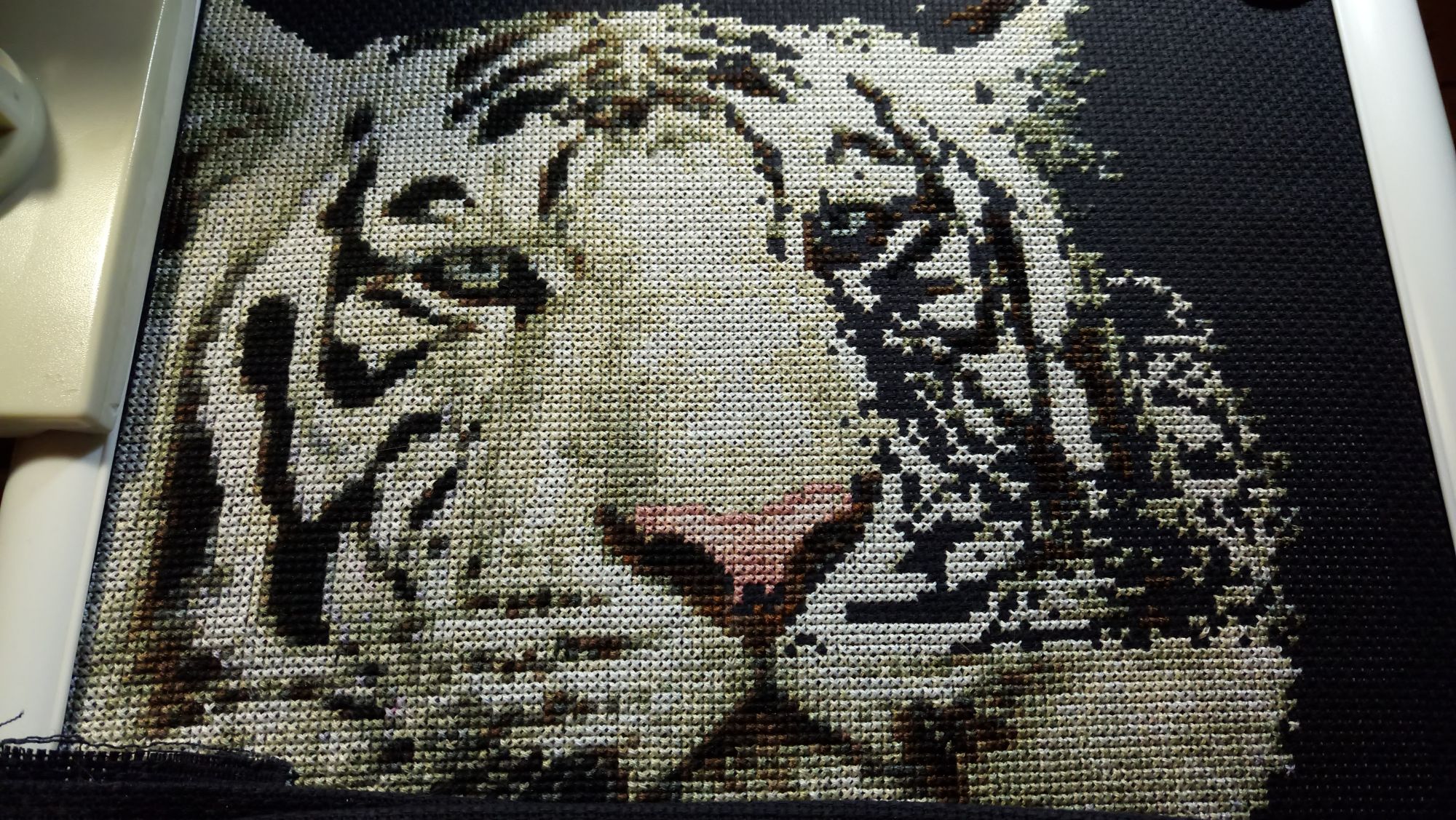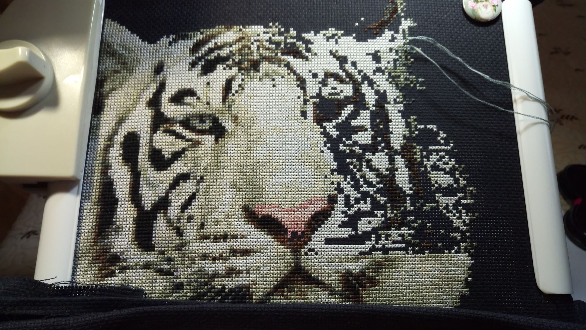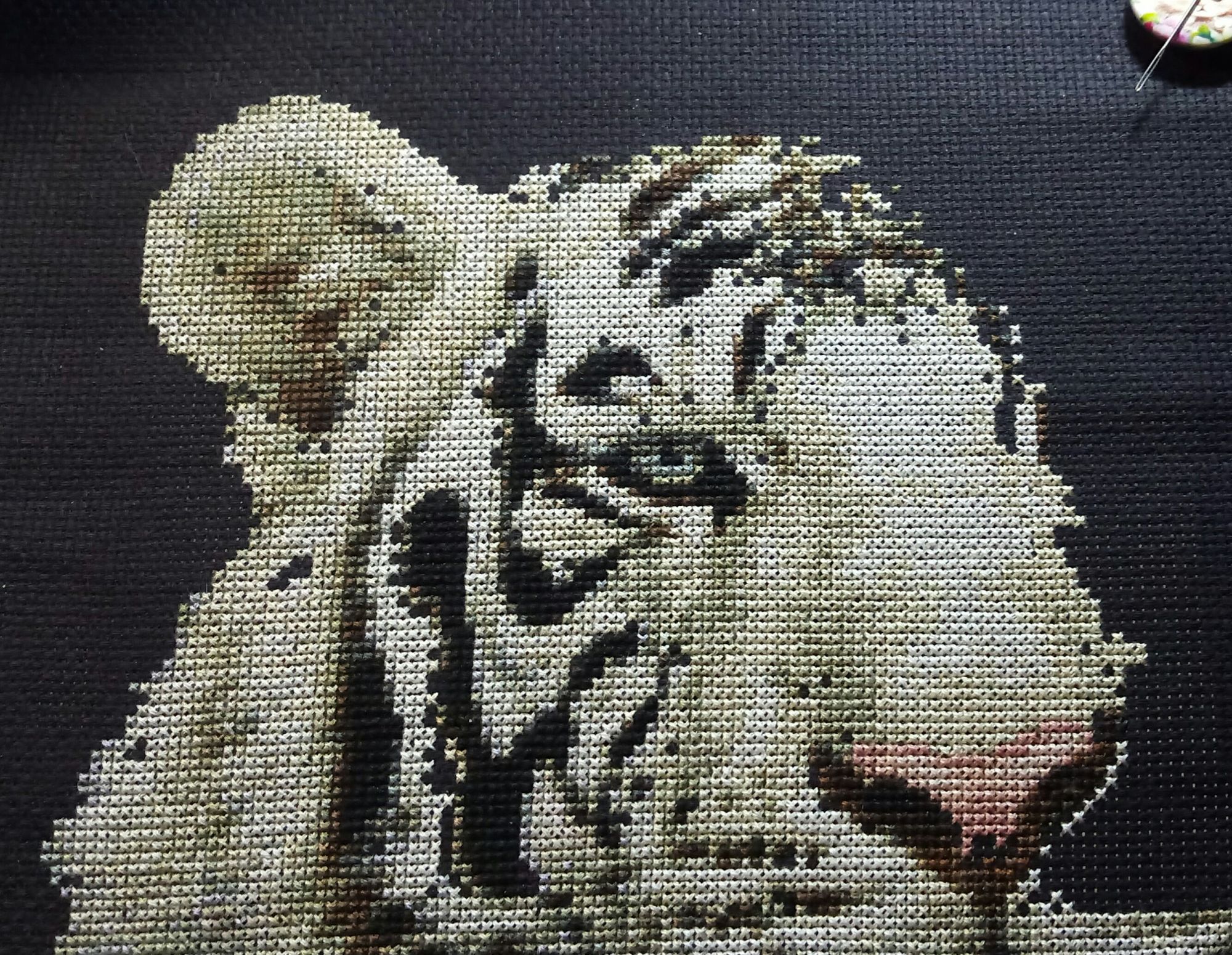 16 апреля 2017 Погода оставляет желать лучшего, сегодня никуда не хотелось выходить, поэтому сегодня потихоньку в свободное время штопала морду тигра. Ещё раз повторюсь, что не могу оторваться! Даже одиночки уже не напрягают. В принципе, самая мешанина именно в самом тигре, низ у него вроде не такой убойный, как все остальное. Единственное, нижние три листа это полный зашив. Посмотрим, как там будет, голова почти готова. Надо глаз дошить, а то страшно)))) ЛАДОМИРА, lvvoron, rolihka и 24 других сказали спасибо Поделиться сообщением Ссылка на сообщение