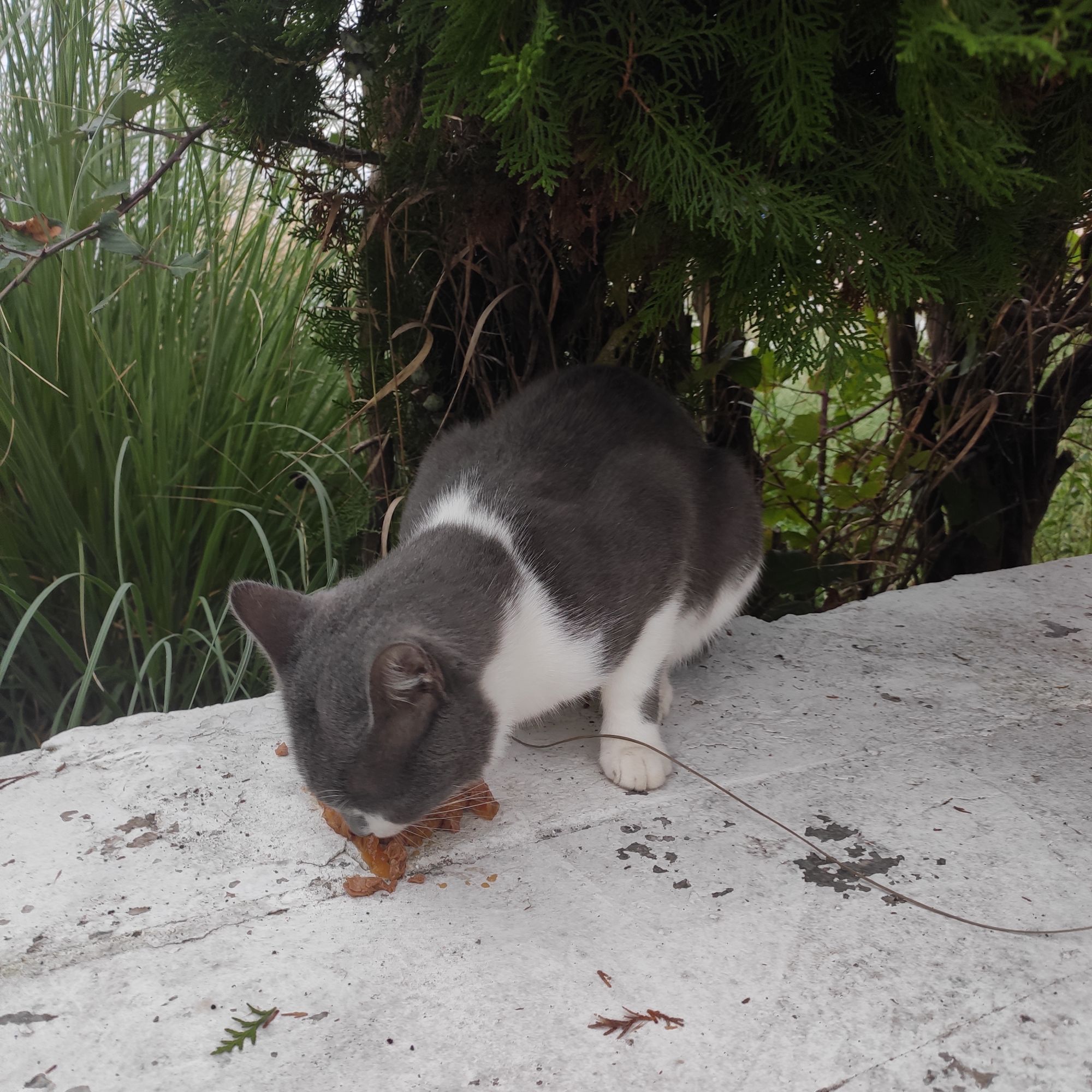26 сентября 2021 росомашка, Оксан, этого откормыша впервые вижу! Такой щекастенький кошарик появился. И нашла семью черно-белых котов, один из которых как раз с крыши на меня смотрел, в старом заброшенном здании летнего кафе. Кошаки любопытные, но опасливые, наблюдают на расстоянии. Но тем не менее мешок сухого корма сожрали моментально (на 450 грамм)))) росомашка, Lucia-del-Umago, Raduga777 и 3 других сказали спасибо Поделиться сообщением Ссылка на сообщение
