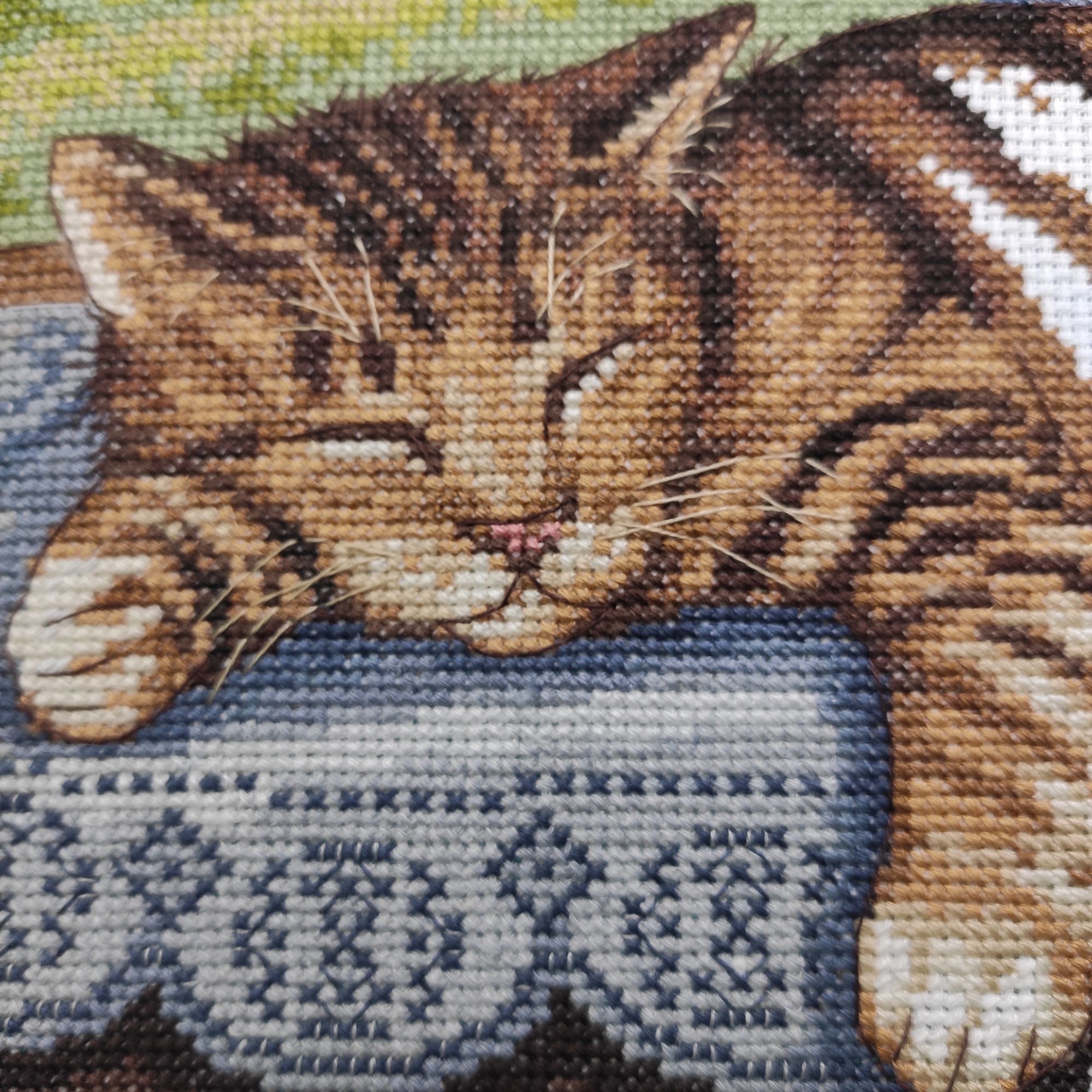 13 октября 2021 Дим я вышила, покажу на днях готовую работу. Впечатления самые положительные! Сейчас активно вышивается Лежебока от Панны. Нитки странные всё-таки, некоторые цвета рвутся через несколько крестиков(( бэк здесь прокладываю сразу, потому что он не сложный, но его достаточно. Котик такой плотненький получается, а салфетку вышивать интересно, несмотря на то, что гамма цветов в ней несколько унылая. Прикольные кружавчики такие выходят. Осталось немного, в принципе и очень надеюсь, что мне хватит ниток. росомашка, Sayvi, Lucia-del-Umago и 15 других сказали спасибо Поделиться сообщением Ссылка на сообщение