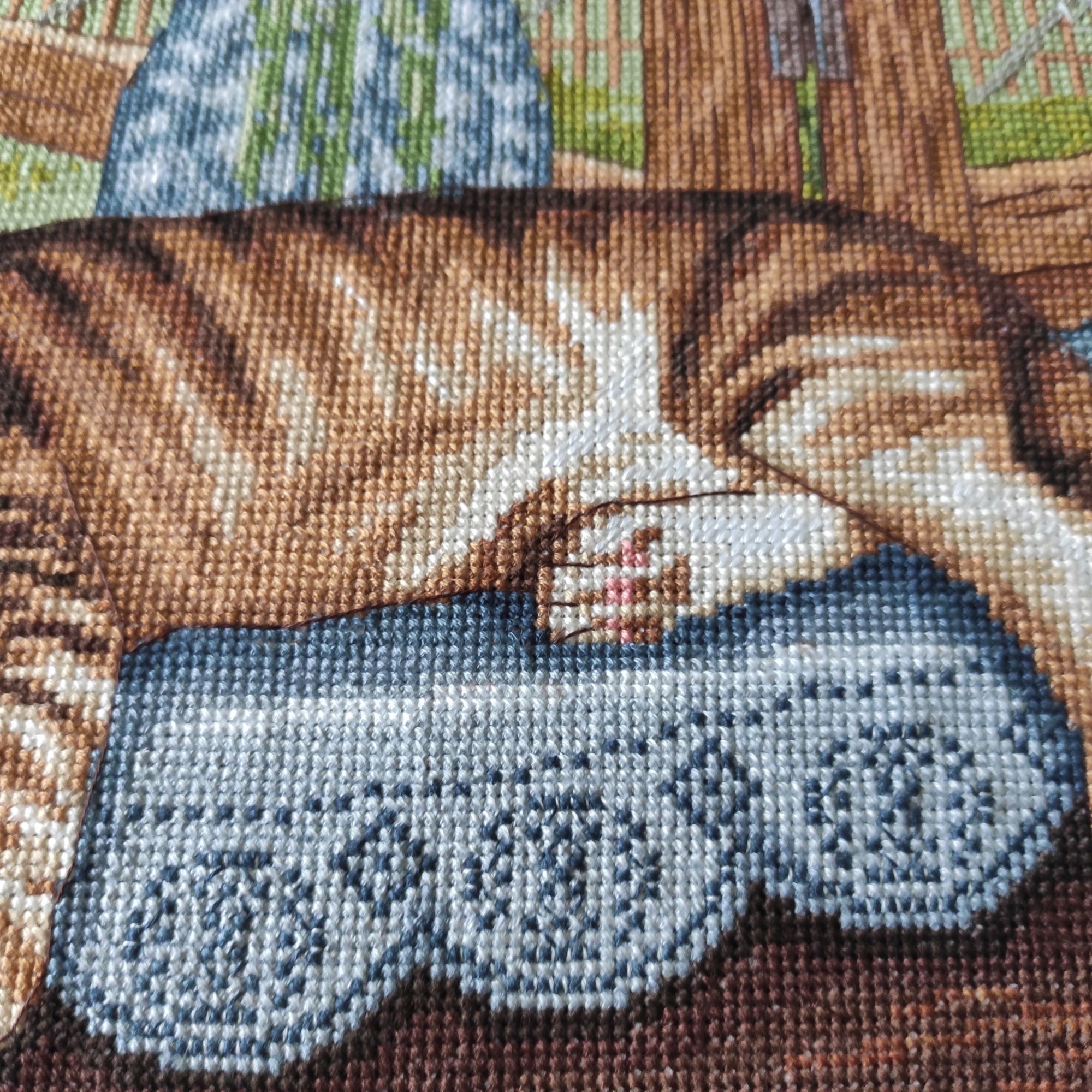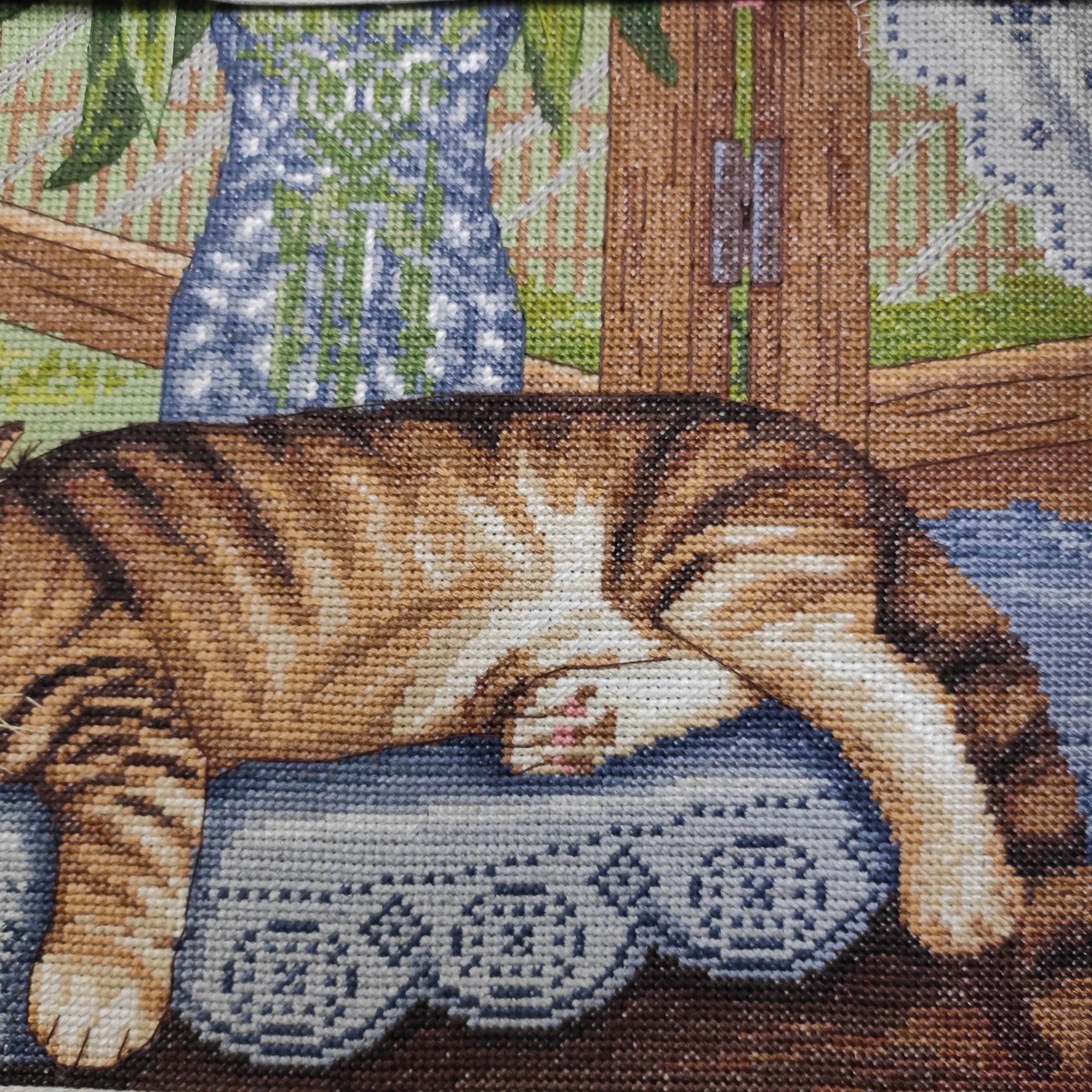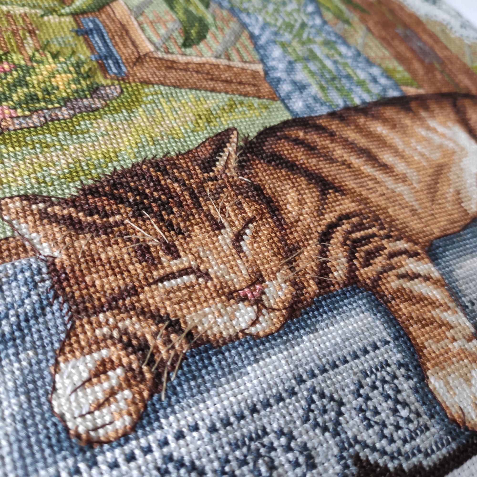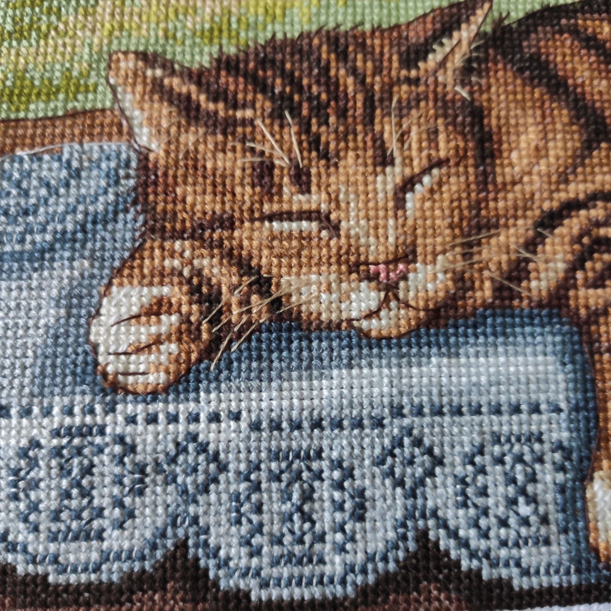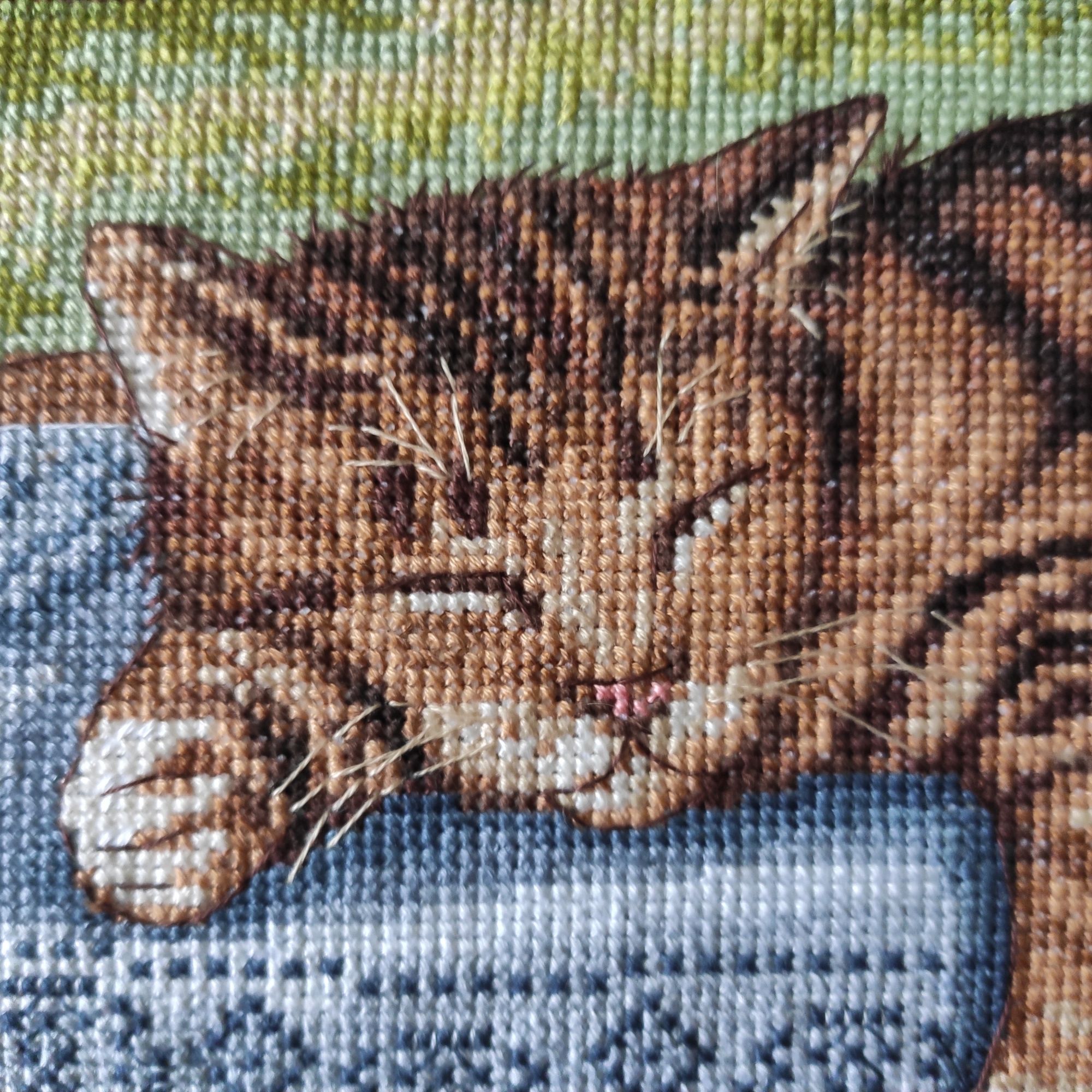 24 октября 2021 1 час назад, eutamias сказал(а): Готова ещё одна работа! Дошивала на одном дыхании! Единственный минус, такой довольно существенный, я уже делилась с вами, это то, что несколько цветов ниток постоянно рвались и перетирались (я пробовала менять иглу, брала одну нить и складывала ее пополам, чтобы длина была меньше), и ничего не помогало! Просто на ровном месте бабах и рвется. Сейчас взяла дошивать Мережку и сразу вижу разницу в качестве ниток (((( и странно, что так себя в работе вели не все нитки, а только несколько оттенков. Кстати, одного цвета мне не хватило, причем не хватило всего две ниточки.... Цвет использовался и сам по себе, и в блендах, можно было бы немного побольше положить. Подобрала подходящий цвет из своих запасов и пустила в бленд, в общей массе незаметно (один из коричневых оттенков). В целом работа лёгкая, удобная крупная схема, бэк тоже не доставил никакого дискомфорта. Нитки остались, за исключением пары цветов (одного не осталось вообще, другого пара ниточек). Та картинка, которая напечатана на обложке, проигрывает вышивке вживую. Такой уютный котик!росомашка права,так и хочется обнять,прижать к себе это теплое тельце.Я своего Даню зову "мой тёплышкин",когда он укладывается ко мне под бочок. eutamias и svetlana62 сказали спасибо Поделиться сообщением Ссылка на сообщение