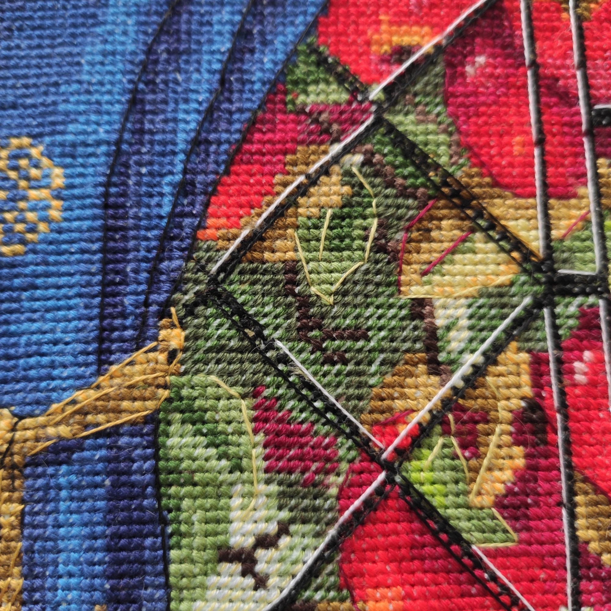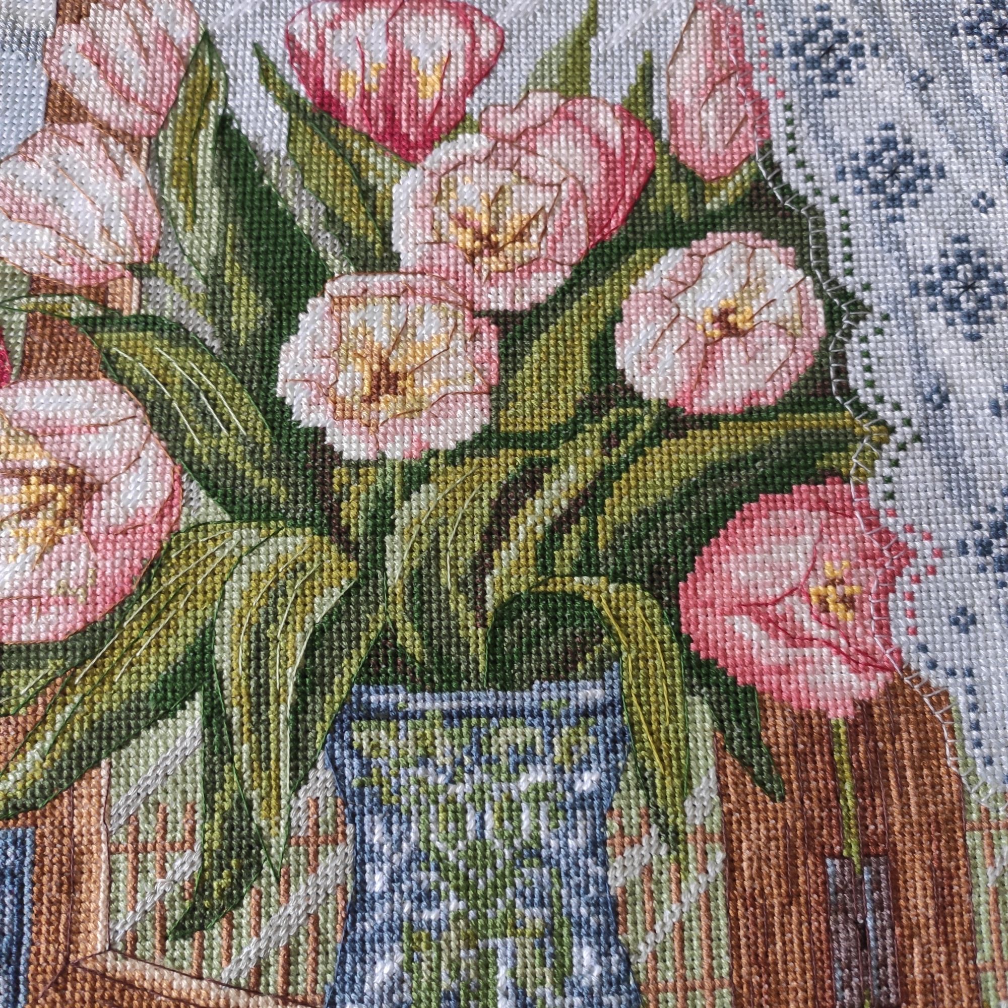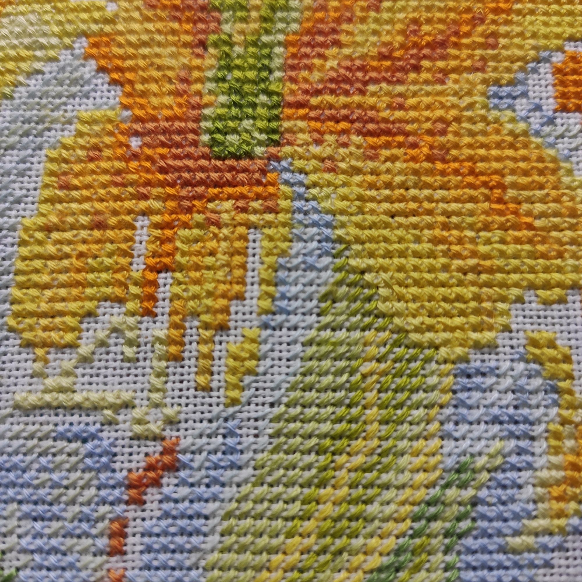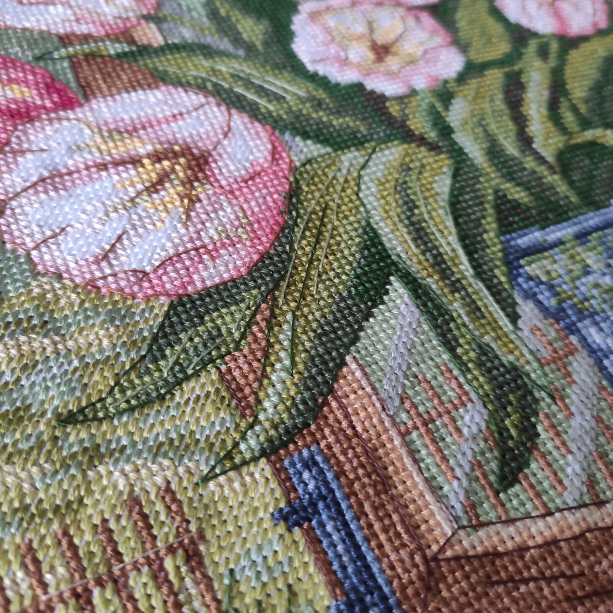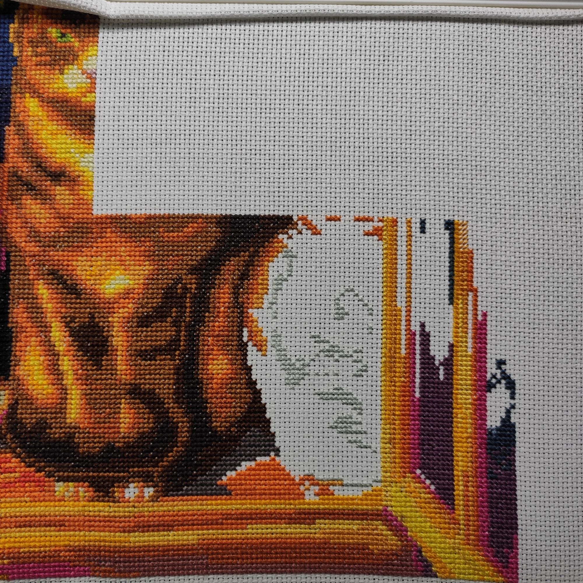 12 ноября 2021 Итоги вышивальных будней). Вкус лета, вышито три листа. Никаких трудностей, даже бэк нравится. Много полукреста в одну и две нитки. Следующий фрагмент будет уже с котиком! Кузя. Остался один лист. Довольно странная цветовая гамма, но мне нравится) немного передохнуть от психоделических оттенков можно на вазе, что я и сделала. Тигр прям очень быстро штопается, несмотря на то, что шерсть (почесываюсь сижу))). После моих риолисовских подсолнухов с тыквами эта схема просто релакс, поэтому отрываться не хочется. На прошлых выходных немного гобелена вышила, работа будет долгая, мелкая основа, нужен хороший яркий свет. Схема очень удобная, крупная, вышивается все в 2 нити. Также на выходных вышила почти половину наших шариков от Панны. Пожадничали с нитками, можно было бы и побольше положить, я нервничаю, когда у меня ниток мало. Голубые используются в полукресте в 3 нитки и в блендах по 2, но их впритык, мне так не нравится. У меня за городом не очень яркая лампа, поэтому фото такие получились. Муня, sunny981, vikkovesh и 19 других сказали спасибо Поделиться сообщением Ссылка на сообщение