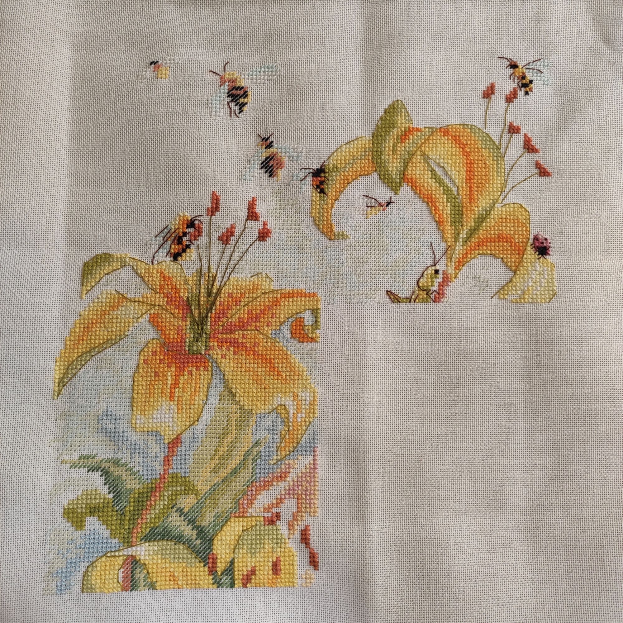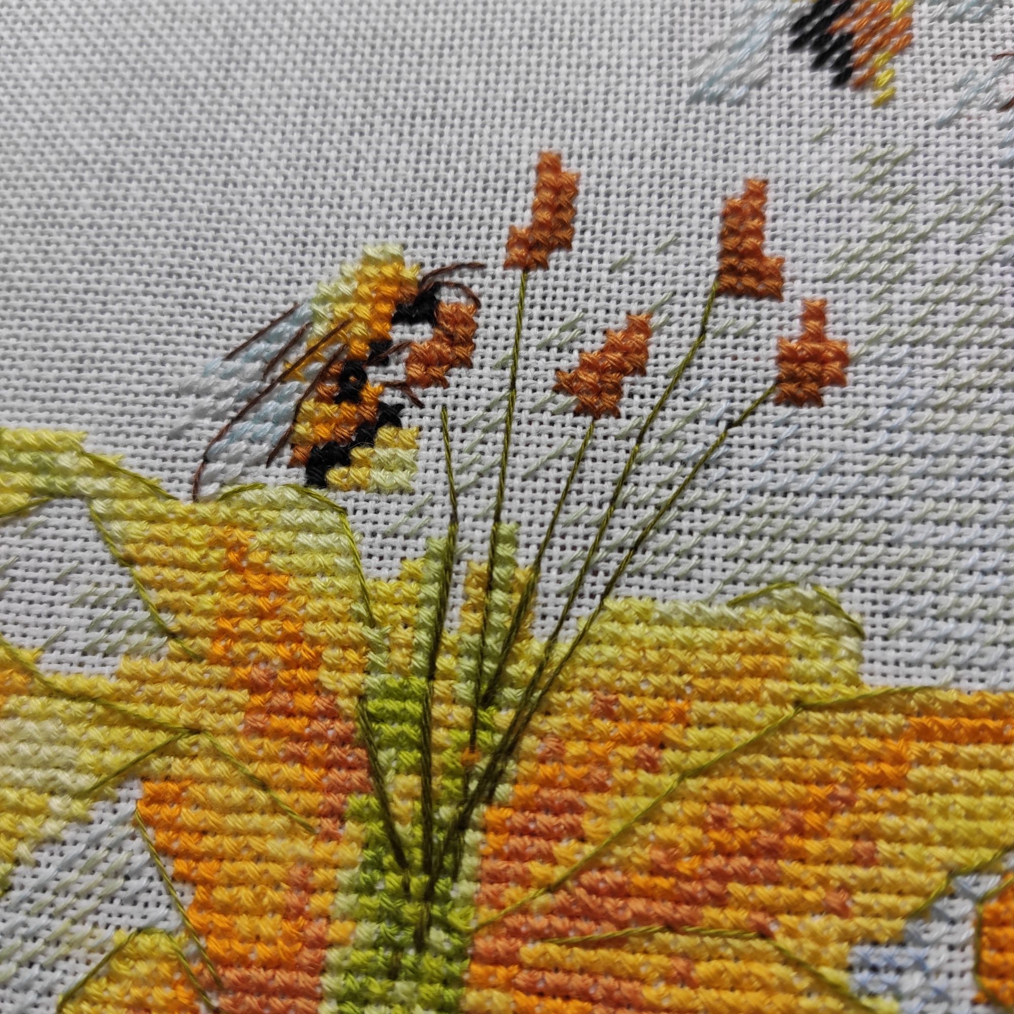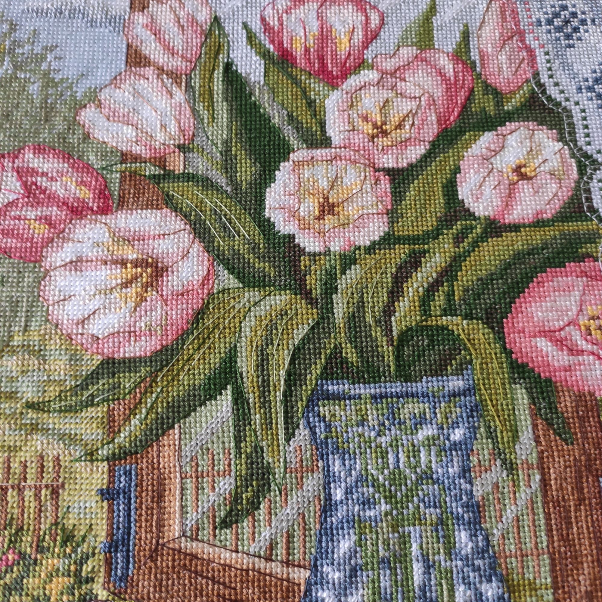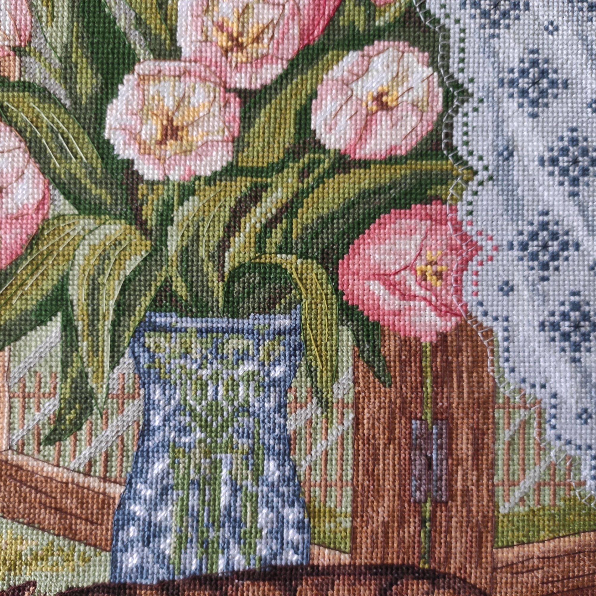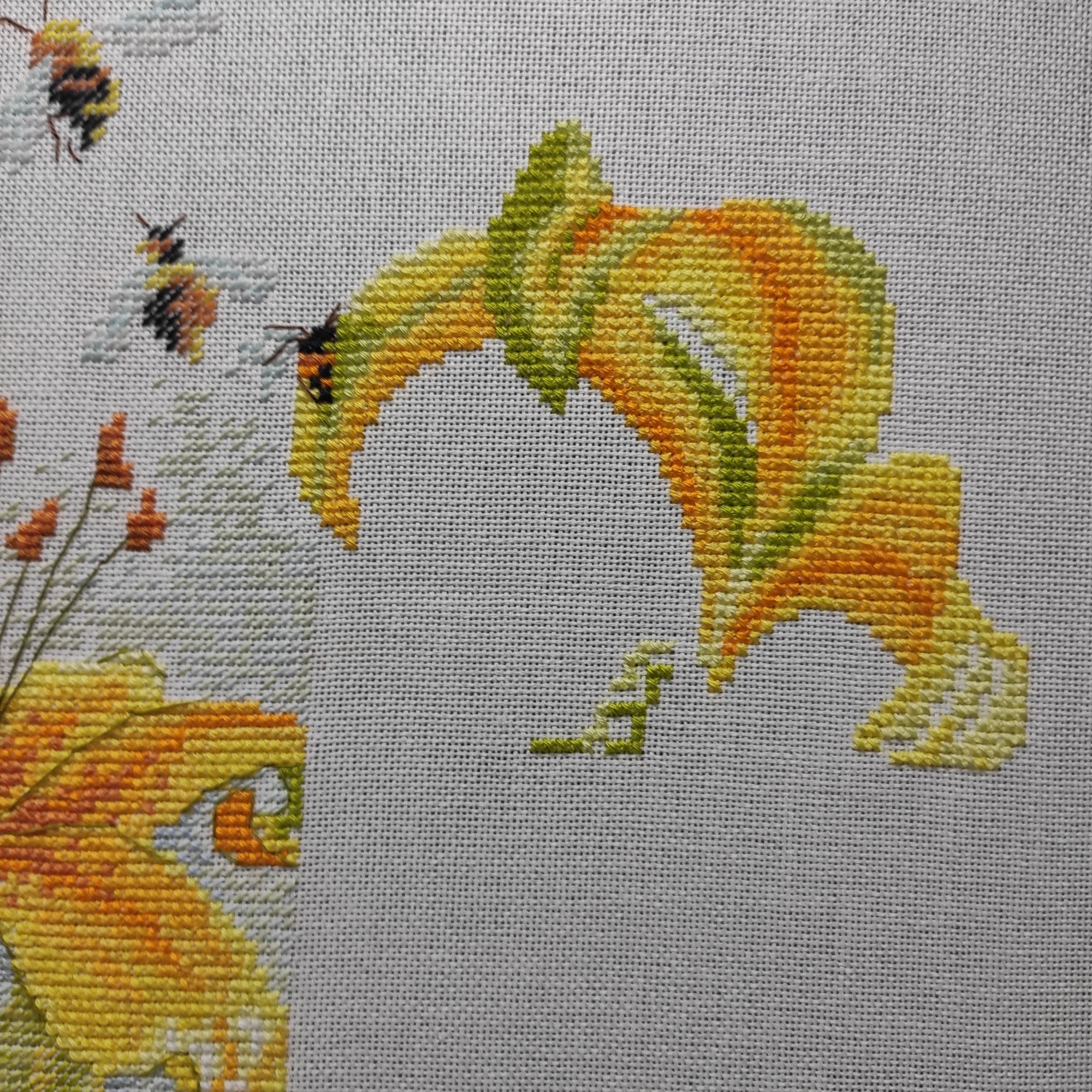 12 ноября 2021 Итоги вышивальных будней). Вкус лета, вышито три листа. Никаких трудностей, даже бэк нравится. Много полукреста в одну и две нитки. Следующий фрагмент будет уже с котиком! Кузя. Остался один лист. Довольно странная цветовая гамма, но мне нравится) немного передохнуть от психоделических оттенков можно на вазе, что я и сделала. Тигр прям очень быстро штопается, несмотря на то, что шерсть (почесываюсь сижу))). После моих риолисовских подсолнухов с тыквами эта схема просто релакс, поэтому отрываться не хочется. На прошлых выходных немного гобелена вышила, работа будет долгая, мелкая основа, нужен хороший яркий свет. Схема очень удобная, крупная, вышивается все в 2 нити. Также на выходных вышила почти половину наших шариков от Панны. Пожадничали с нитками, можно было бы и побольше положить, я нервничаю, когда у меня ниток мало. Голубые используются в полукресте в 3 нитки и в блендах по 2, но их впритык, мне так не нравится. У меня за городом не очень яркая лампа, поэтому фото такие получились. Муня, sunny981, vikkovesh и 19 других сказали спасибо Поделиться сообщением Ссылка на сообщение