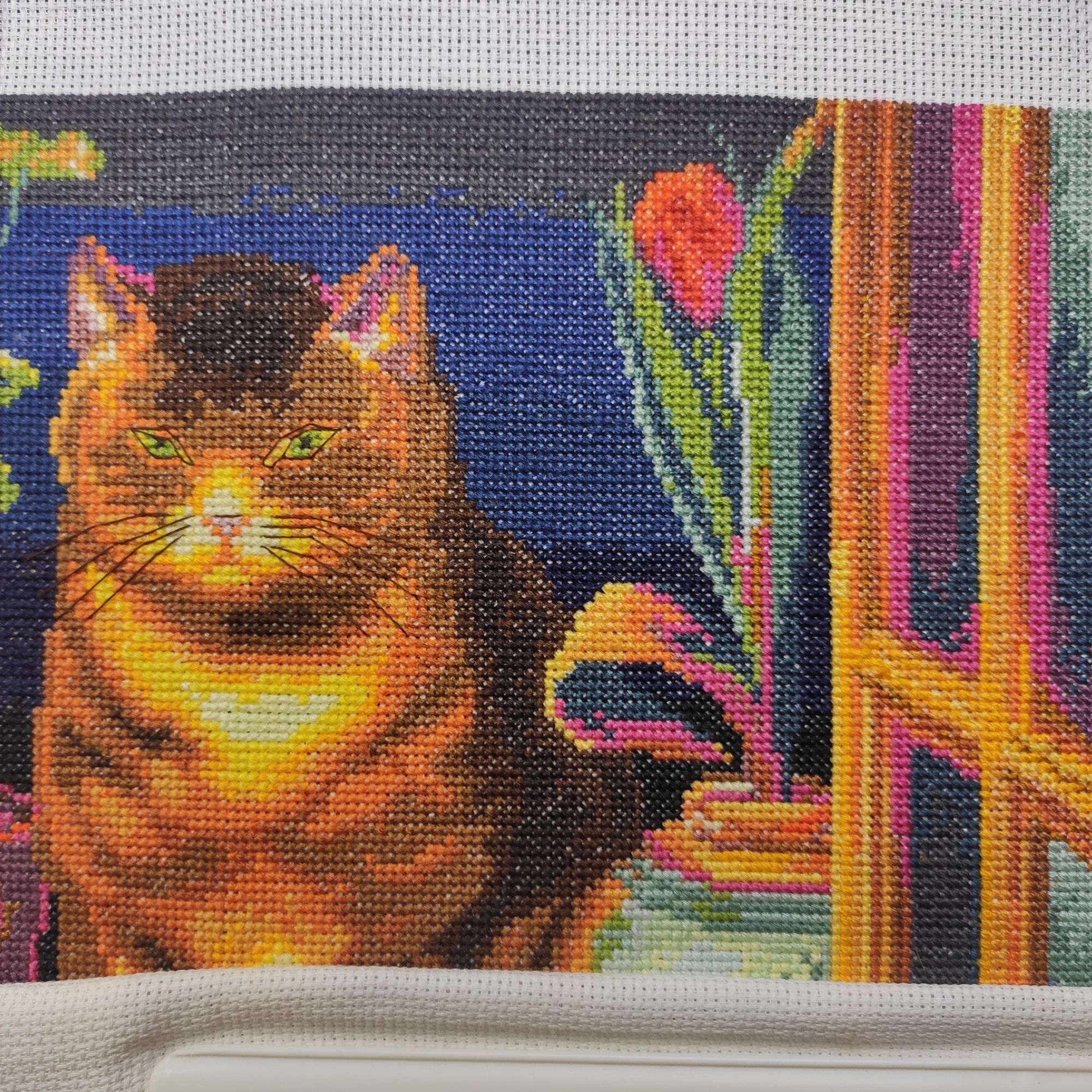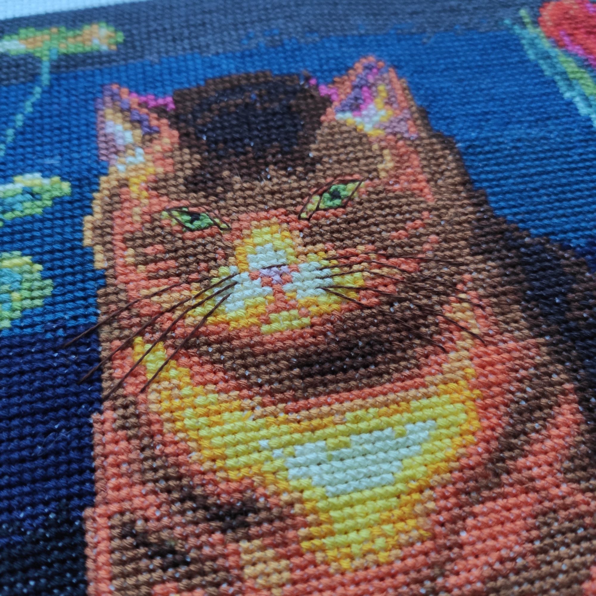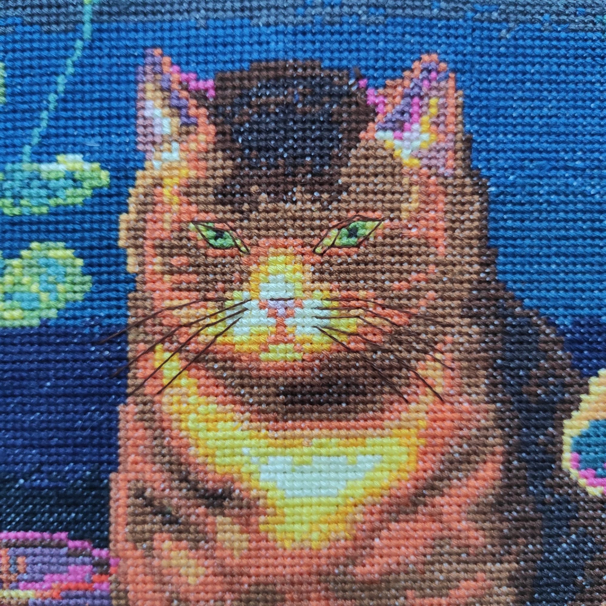 20 декабря 2021 Наконец дошли руки сфотографировать Кузю и шары. Всё закончила ещё неделю назад. Шары в принципе можно было и побыстрее вышить,работа небольшая, яркая и не сложная. Но некоторых цветов положили впритык, побоялась,что может не хватить. Много полукреста в 2-3 нитки, блендов, и были опасения,что не хватит. Поэтому для меня это небольшой минус. Посмотрим, что будет в парном кружке для этих шаров. После стирки нитки не полиняли. Кузенька мой психоделический)) вышивала подбором. Мне досталась копия схемы и по ниточке каждого цвета для подбора. Я писала, когда начала вышивать этот подбор, что если купить полностью нитки Мадейра для кота, то подбор вышел бы как большой Дим, дороговато. У меня в запасах оказался лишь один родной цвет. Поэтому Кузя вышивался всеми нитками, которыми только можно. Это и Гамма, и СХС, и Анкор, и ДМС. Старалась максима попасть в цвет, нитки подбирала при хорошем дневном освещении. Конечно, получилось ярко и кислотно,но в наборе реально такие цвета подобраны))) мне нравится результат, жалко только, что у нас в Галерее всего пара отшивов этого набора. Moshika, Муняша, IrnKA и 27 других сказали спасибо Поделиться сообщением Ссылка на сообщение