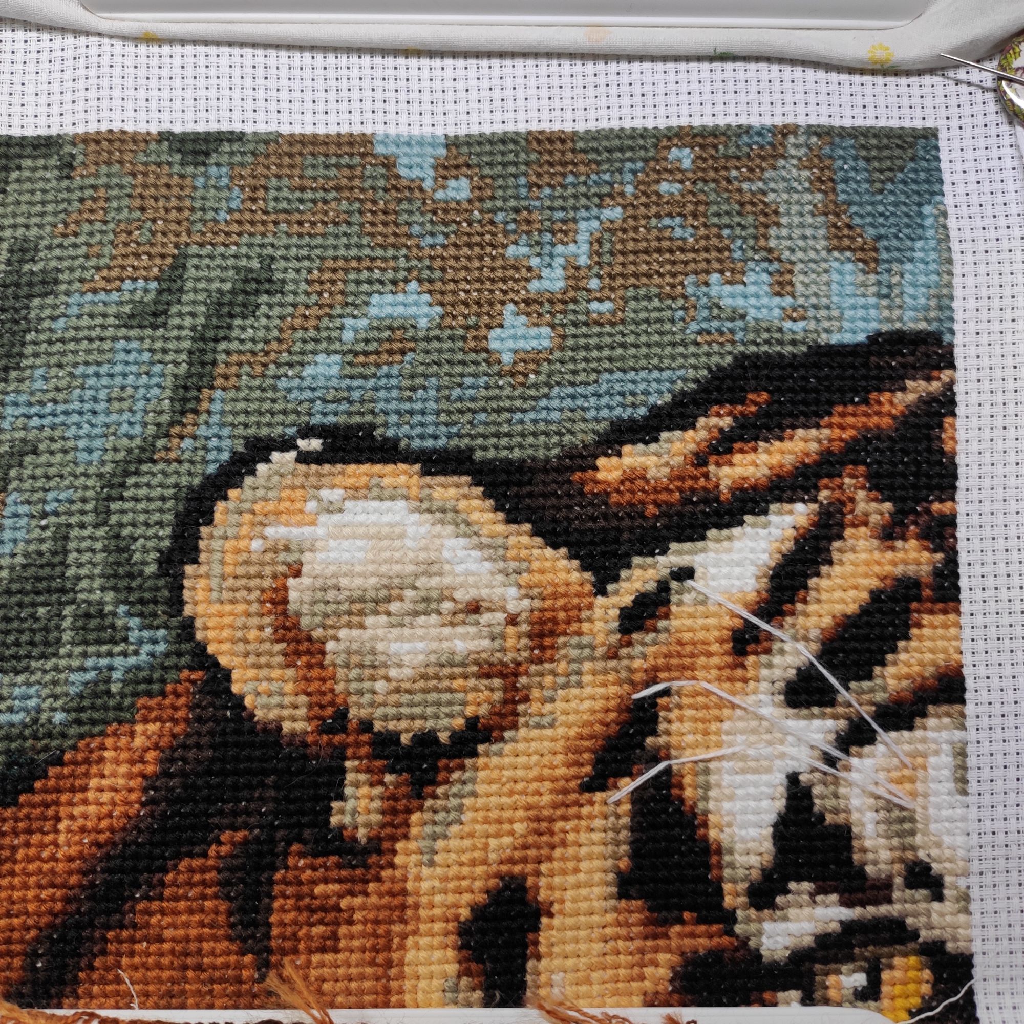 28 декабря 2021 Что-то упала у меня скорость вышивания видимо, немного раньше я пыталась так бороться со стрессом, который преследовал меня 24/7 и я каждую свободную минуту садилась и шила, шила))) сейчас почему-то вышивка отошла на второй план, как говорят, напал невышиванец. Наборы свои все разложила по местам, раньше добрая часть наборов круглогодично куковала на холодном (и плохо остекленном) зимой и жутко жарком и солнечном летом балконе. И скорее всего, именно поэтому нитки могли подпортиться.. Сейчас все в доме, слава богу правда, рапихивпла все быстро, чтобы муж не очень удивился количеству нажитого добра, поэтому теперь я сама не понимаю, где у меня что лежит и жду, пока муж пойдет с удаленки в офис, чтобы поперебирать с упоением свои запасы, заодно посмотреть и припомнить,что имеется))) А пока правда не хочется вышивать... Почему-то хочется читать, валяться и ничего не делать. Наверное, крайние три-четыре месяца были для меня чересчур насыщенными и надо просто отдохнуть. Завтра покажу вам мини-елочку от Филигрис, лежала долго, вчера очень захотелось сделать ее. Такая малявка в итоге, но весь вечер на нее угрохала. Расскажу завтра с фото всю эту историю с поделкой. Пока из всех процессов, которые остались (их сейчас три) продвинула только тигра Риолис. Честно говоря, получается огромный, наверное, потом будет подушкой. Как ни странно, привыкла к цветной схеме, нитки шерстяные тоже не доставляют никакого дискомфорта, в общем, готова ровно половина вышивки. Усы тигру потом приложу, когда будет вся морда готова. Очень уютная, такая плюшевая вышивка получается. Но я уже подумала от этой цветовой гаммы, поэтому меня периодически тянет на что-то пёстрое и яркое. И самое главное, небольшое. Так что в следующий год я перехожу с двумя хвостами, один из которых (гобелен ) обещает стать долгостроем. Но я буду с ним и с собой договариваться. Пока даже ничего нового не хочется начинать, представляете? Надеюсь, что этот ненадолго и пройдет. Irina 1, АлёNка, IrnKA и 16 других сказали спасибо Поделиться сообщением Ссылка на сообщение