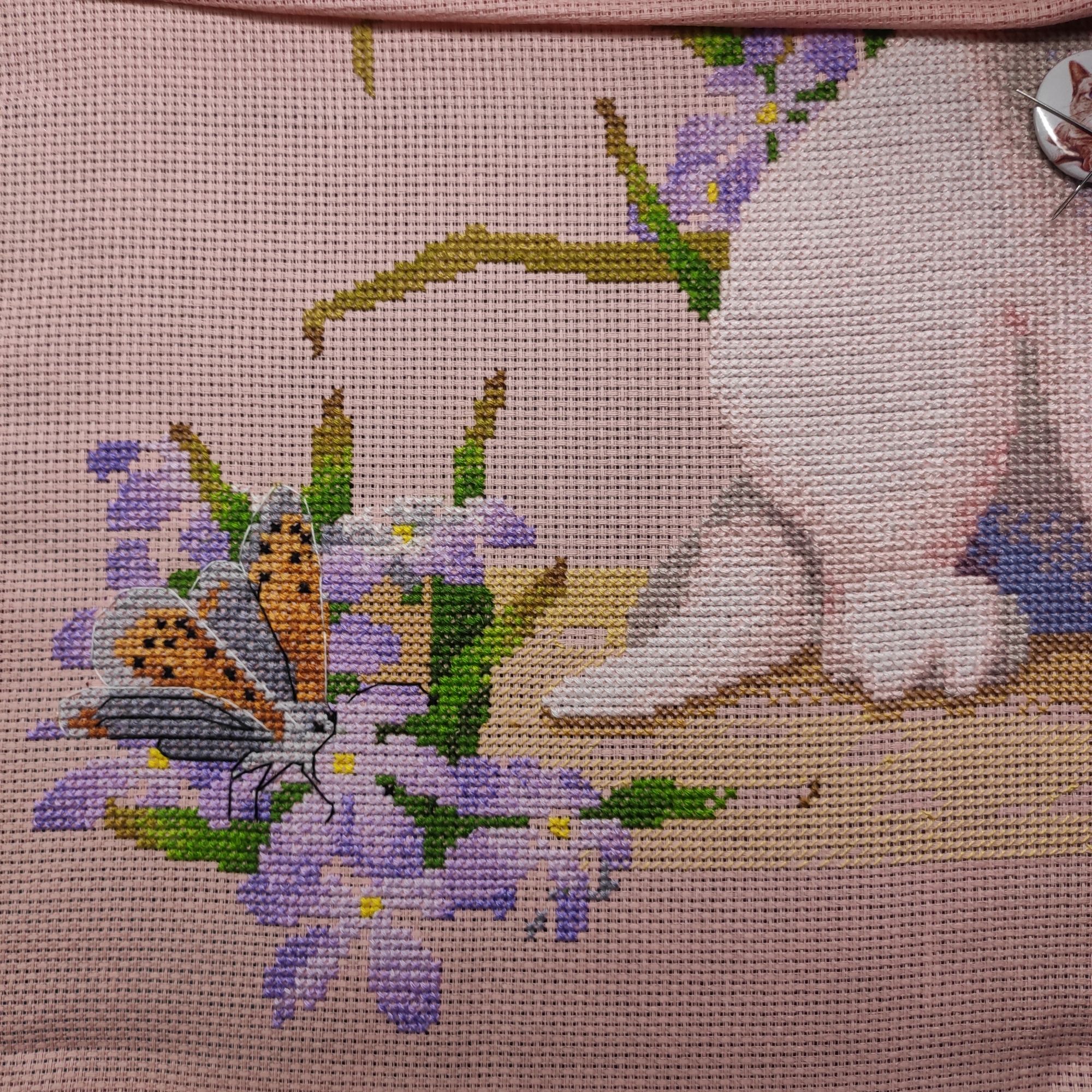 16 февраля 2022 Ещё немного нежного котейки)) надоел фон внизу, перехожу к другому процессу))) цветочки симпатичной гаммы, но понамешано там - мама, не горюй! Поднадоело, к тому же половину уже вышила,да и Тигрик риолисовский грустит, давно не шитый честно говоря, какой-то странный бэк в бабочке, морда лица у нее на бабочку ну совсем не похожа) я, правда, оставила как есть, пусть будет так, как задумало РТО. А вот чего я не ожидала, так это того,что будет так приятно вышивать самого котика, хотя в нем много белого. Персиковая канва все равно просвечивает и поэтому нет ощущения, что вышиваешь чисто белым. Мне очень нравится, несмотря на психоделическую бабочку))) Беладонна, Дикая белочка, Selinta и 15 других сказали спасибо Поделиться сообщением Ссылка на сообщение